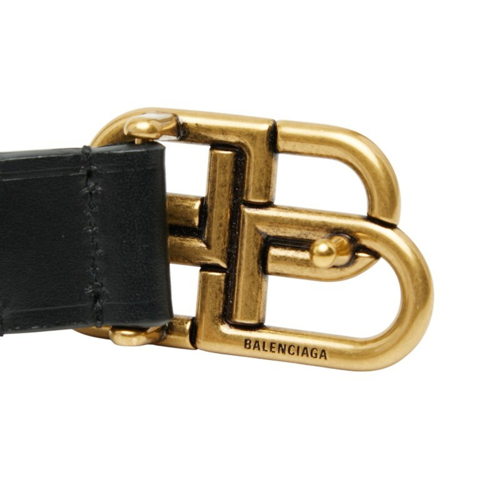 Balenciaga BB Thin Belt, Size 75, 581690, Black Leather, Women's