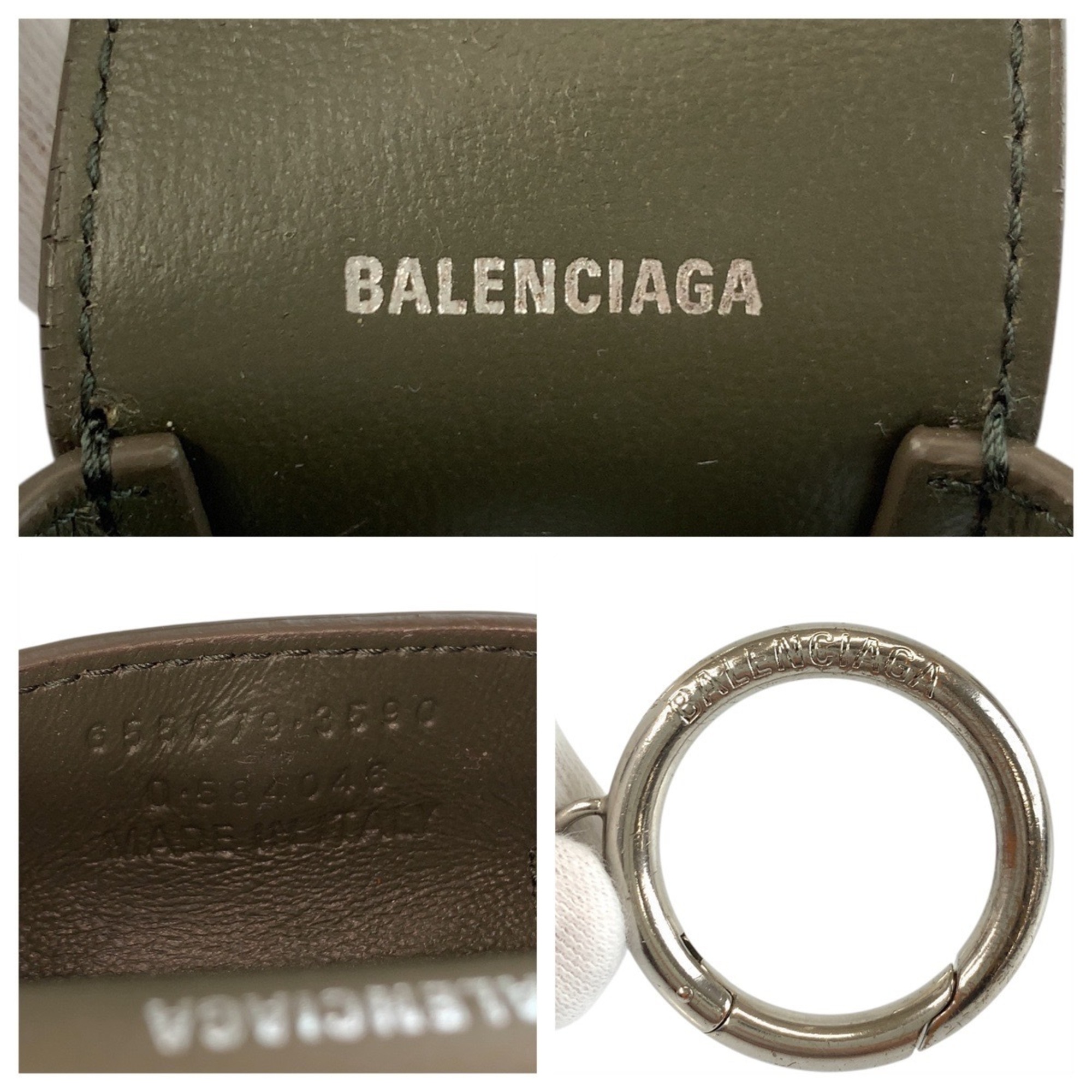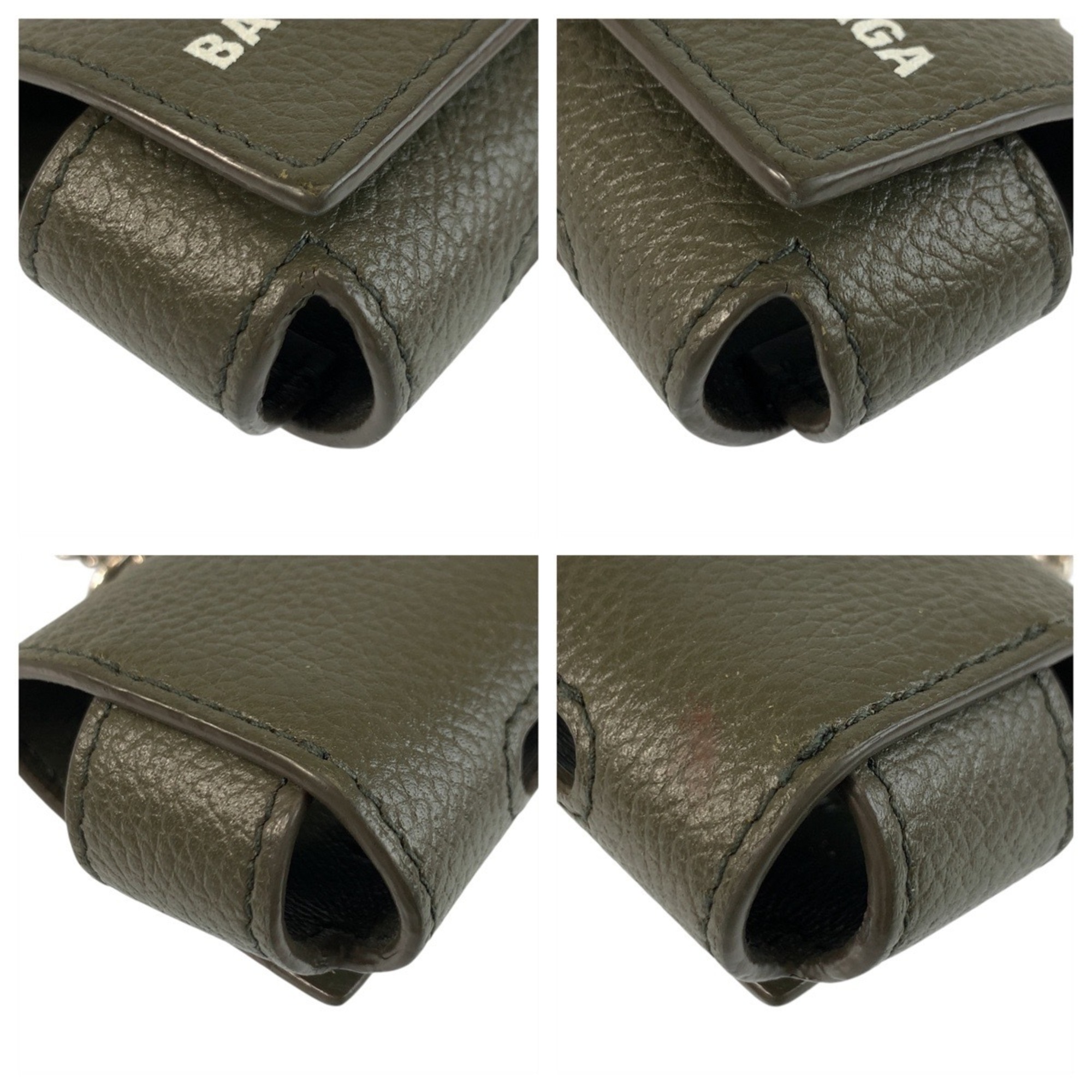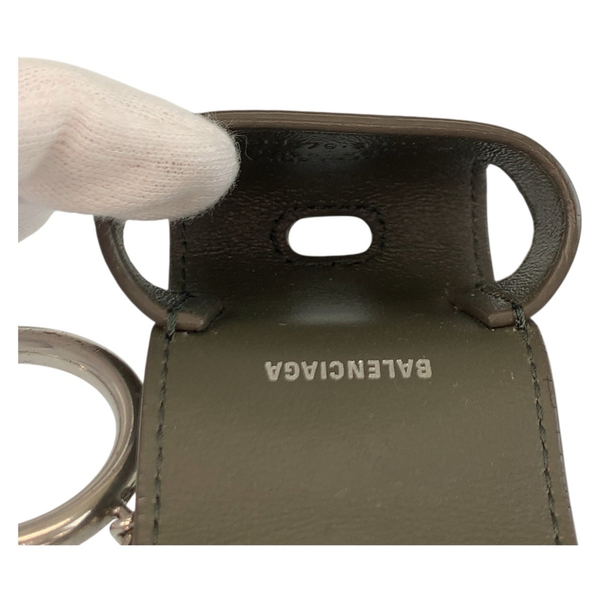 BALENCIAGA Cash AirPods Case, Gray, Brown, Silver Hardware, Leather, 655679 3590, Unisex