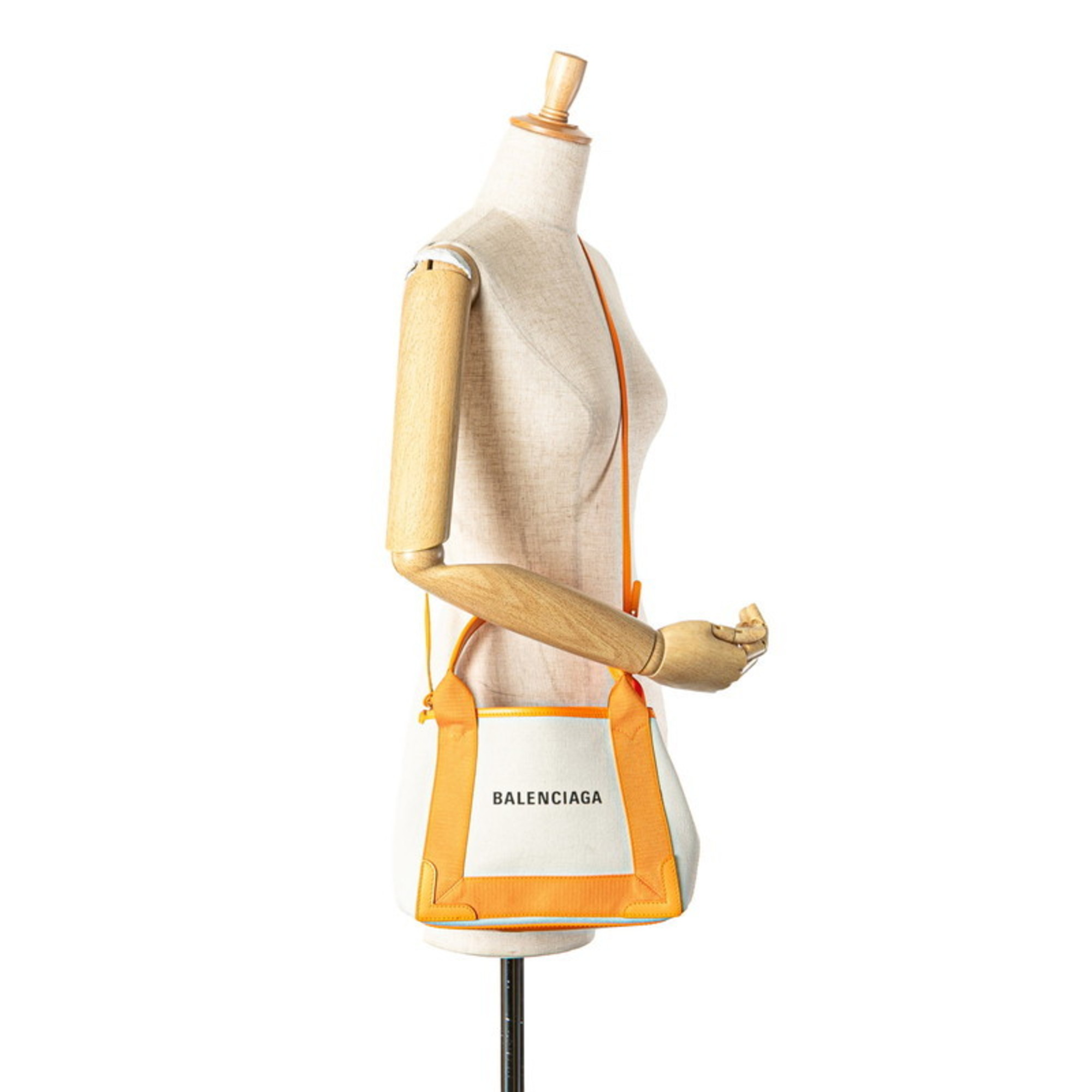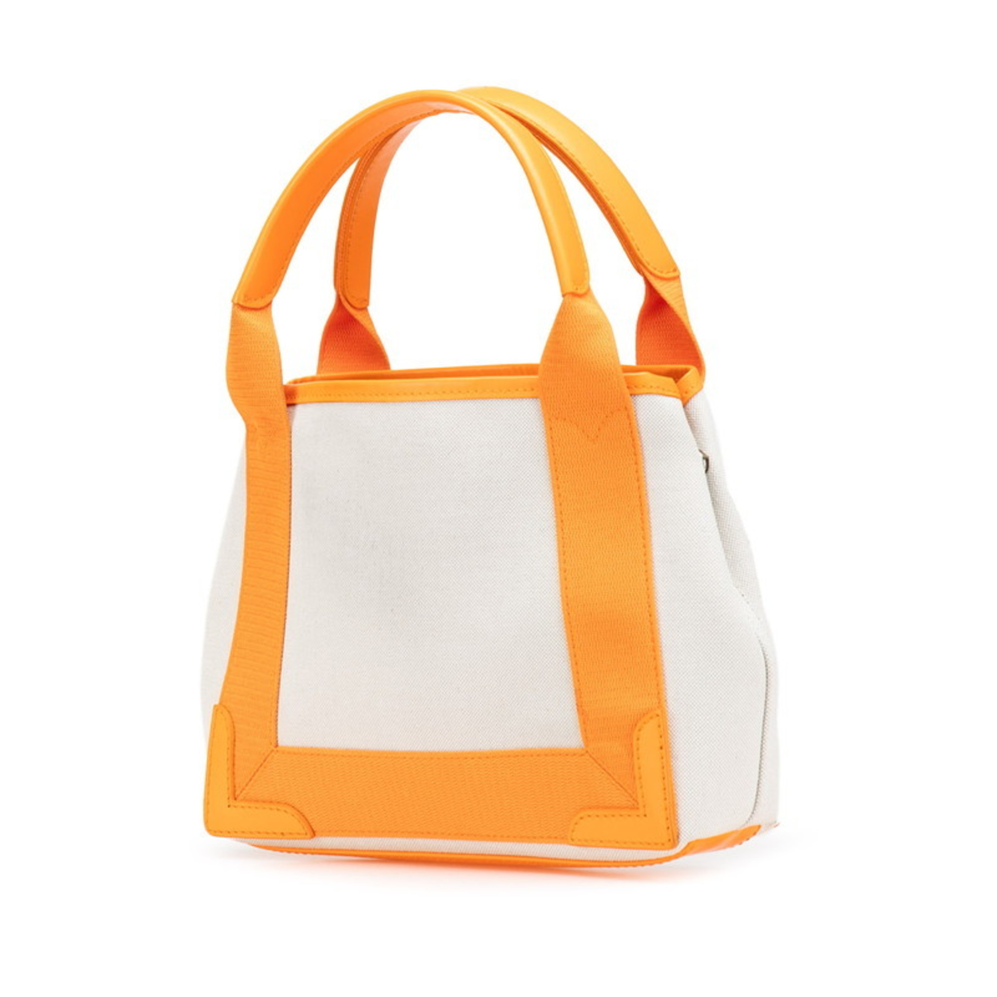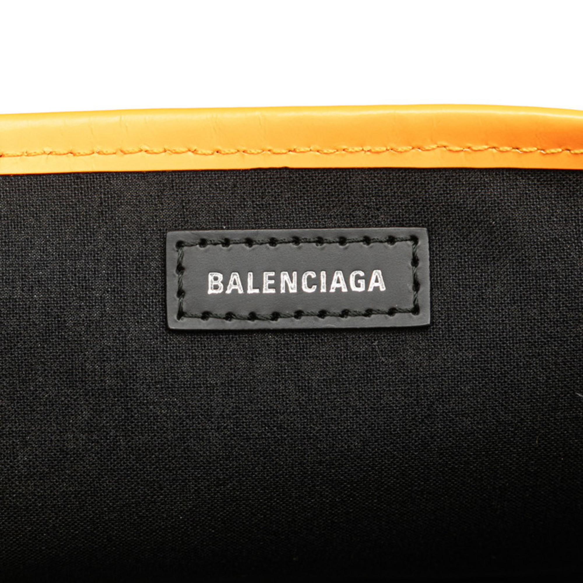Balenciaga Navy Cabas XS Handbag/Shoulder Bag, 2-Way, 390346, Beige/Orange Canvas and Leather, Women's, BALENCIAGA