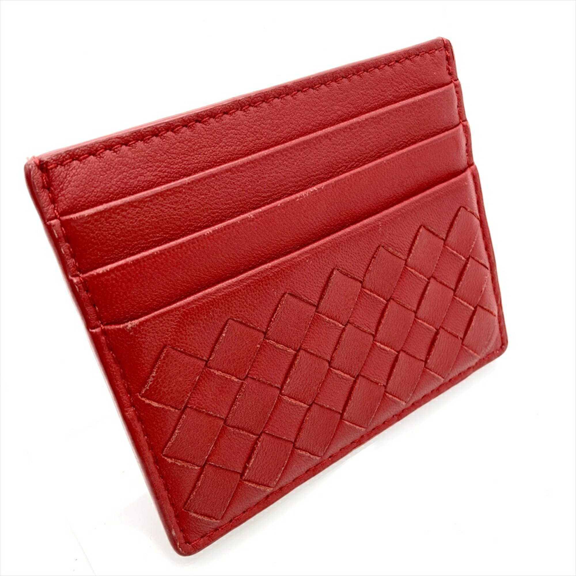 BOTTEGA VENETA Intrecciato Card Case Leather Red Unisex