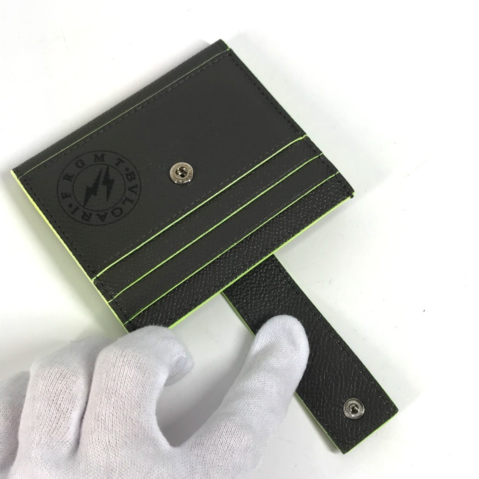 BVLGARI Fragment Logo Multi-Case Business Card Holder Pass Case Holder/Card Leather Men's Gray