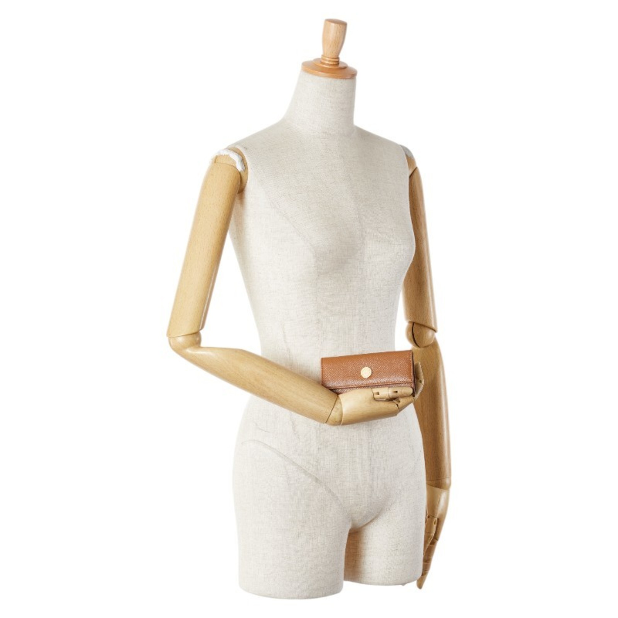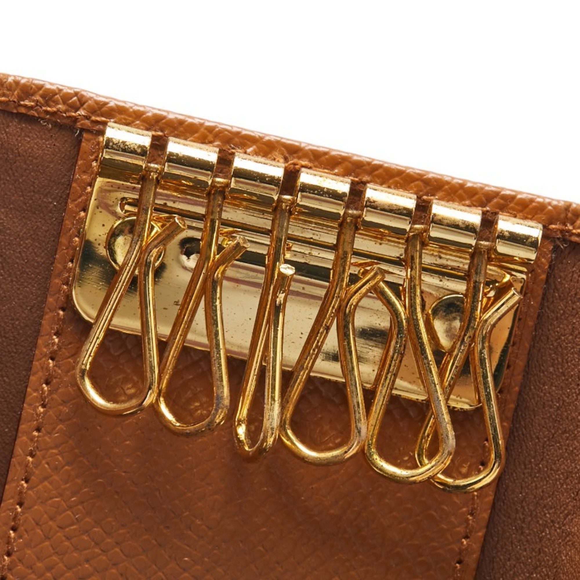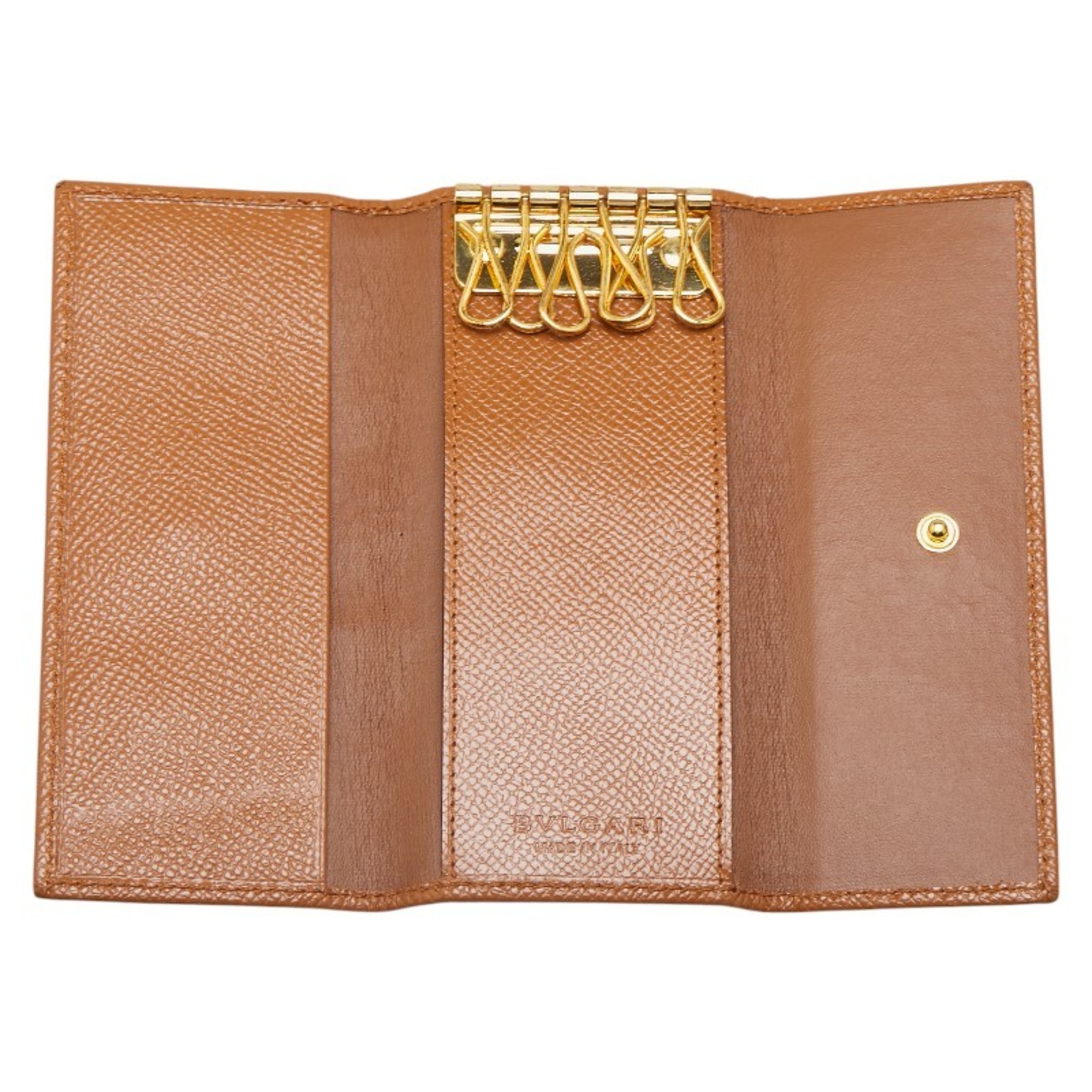 BVLGARI Long 6-ring Key Case Brown Leather Women's