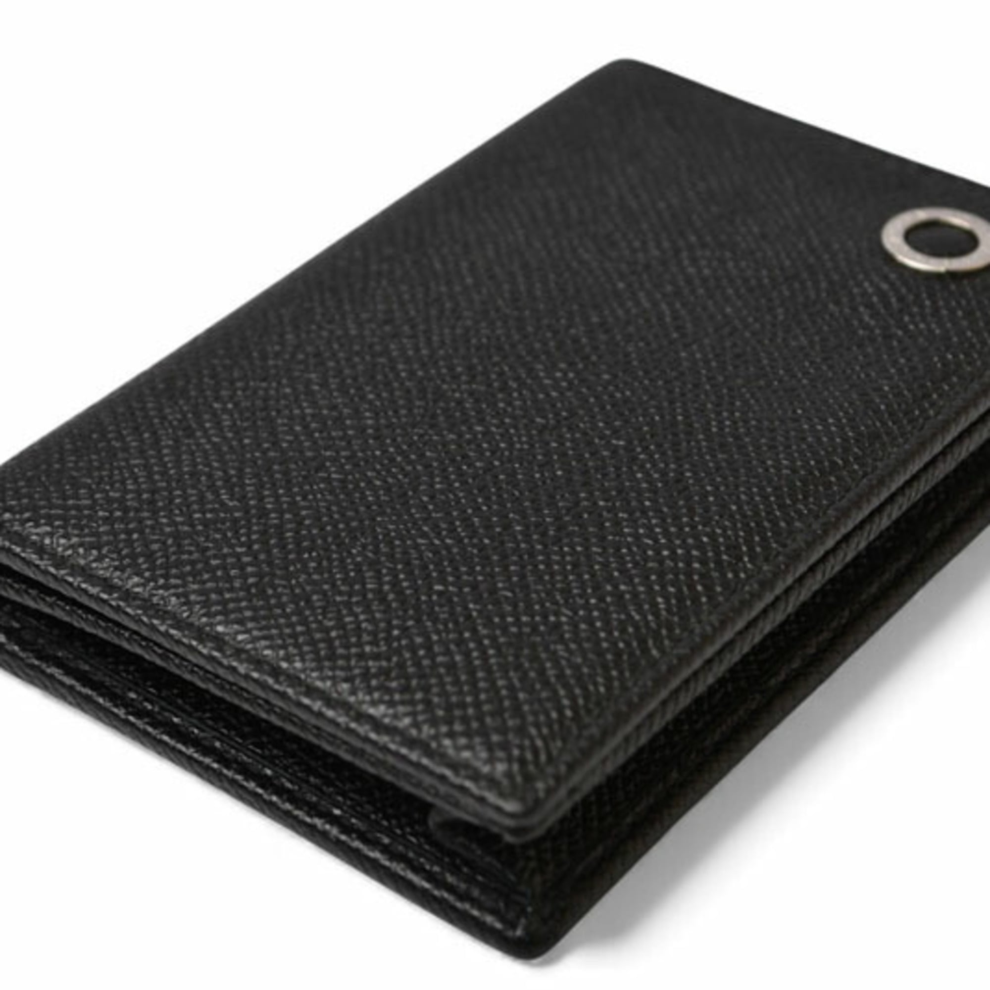 BVLGARI Man Card Holder in Grained Calfskin Leather, Black, 280297