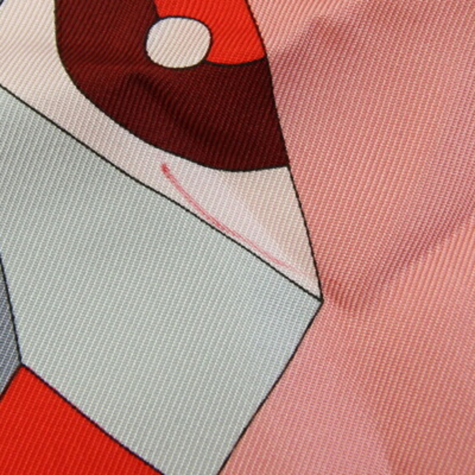 BVLGARI Scarf, Gray/Red, 100% Silk, Large Stole, Women's