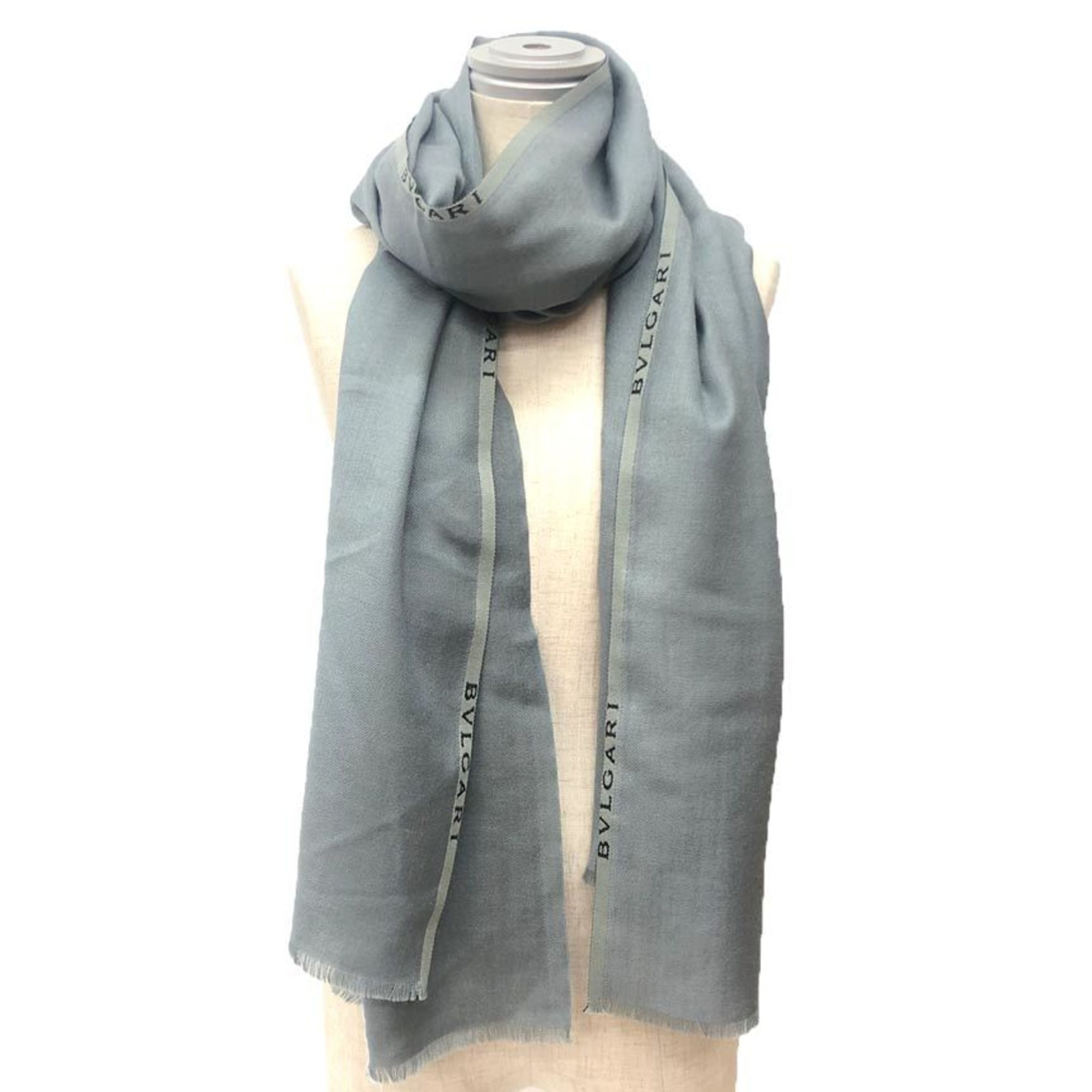 BVLGARI Shawl/Stole in Grayish Blue, Cashmere, Silk, and Wool. Scarf.