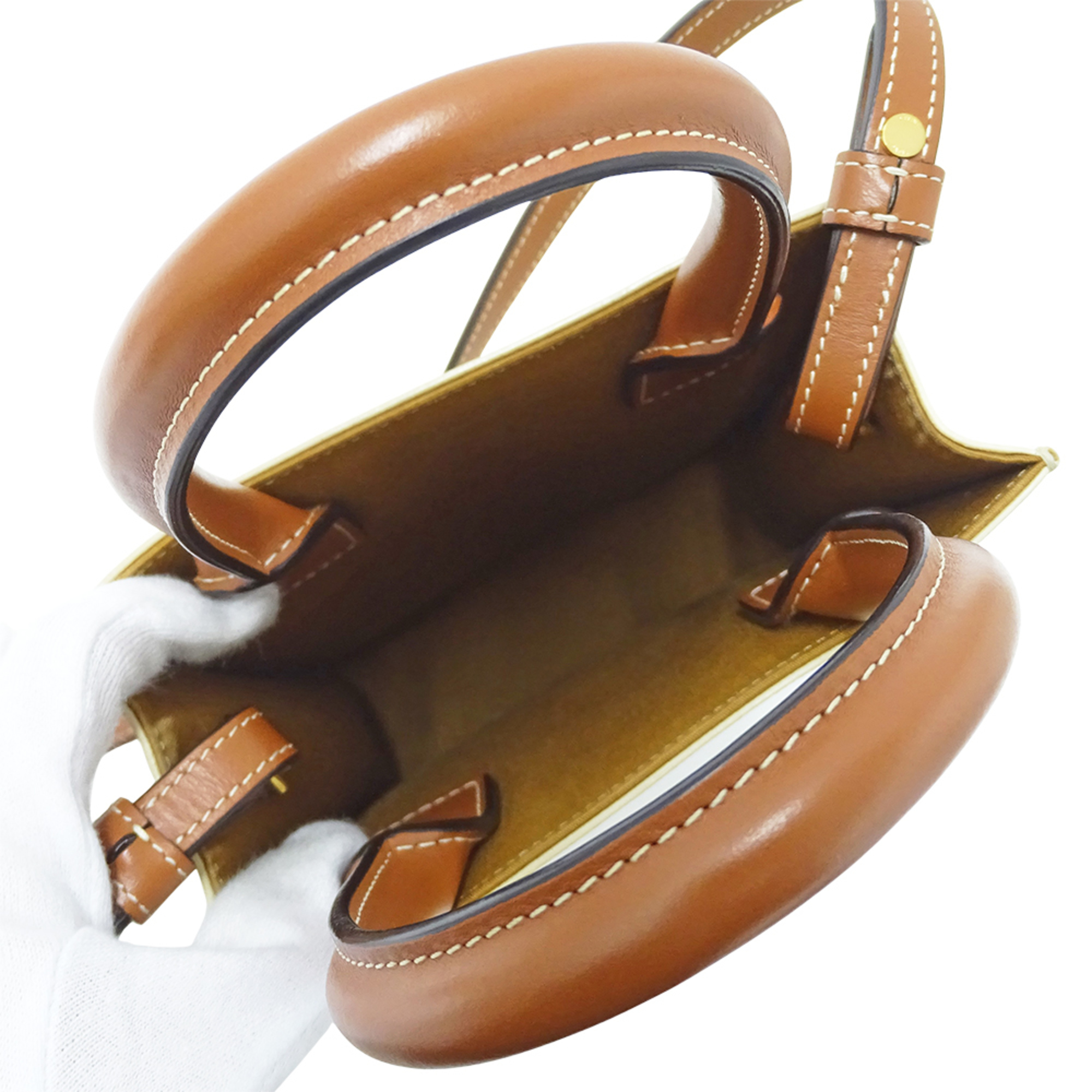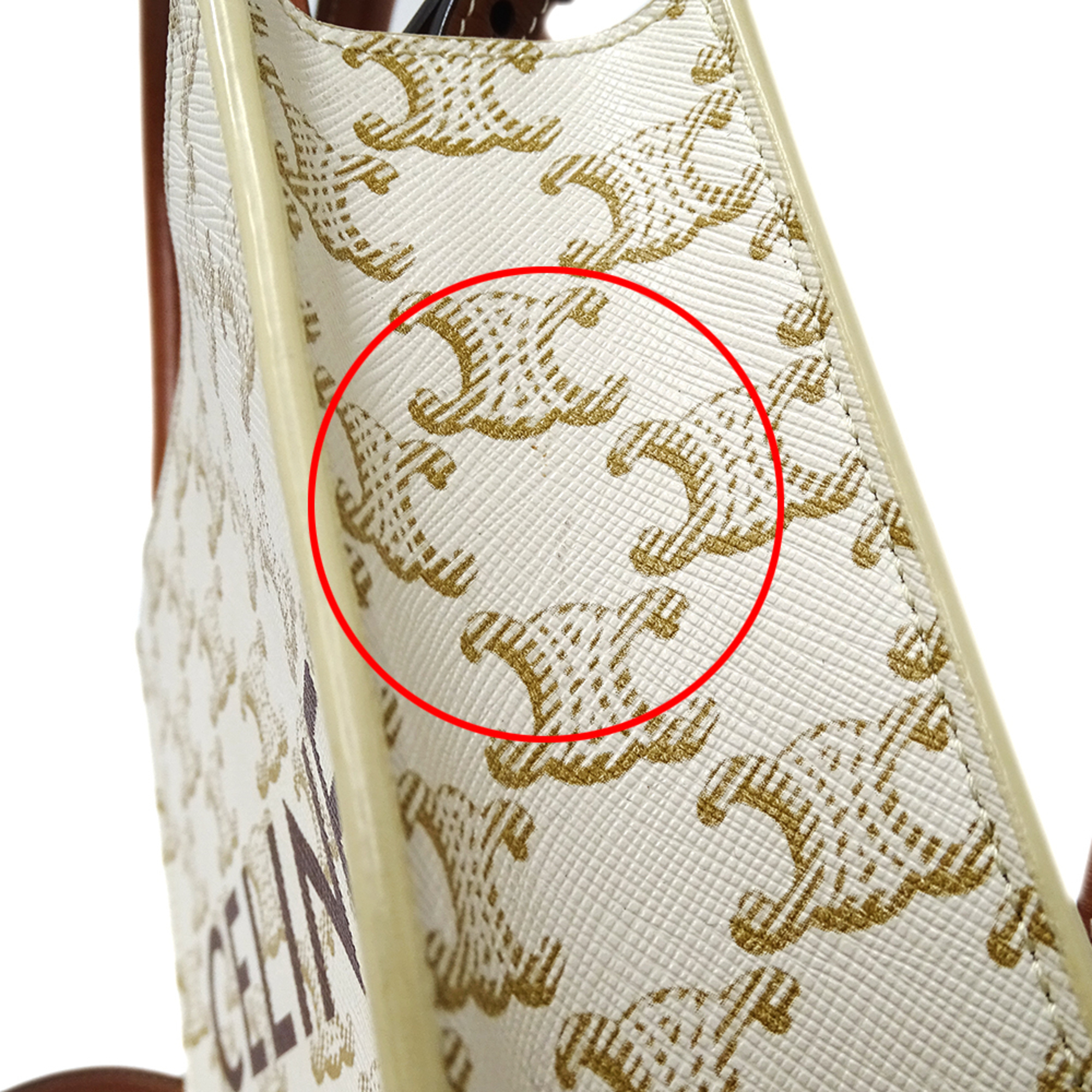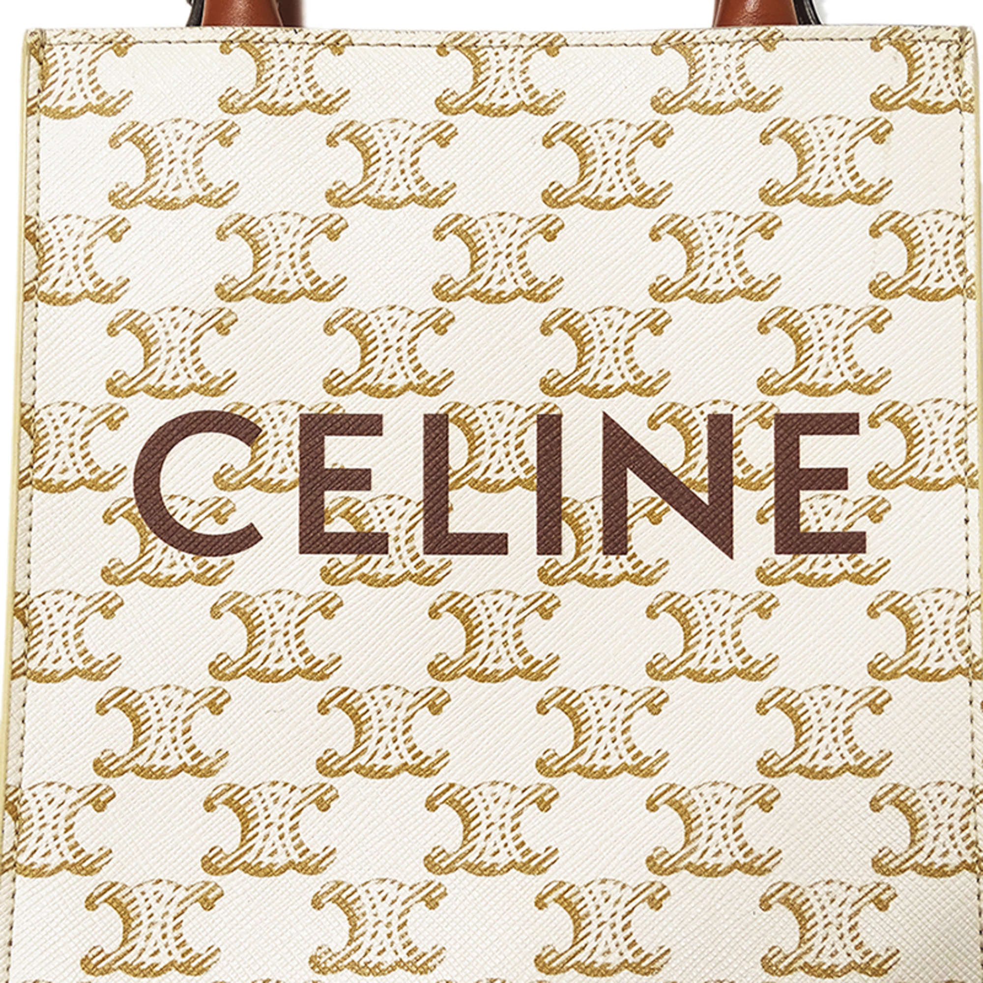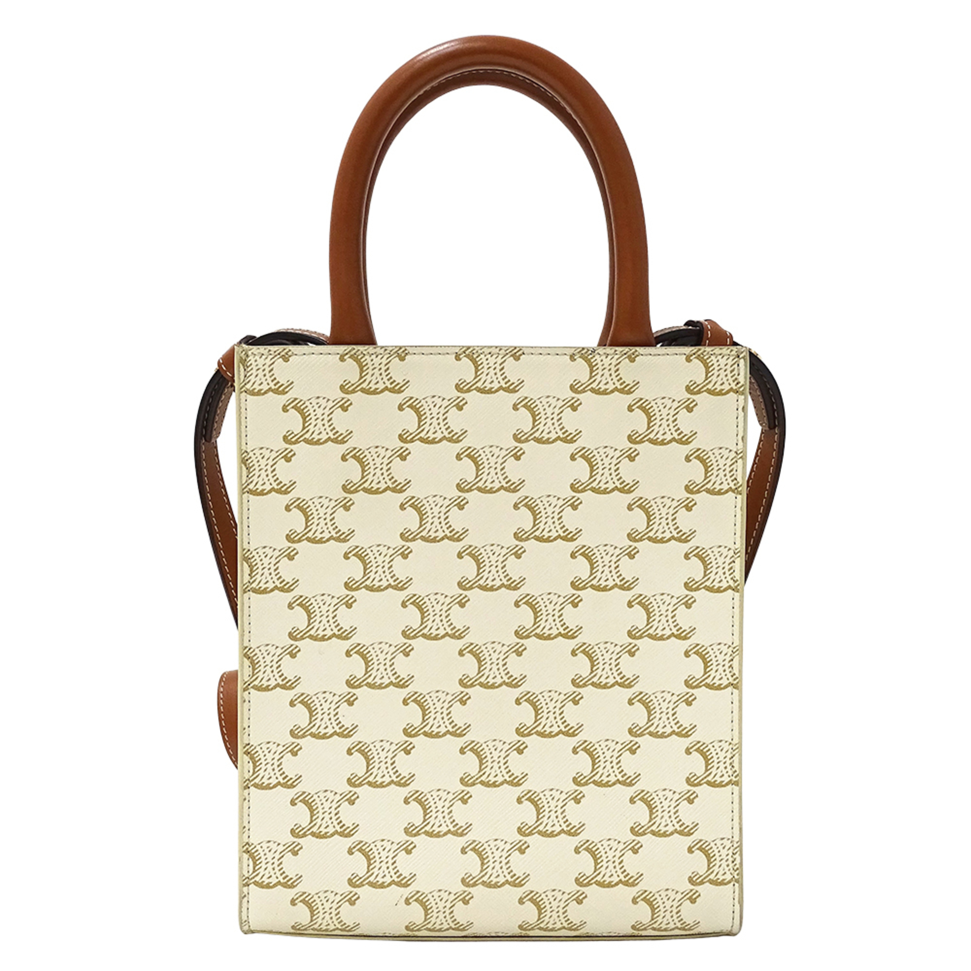 Celine Triomphe Mini Vertical Cabas Bag, Women's, Handbag/Shoulder 2-Way, White/Brown