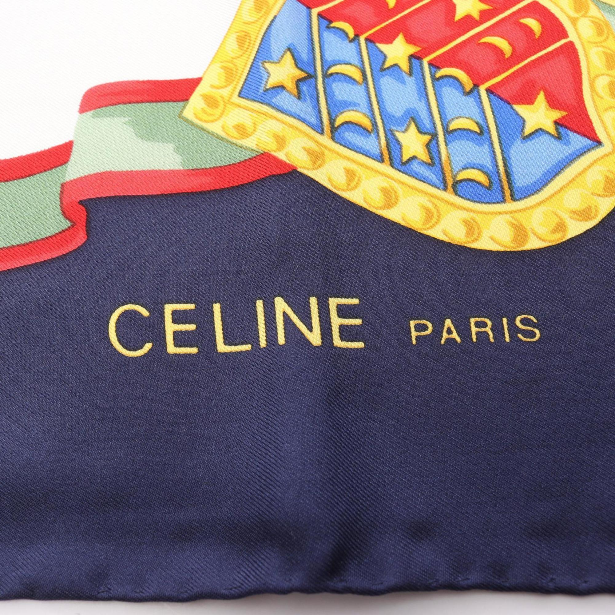 Celine Triomphe Silk Scarf for Women, Navy Multicolor