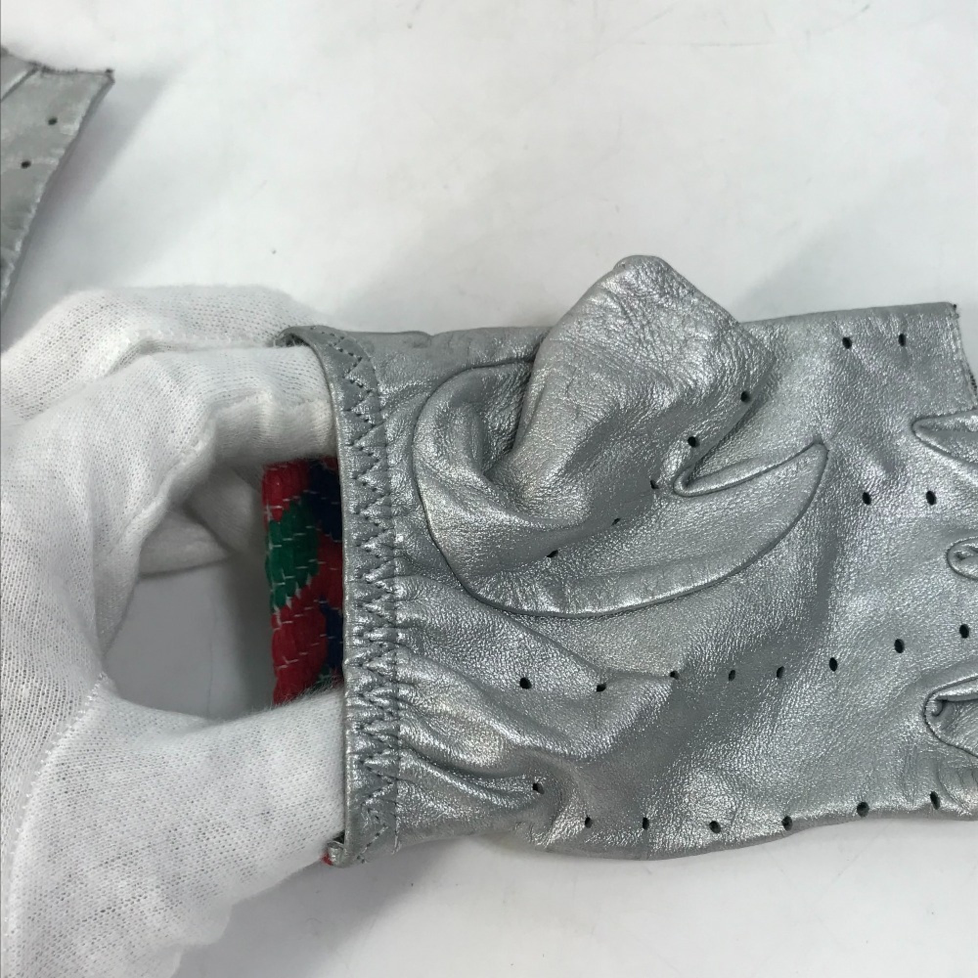 Be the first to review “CHANEL 16S CC Coco Mark Airline Fingerless Leather Gloves, Women’s, Silver”
