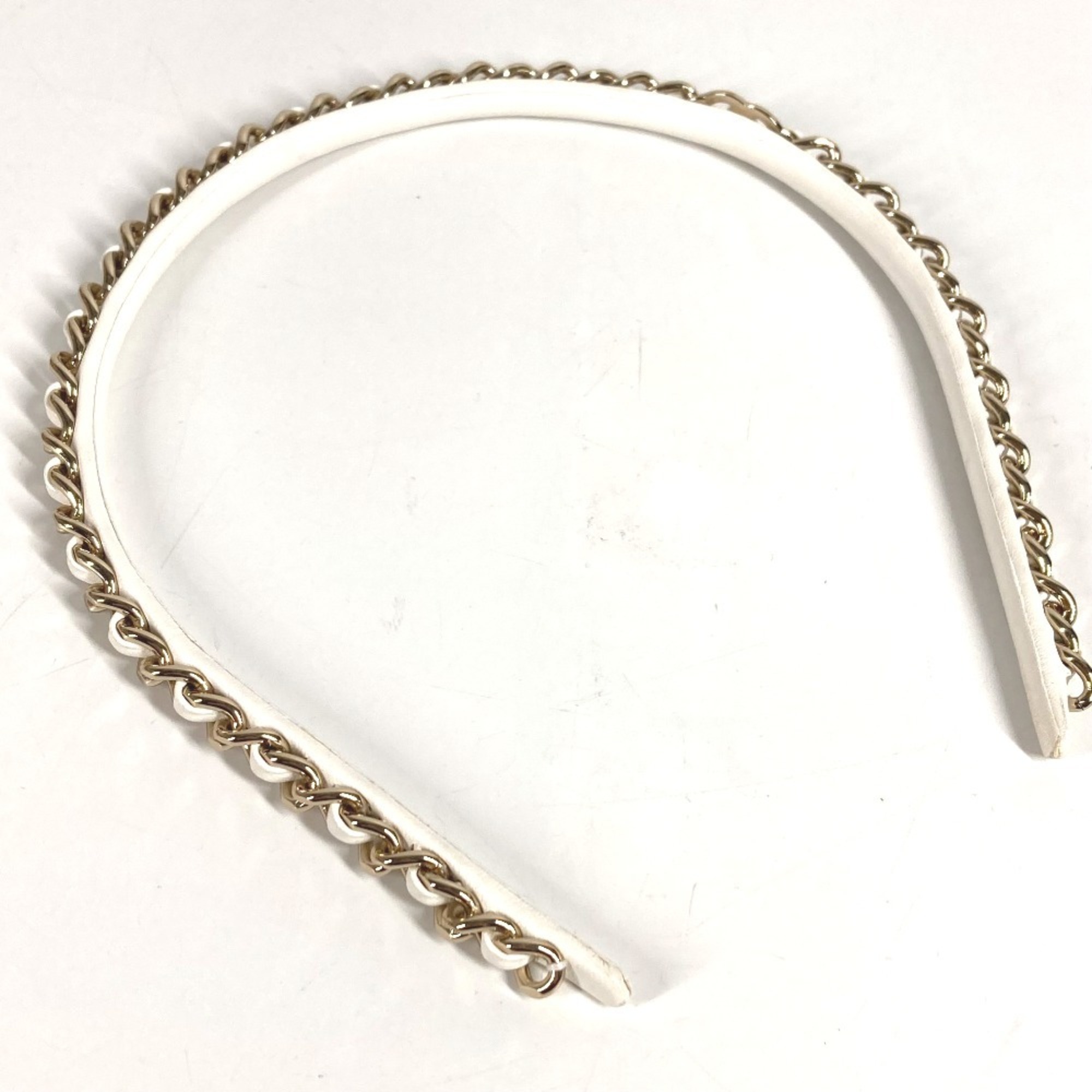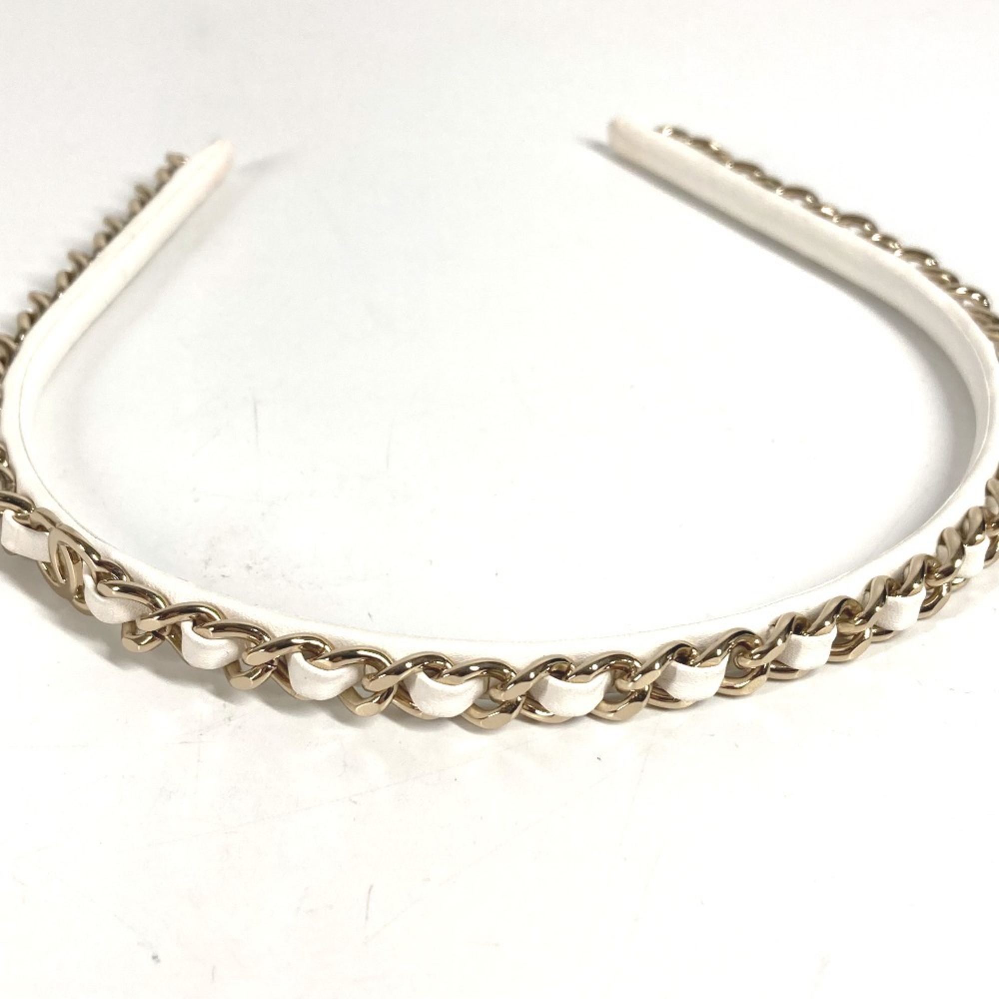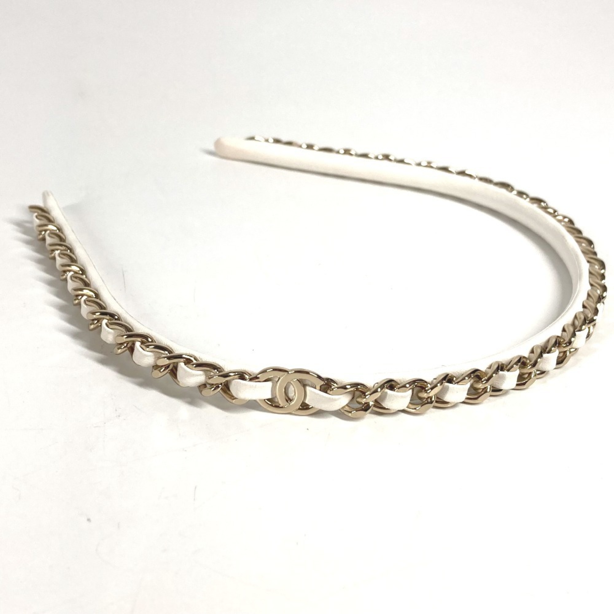 CHANEL 22S Chain CC Coco Mark Hair Accessory Headband Leather Women's White