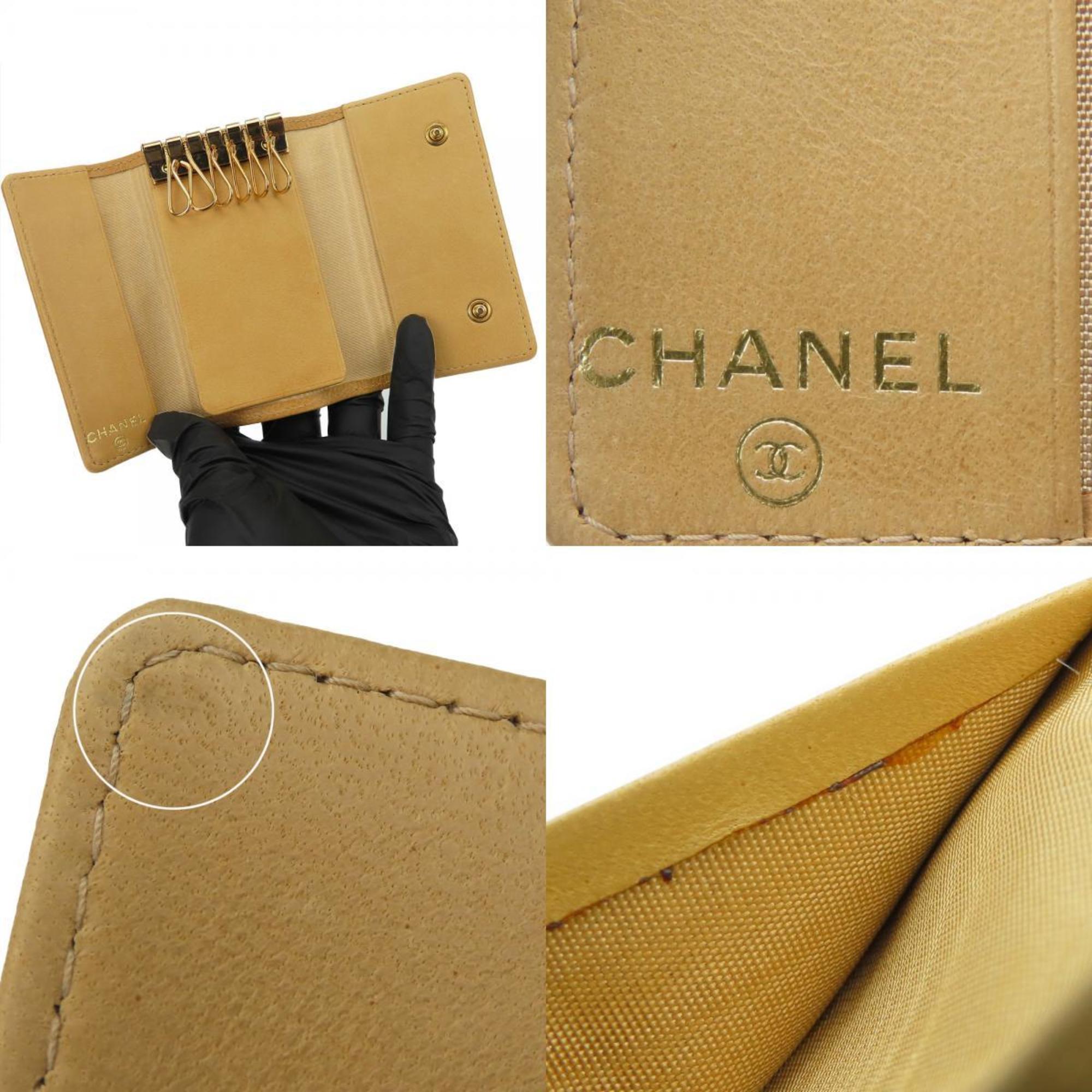 Chanel 6-ring key case, caviar skin, beige, No. 8, Coco mark, accessory, women's, CHANEL