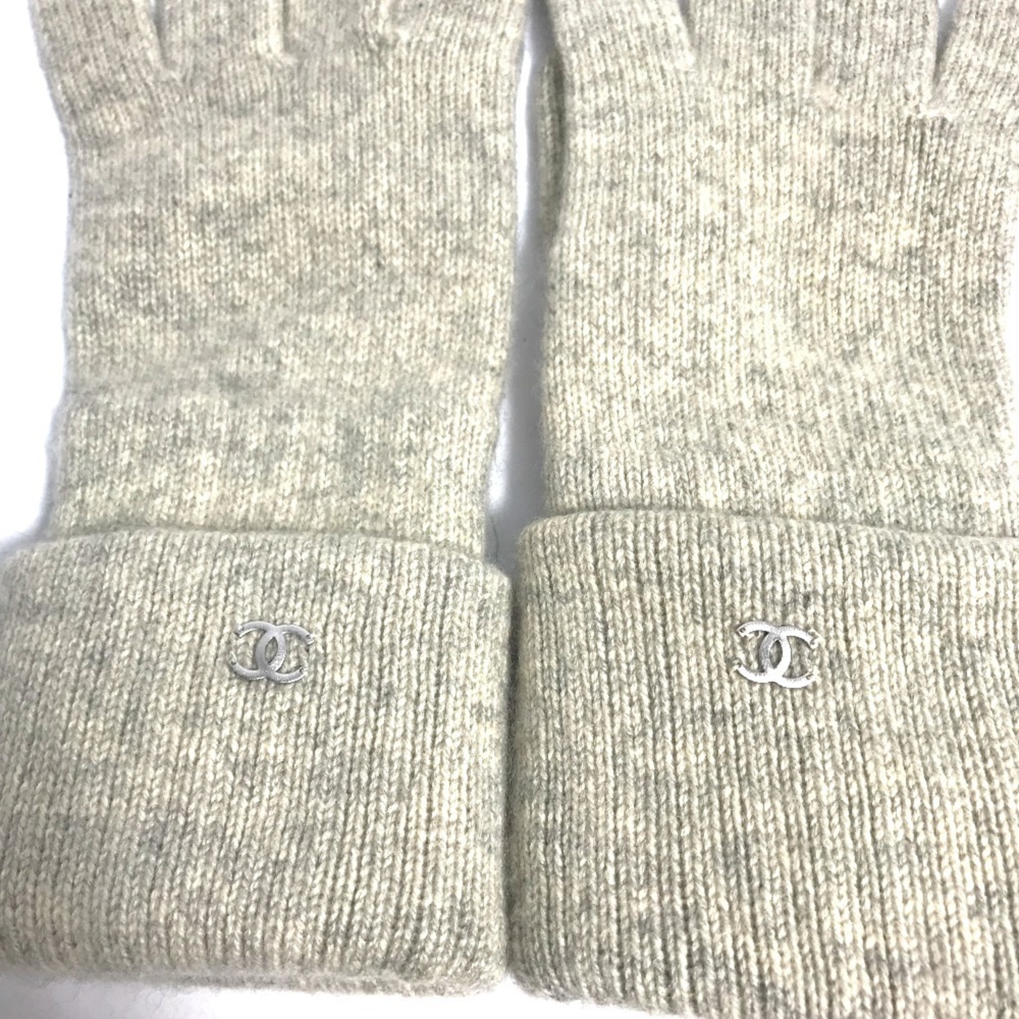 CHANEL CC Coco Mark Gloves, Cashmere, Women's, Beige