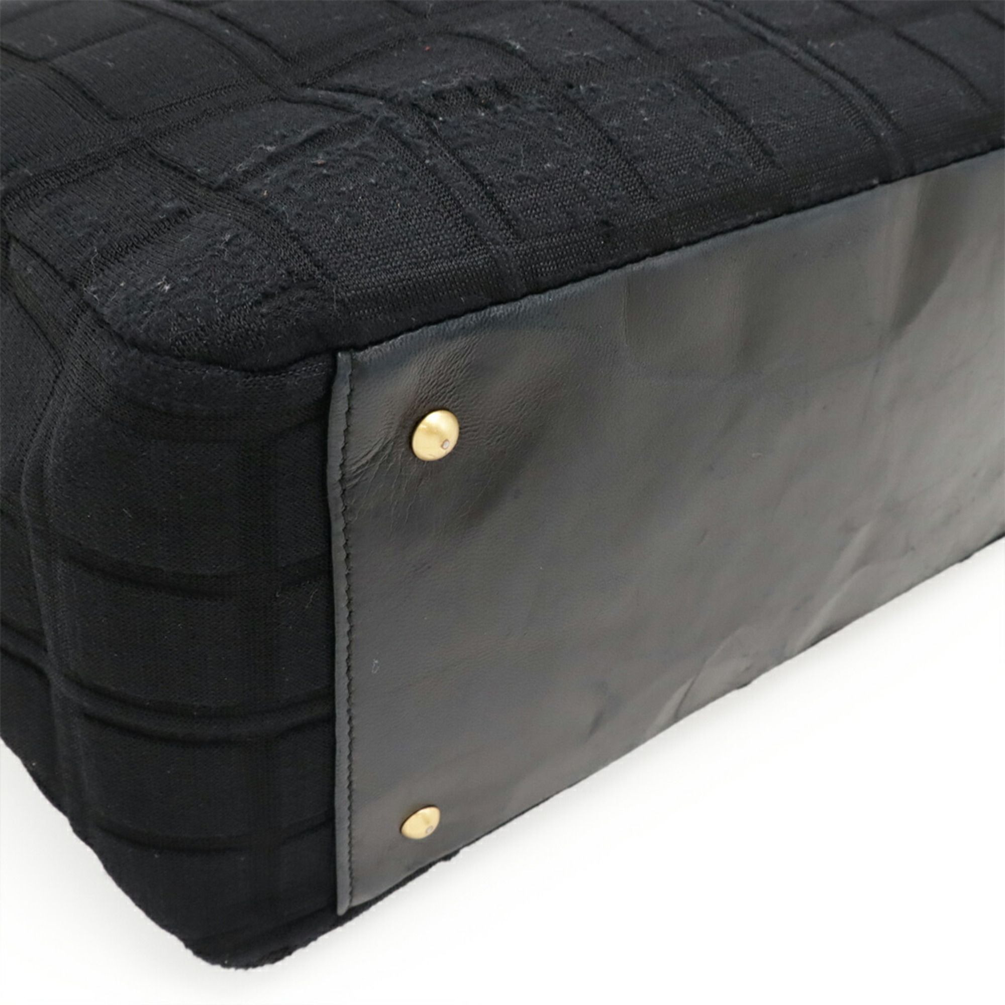 CHANEL Chocobar Coco Mark Chain Tote Bag Shoulder Cotton Jersey Leather Black