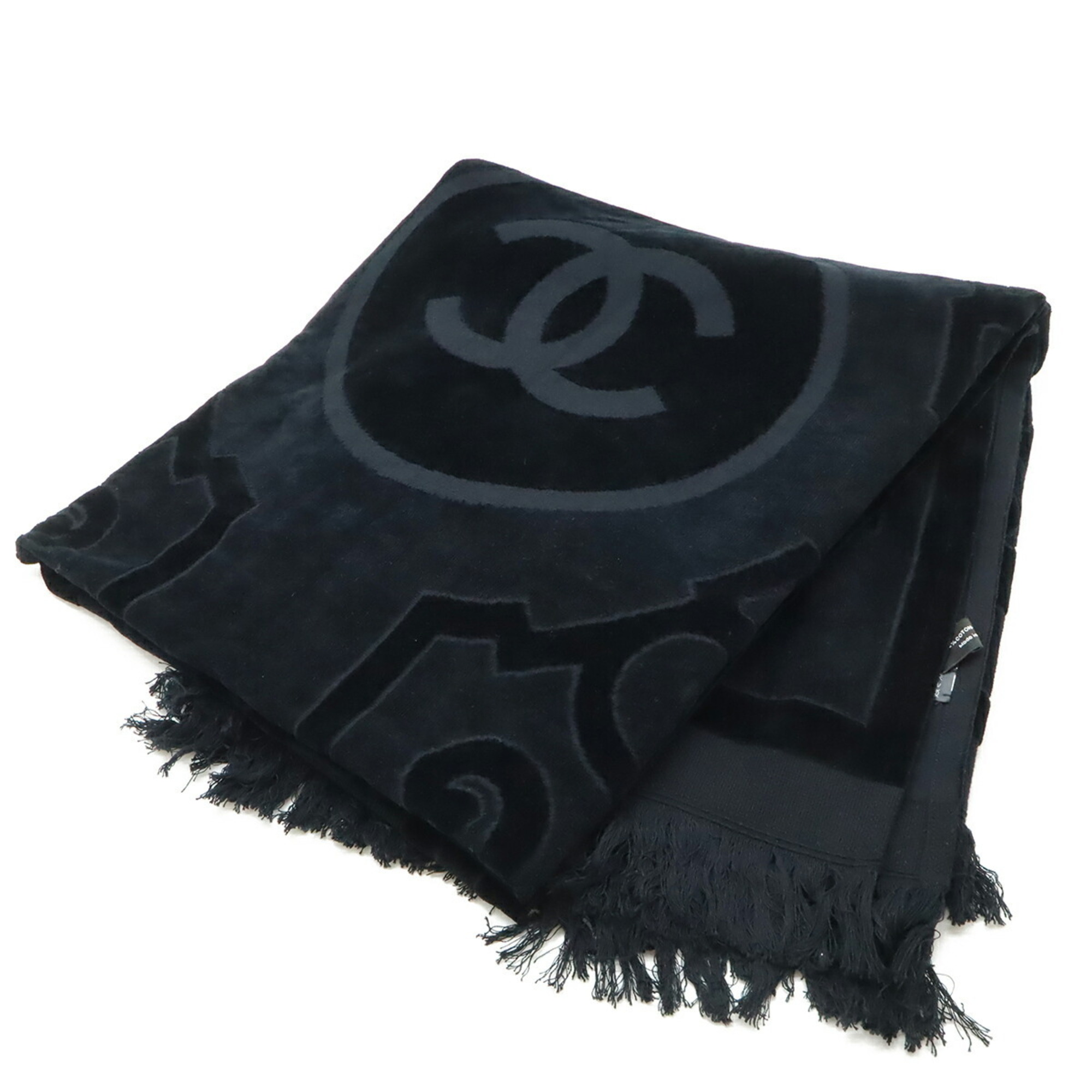 CHANEL Coco Mark Beach Tote, Bag, Large Shoulder Pile, Black, Includes Blanket