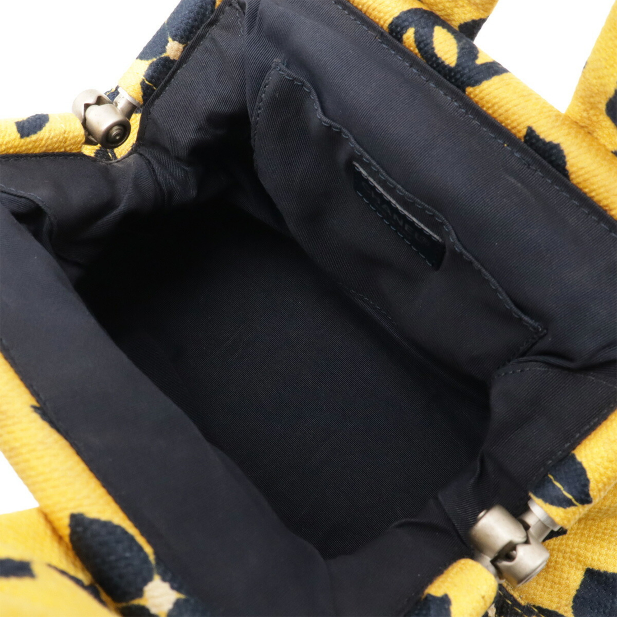 CHANEL Coco Mark Flower Handbag Canvas Yellow Navy