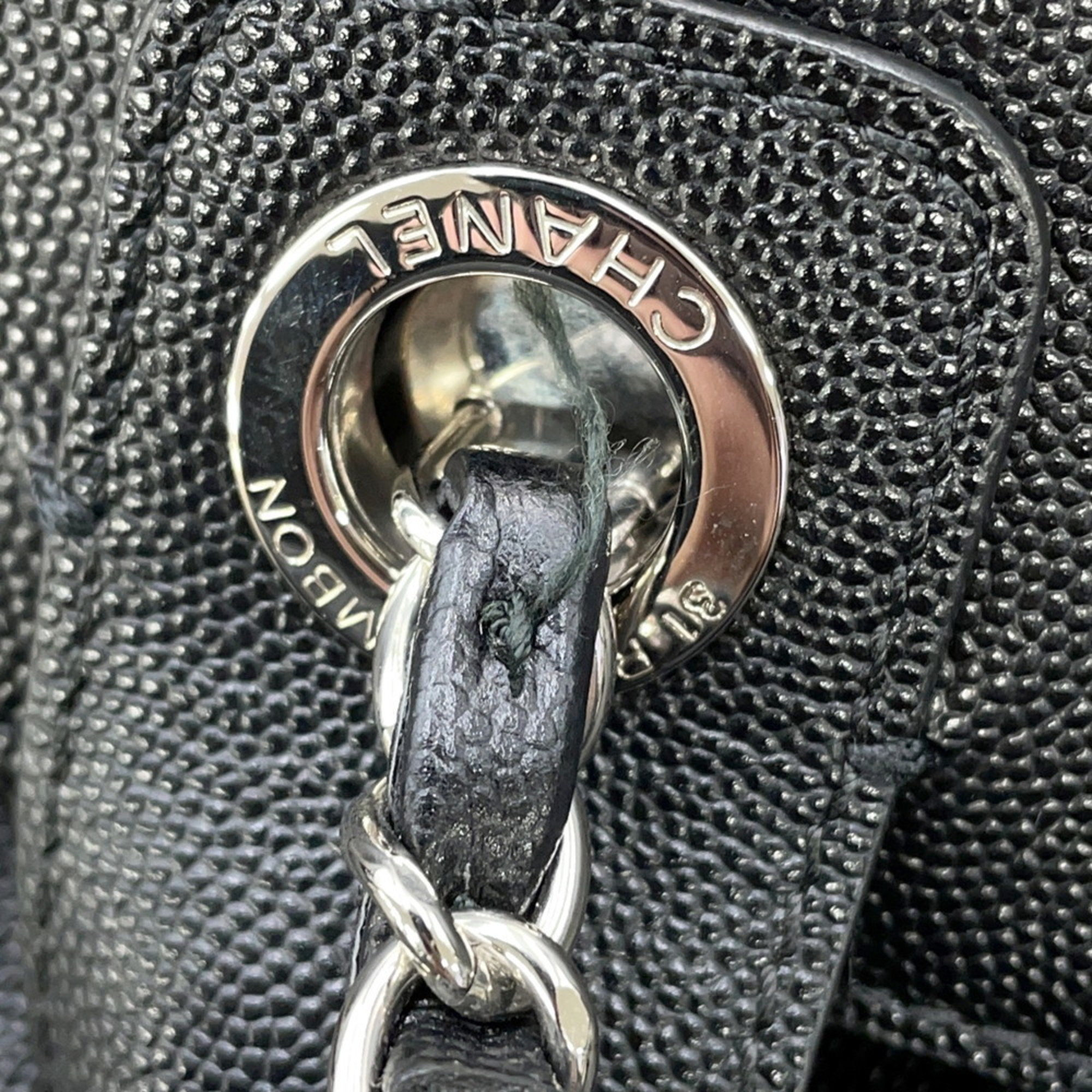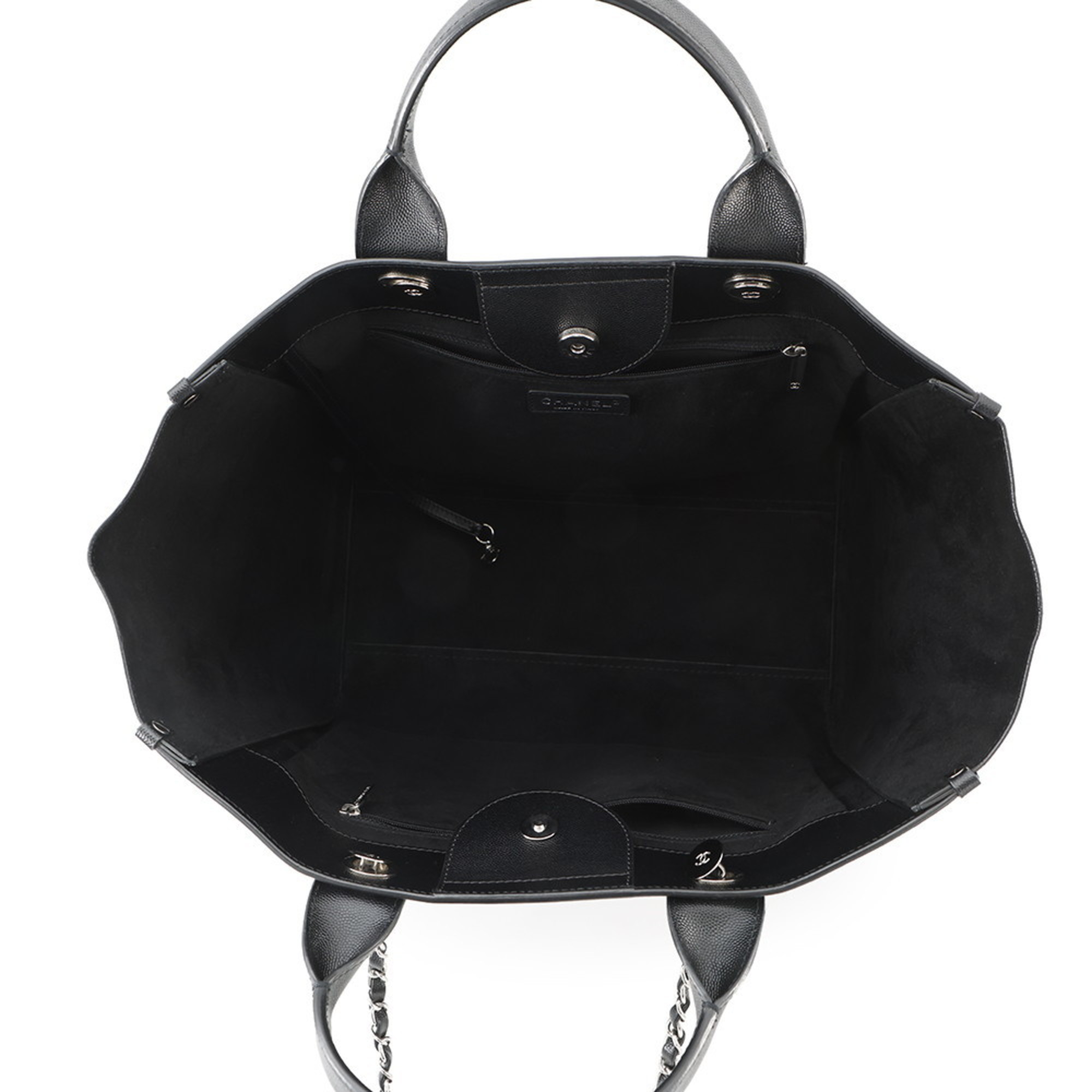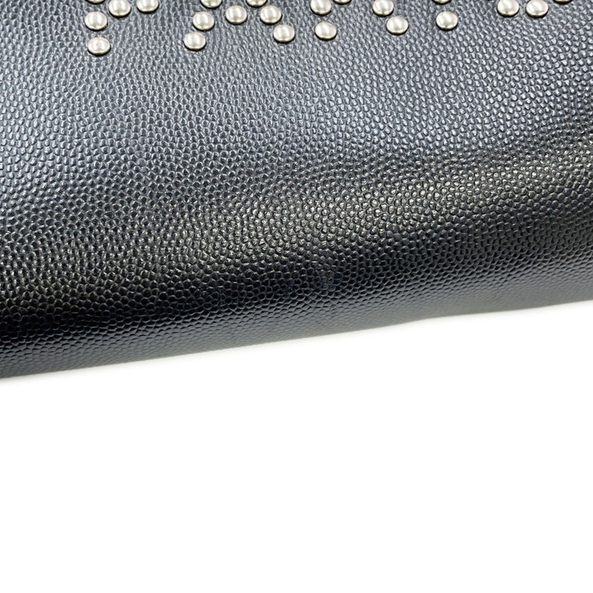 Chanel Deauville Coco Mark Studded Large Caviar Leather Tote Bag A57067 Black 2-Way