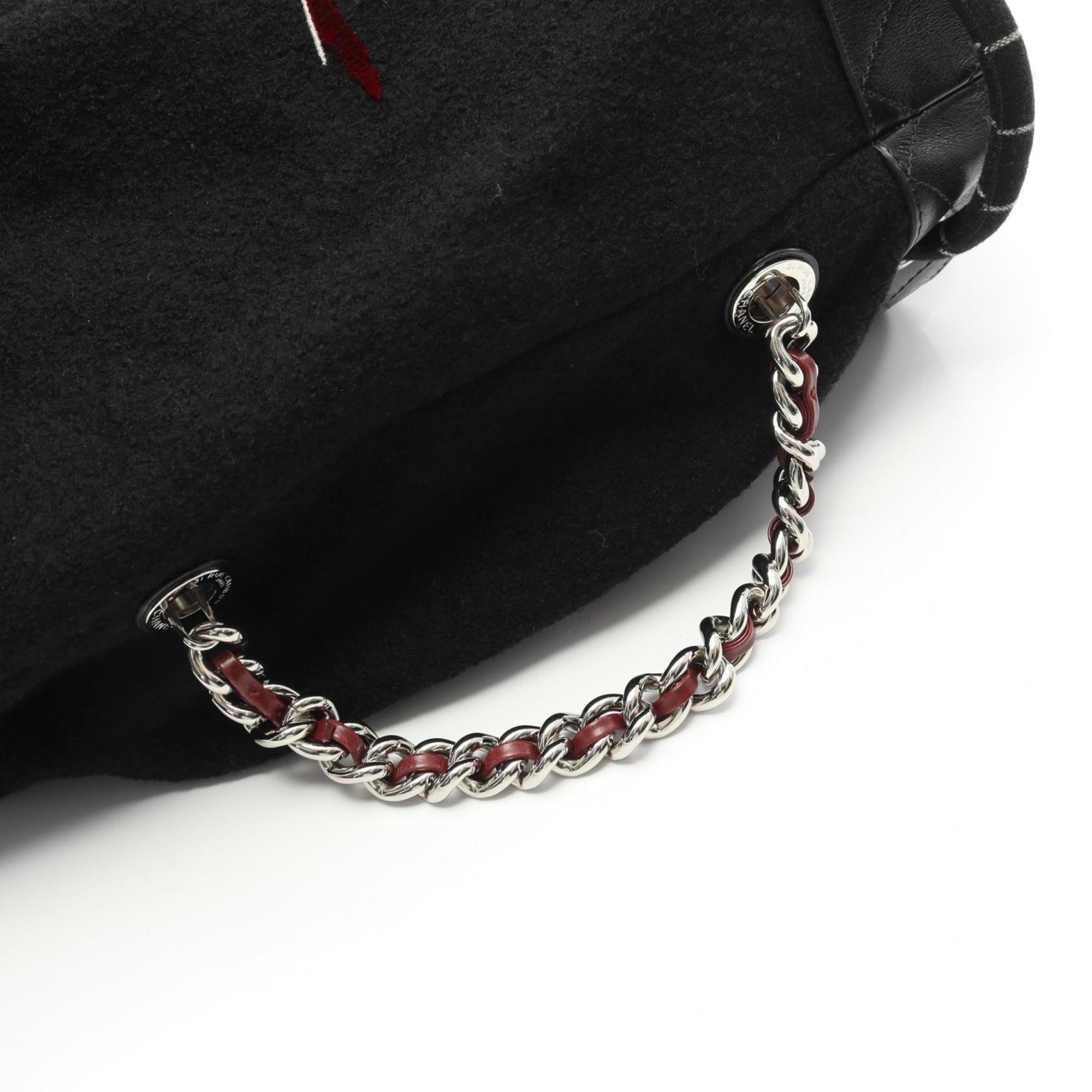 CHANEL Embroidered Shoulder Bag in Wool and Leather, Women's, Black, A57540