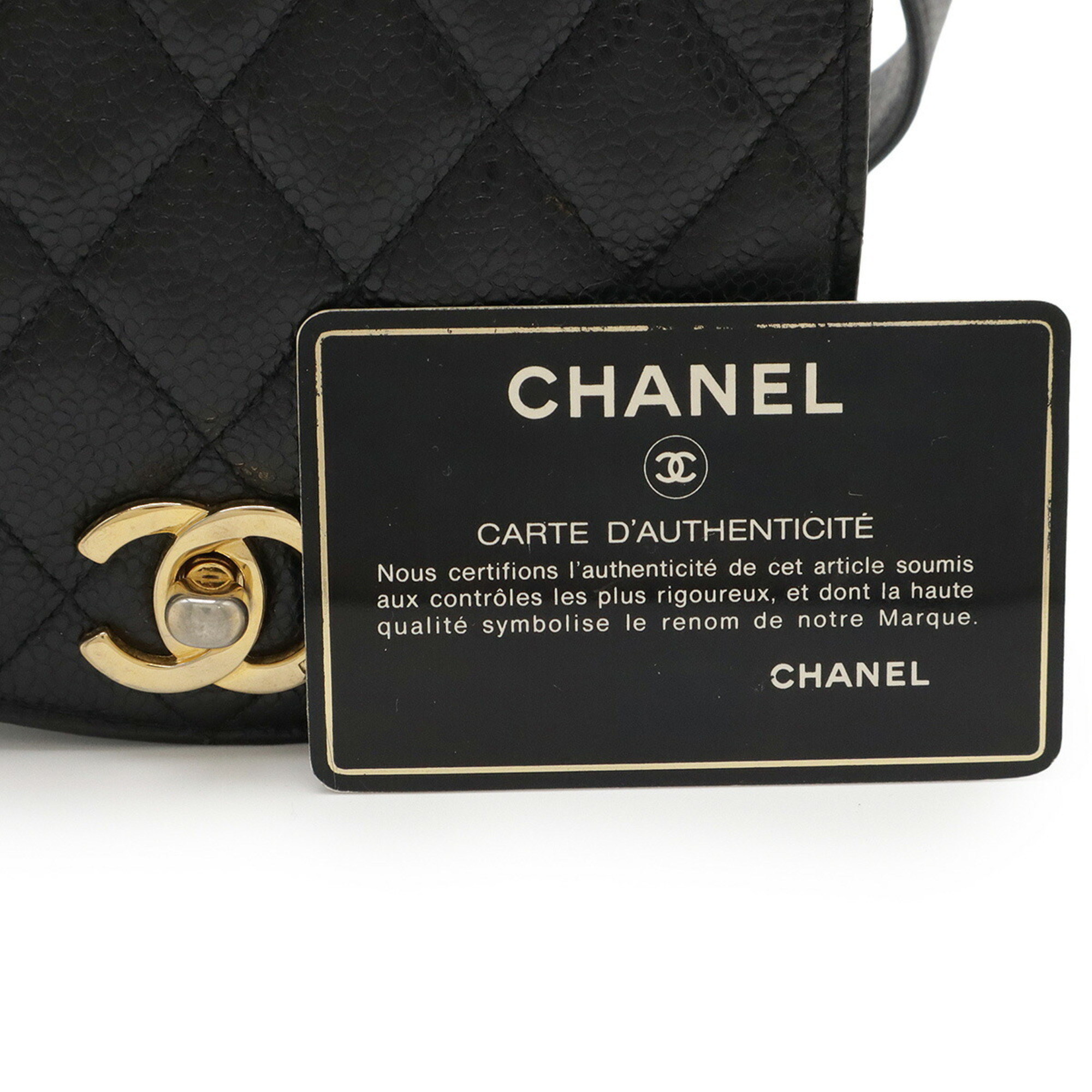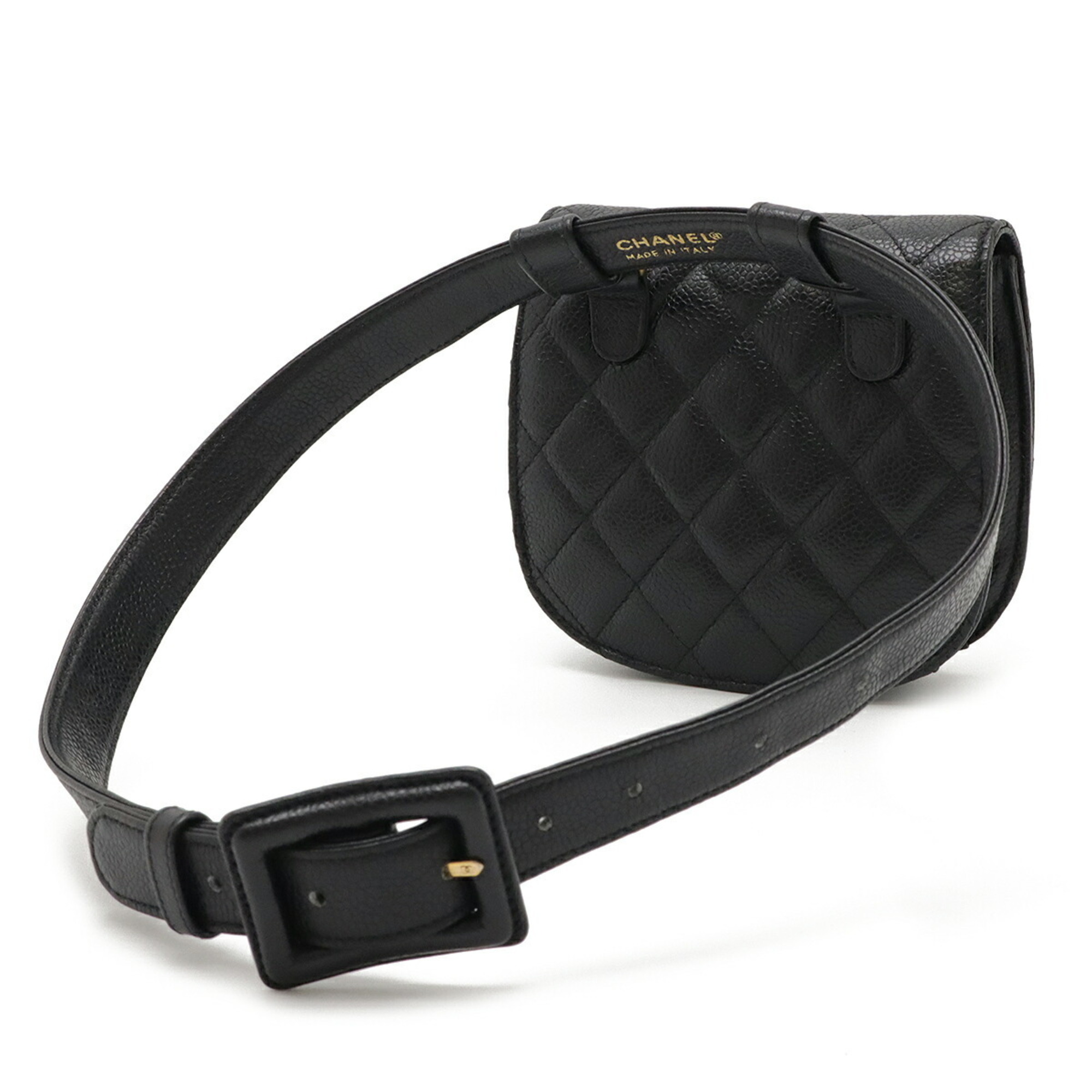CHANEL Matelasse Belt Bag, Waist Pouch, Body Caviar Leather, Black, #75