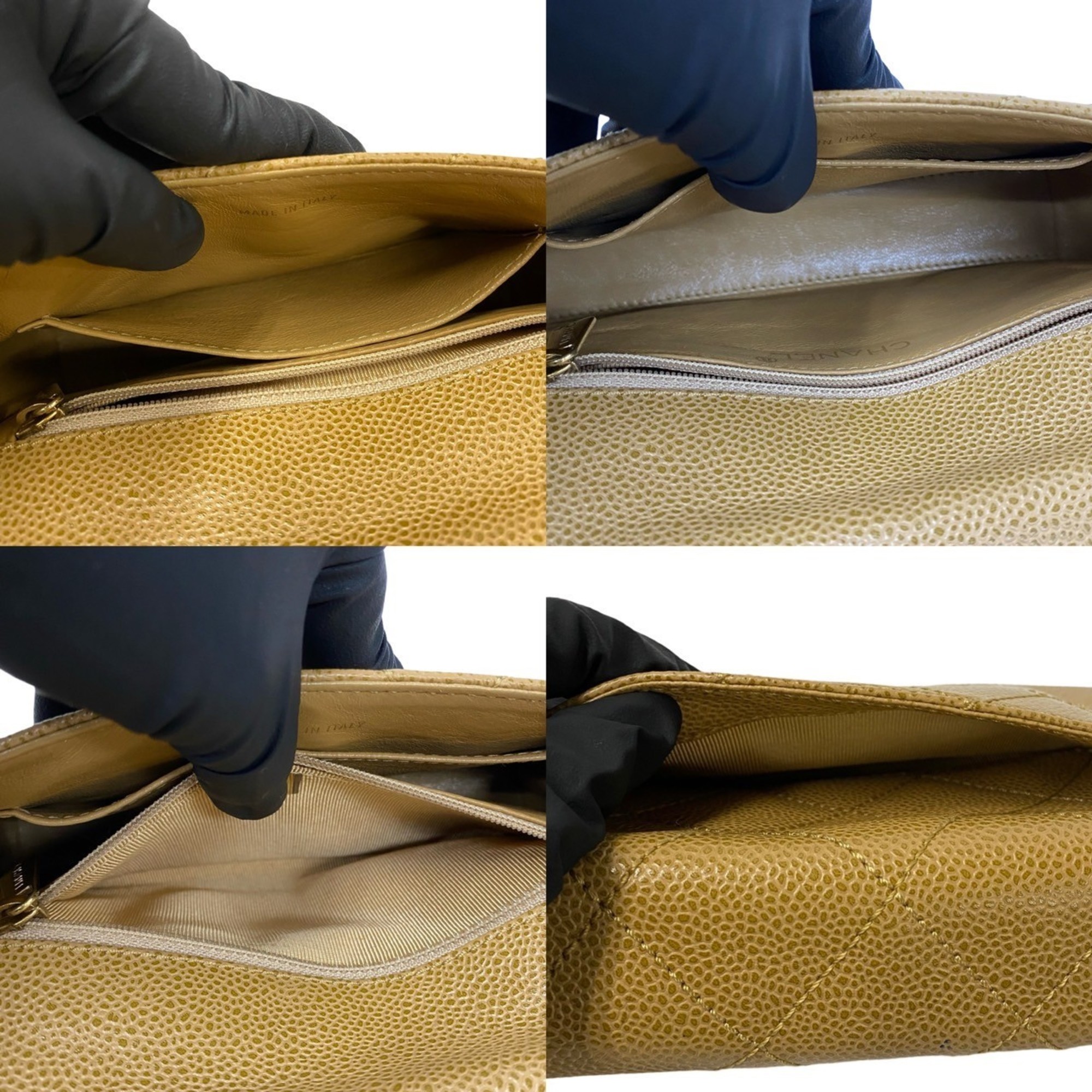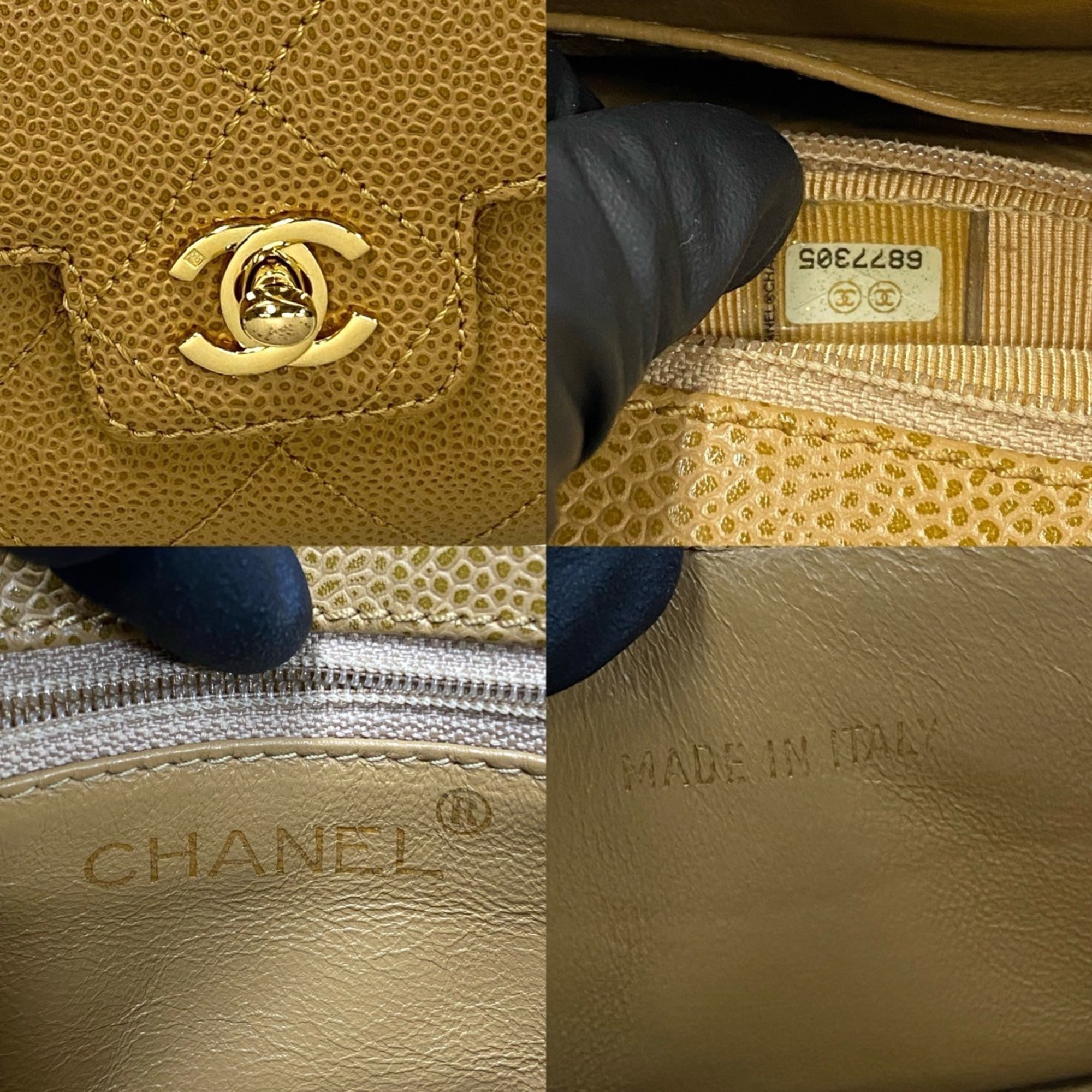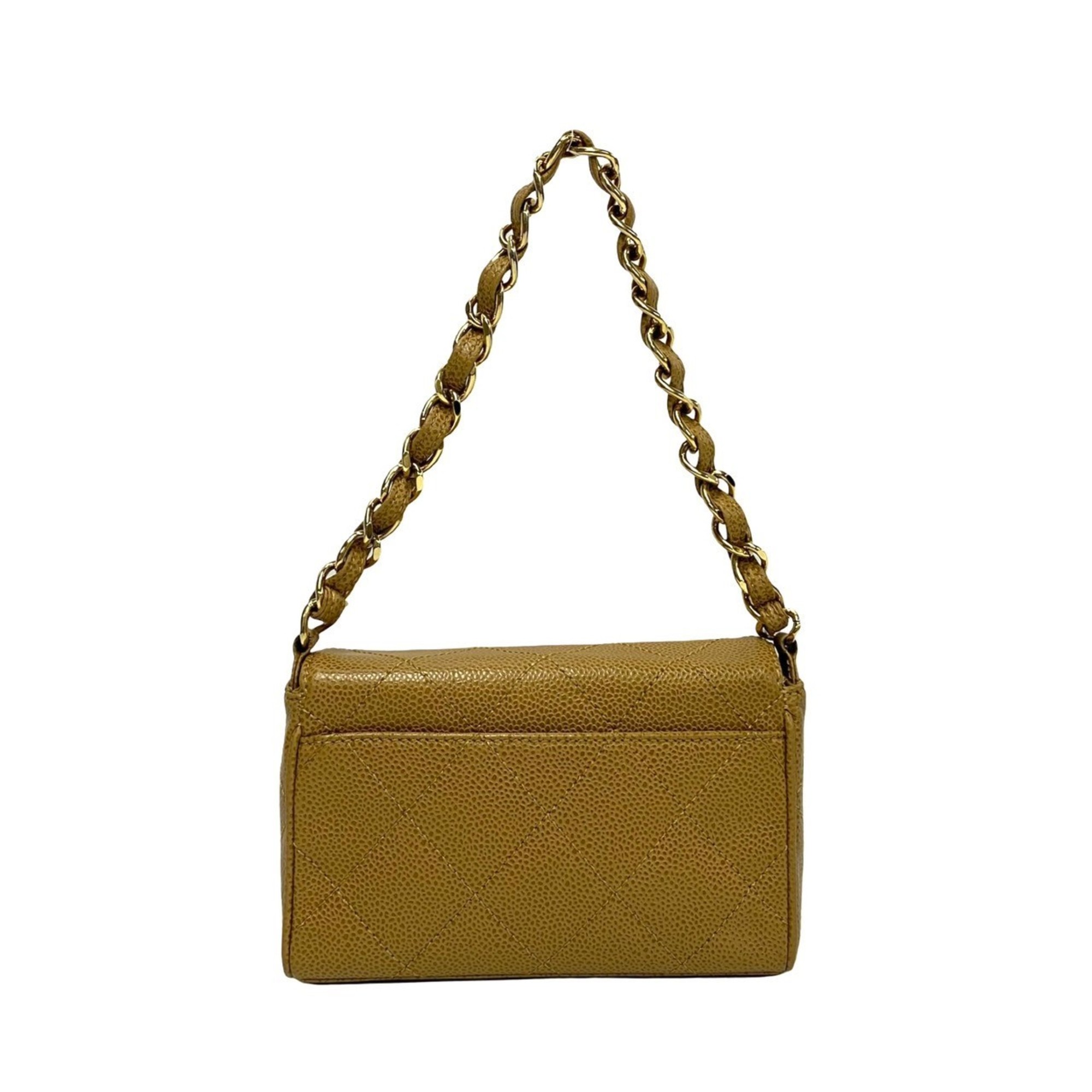 Home / BAGS / CHANEL Matelasse Coco Mark Caviar Leather Chain Mini Handbag, Beige, 19007