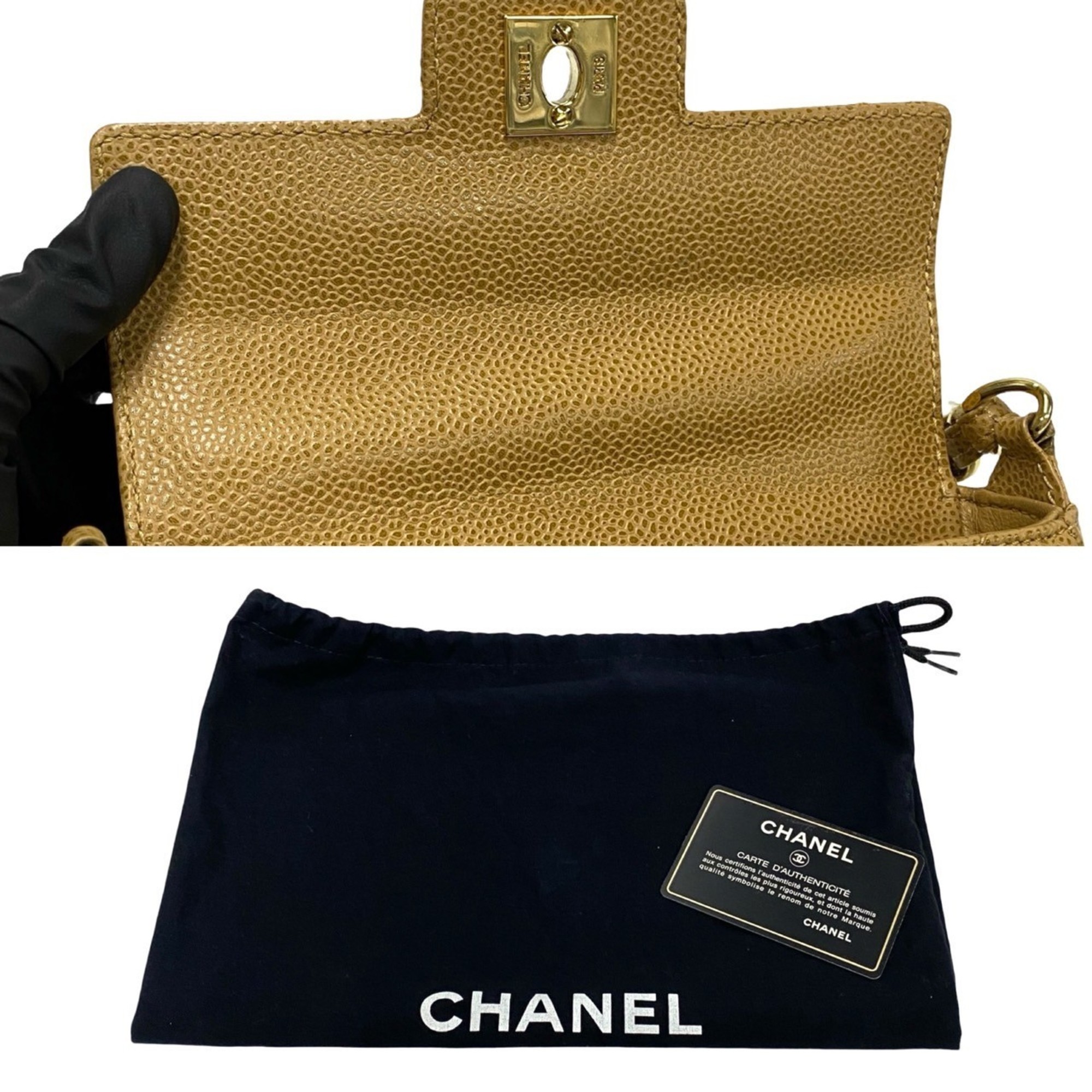 Be the first to review “CHANEL Matelasse Coco Mark Caviar Leather Chain Mini Handbag, Beige, 19007”
