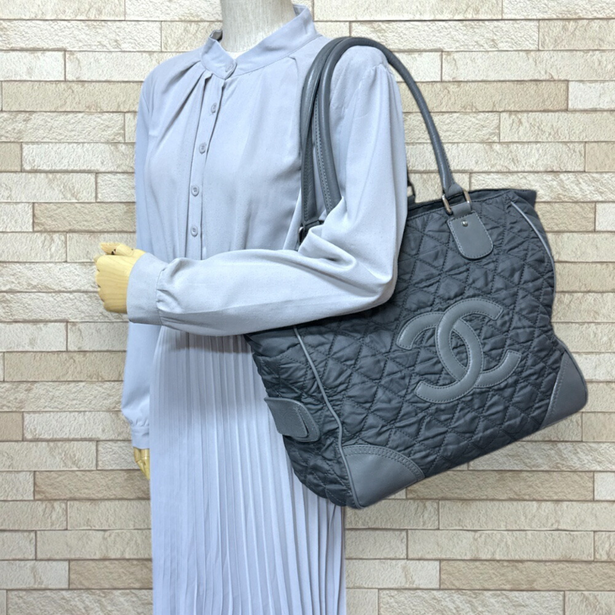 Chanel Paris New York Line Coco Mark Tote Bag Nylon A33100 Grey Women's CHANEL