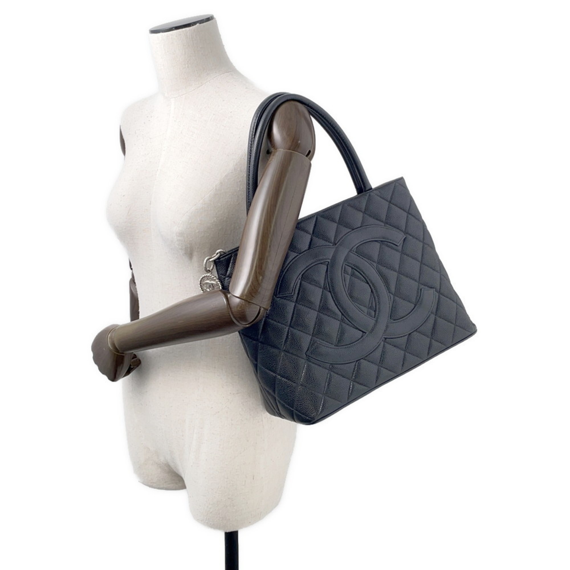 Chanel Replica Tote Bag, Coco Mark, Matelasse, Caviar Skin, A01804, Black