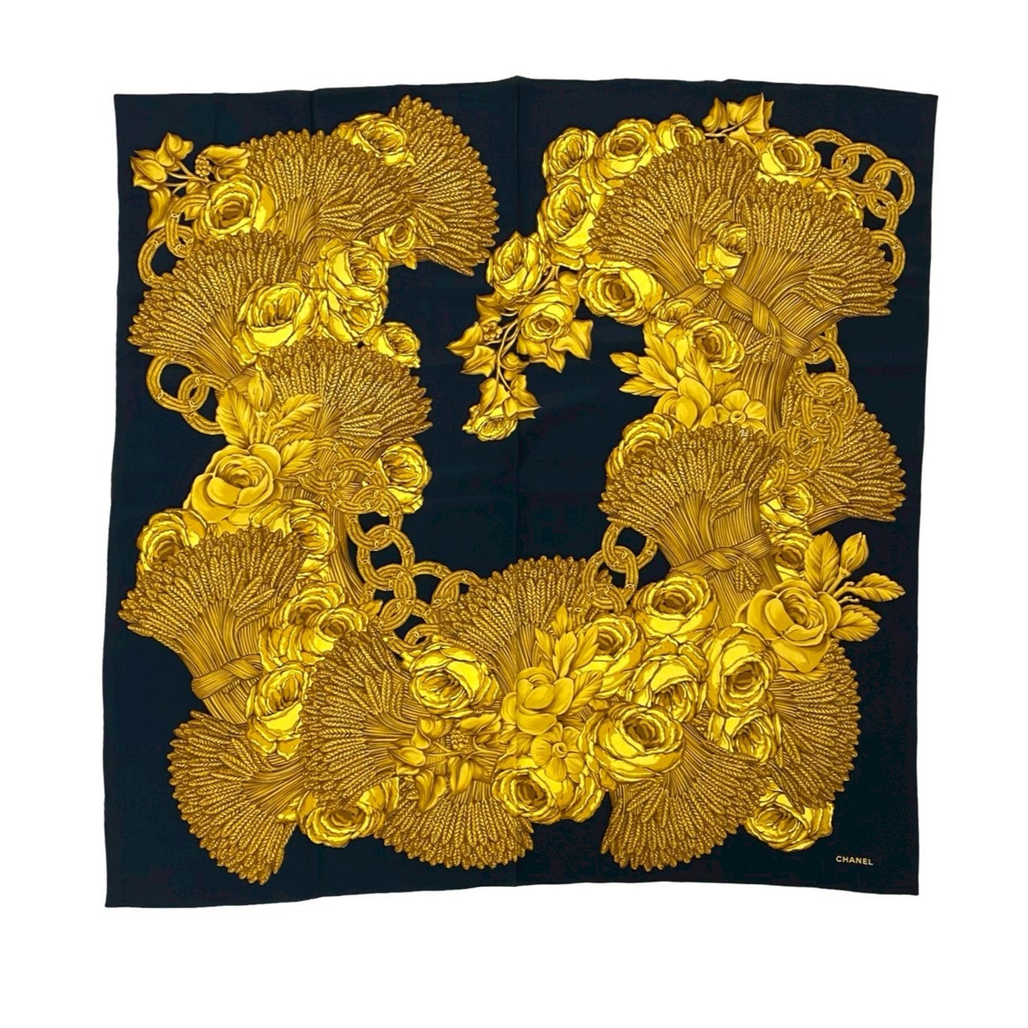Be the first to review “CHANEL Tassel Floral Print Coco Mark Silk Scarf Muffler for Women, Black and Gold, 16768”