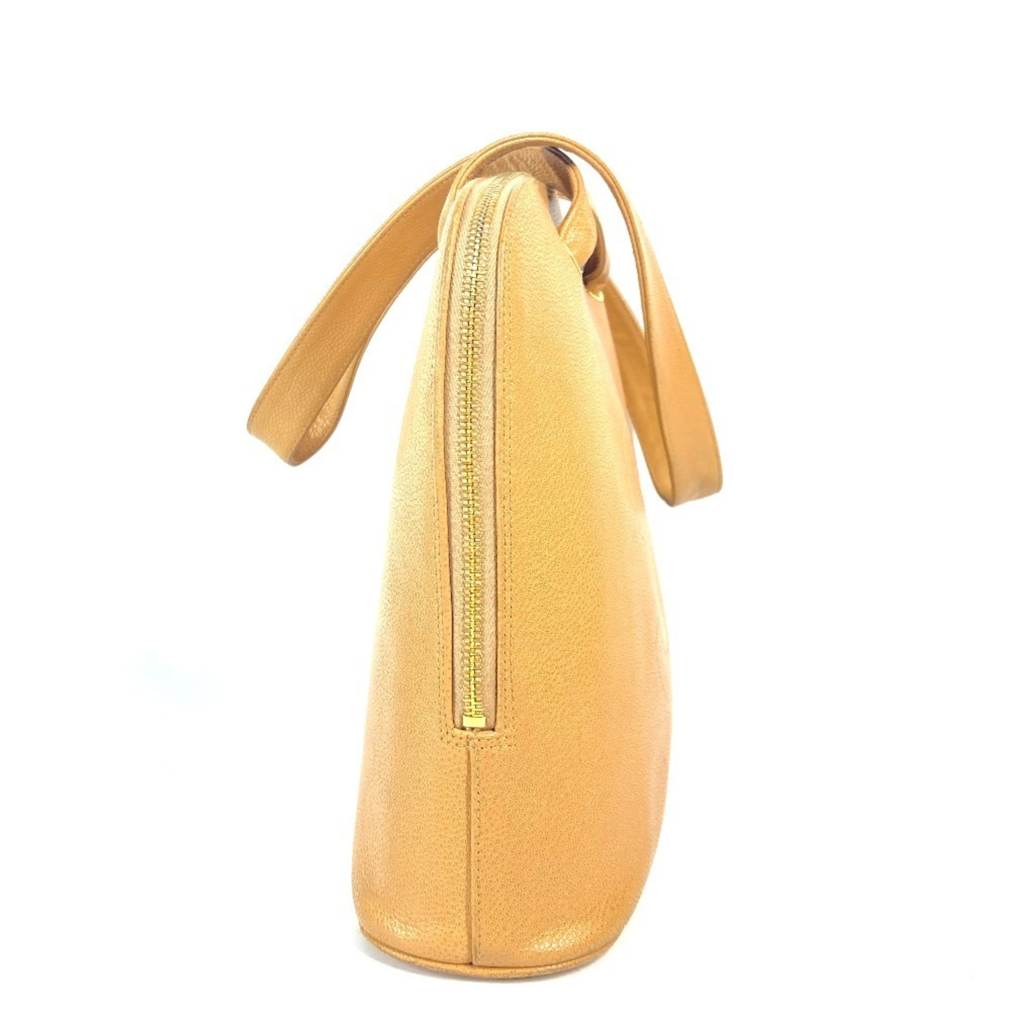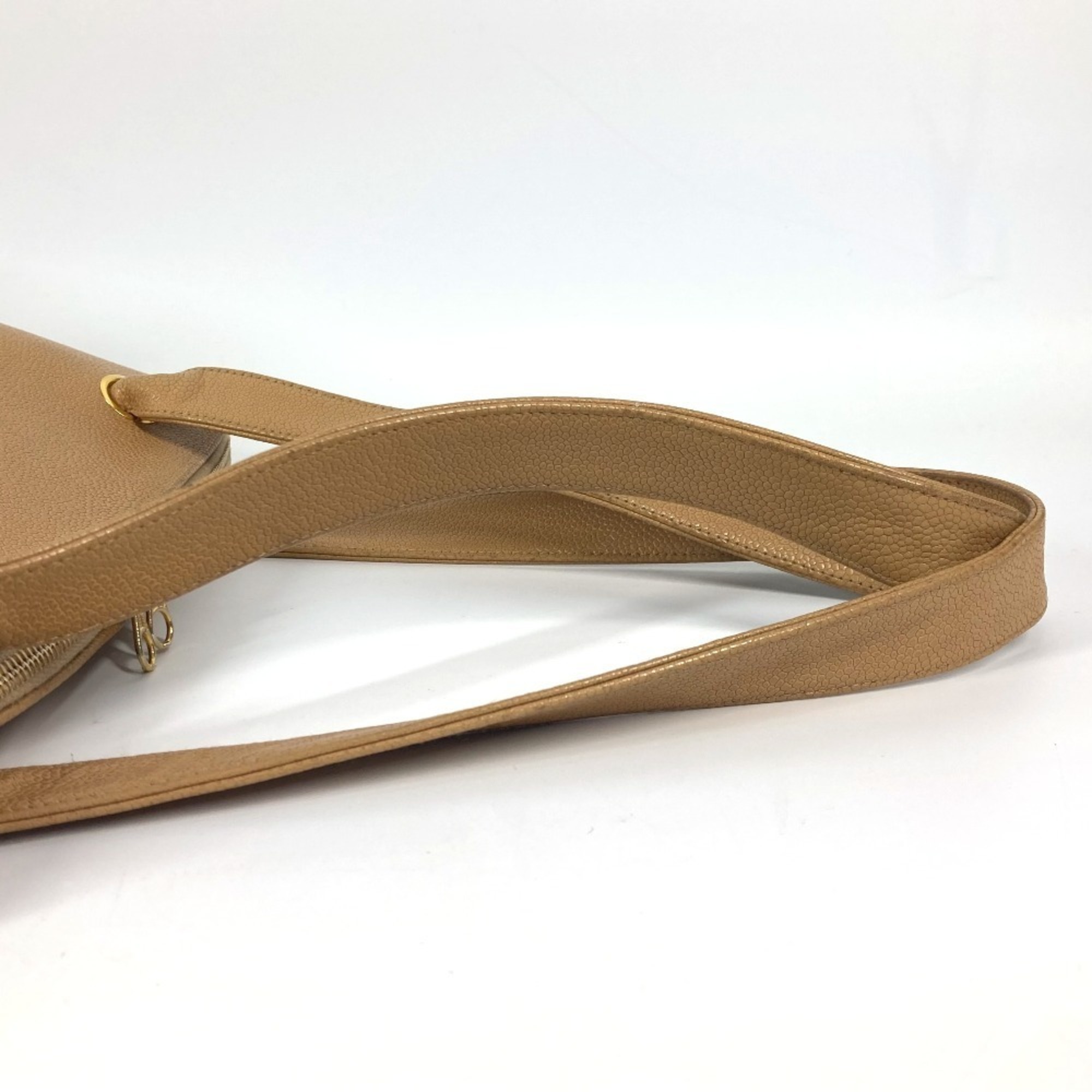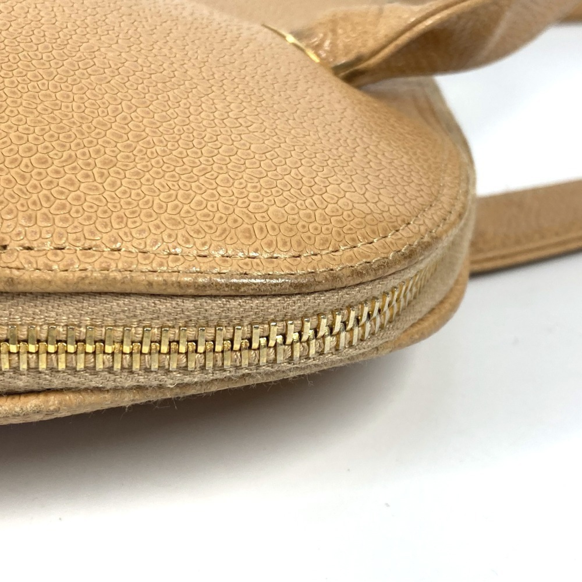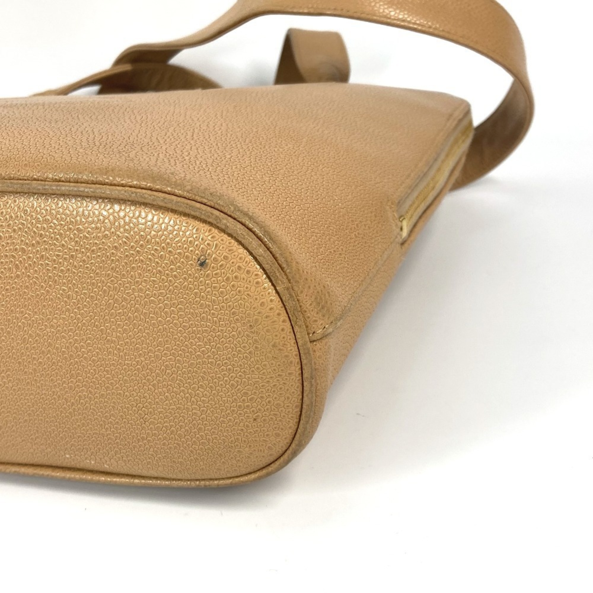 CHANEL Vintage CC Coco Mark Bag Shoulder Tote Caviar Skin Women's Beige