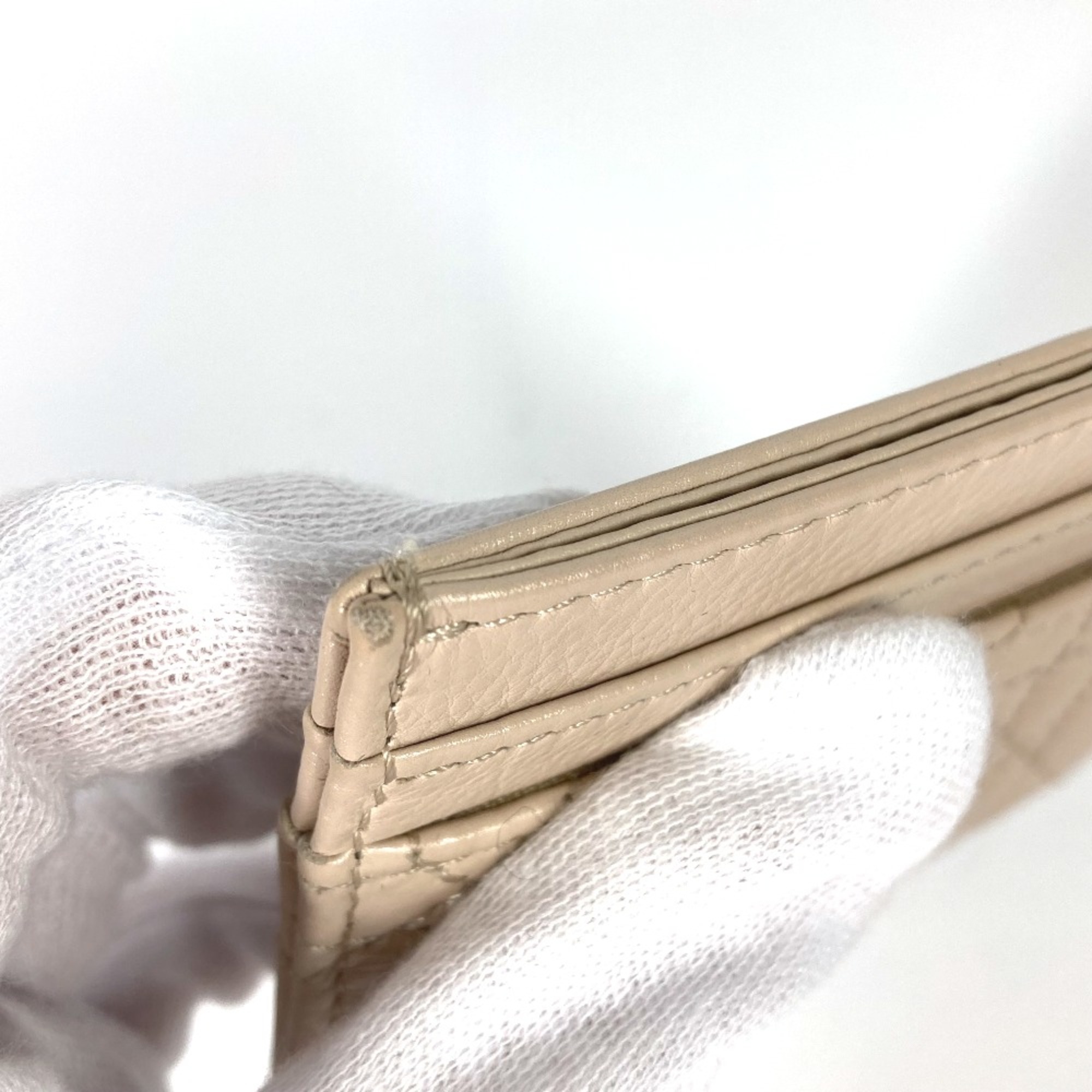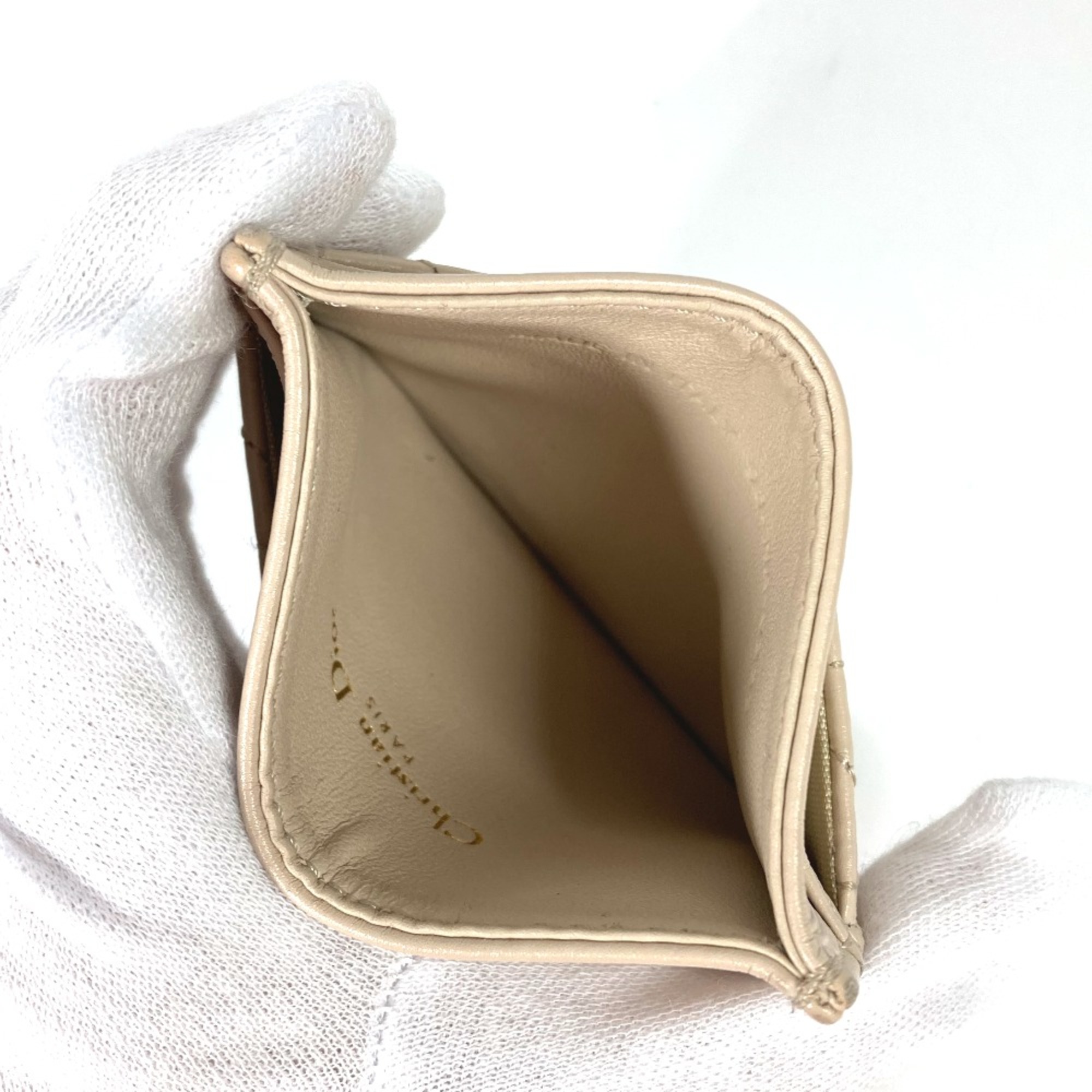 CHRISTIAN DIOR Cannage Business Card Holder Pass Case Card Case Beige
