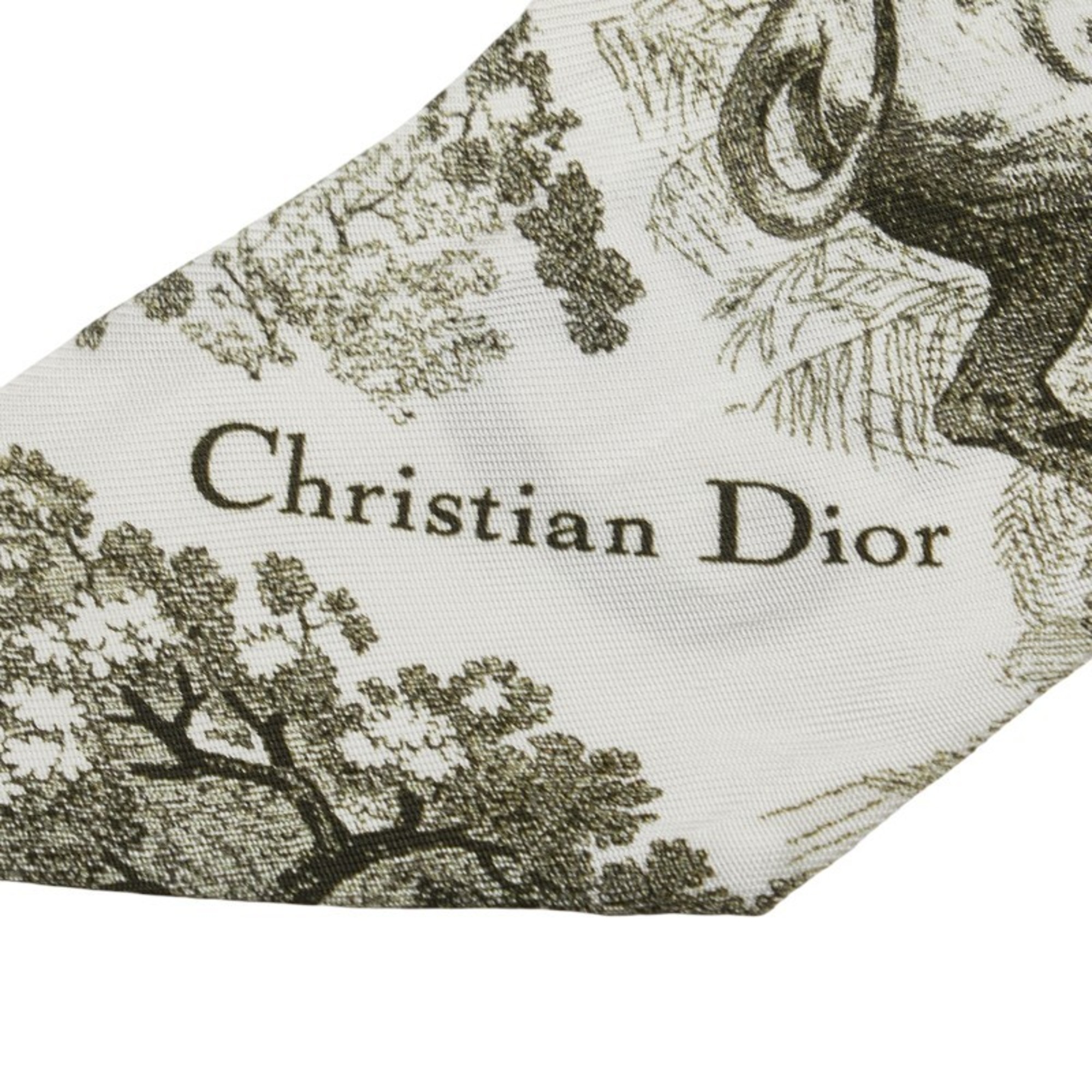 Christian Dior Dior Mitzah Toile de Jouy Scarf/Muffler in White Khaki Silk for Women