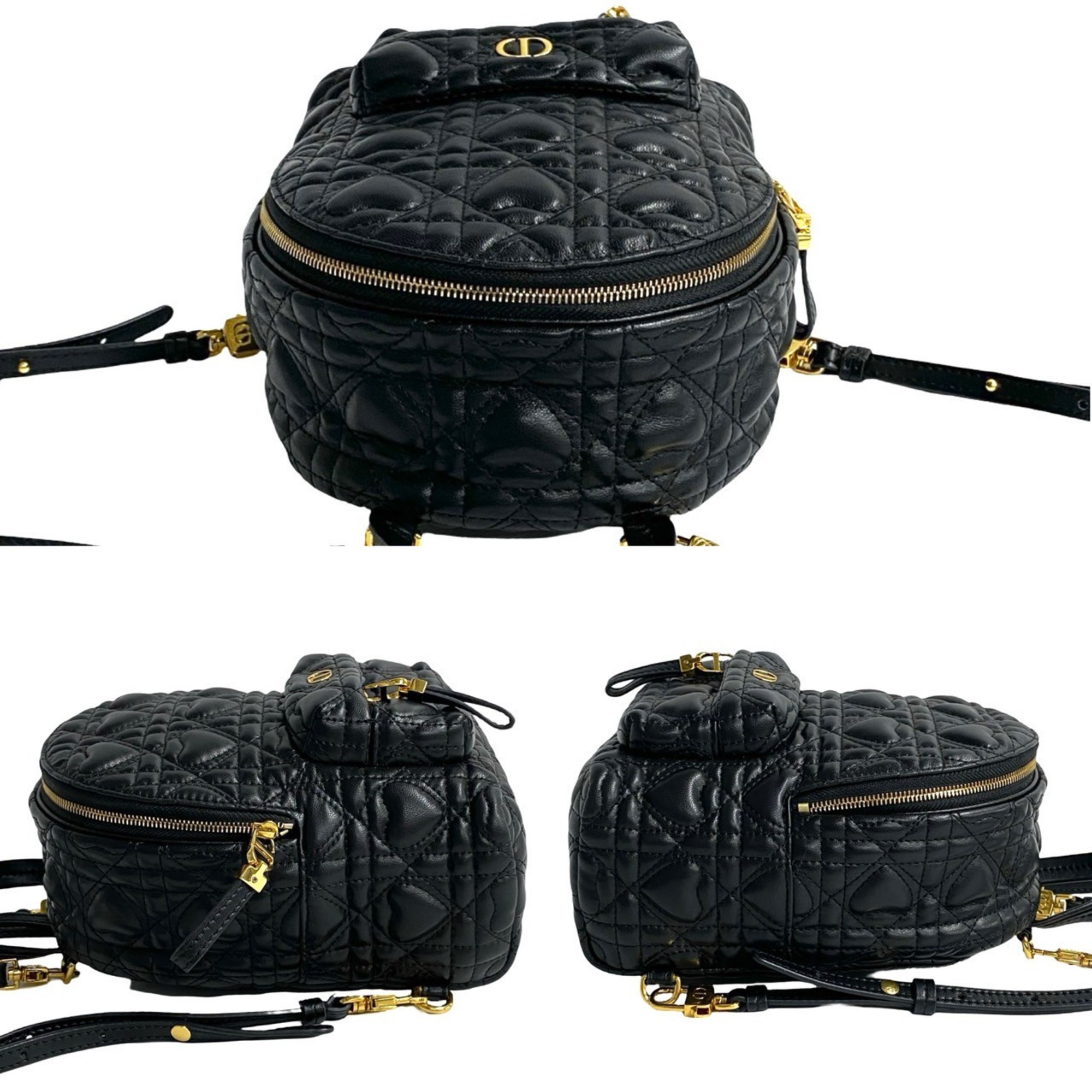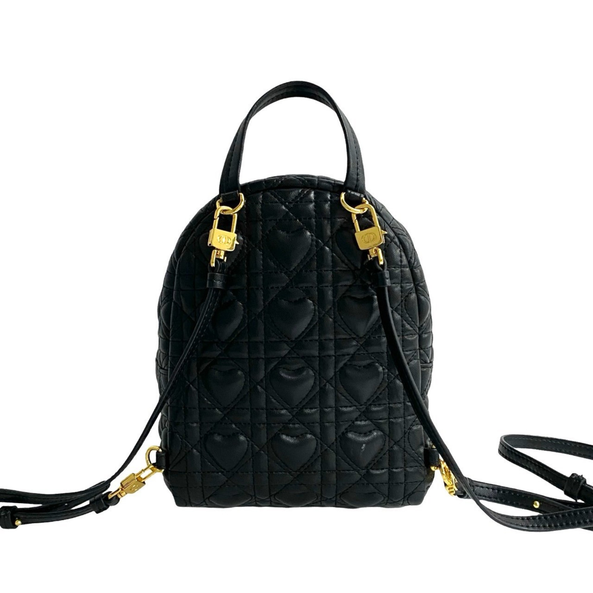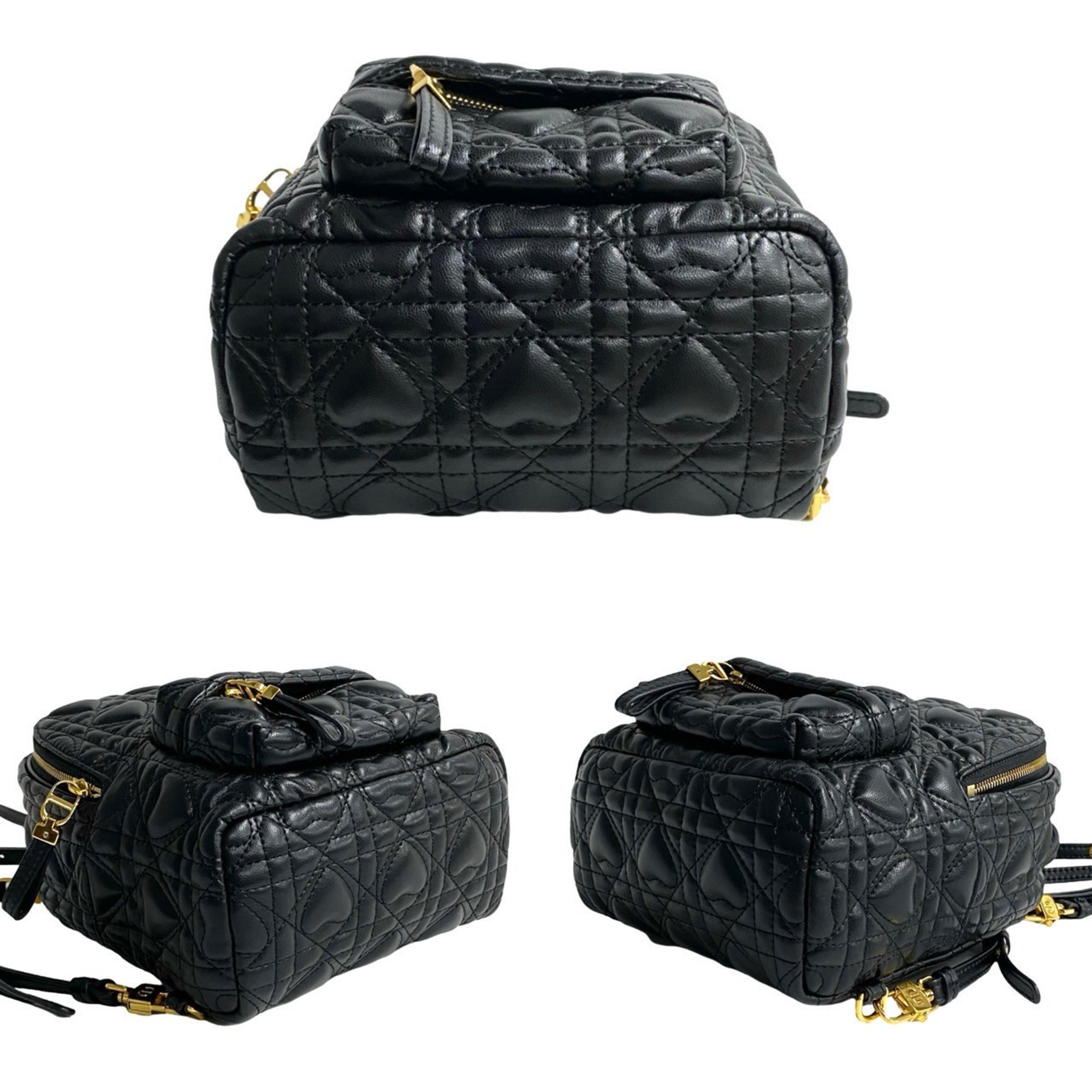 Christian Dior Heart Cannage CD Logo Metal Hardware Leather Backpack Black 03292