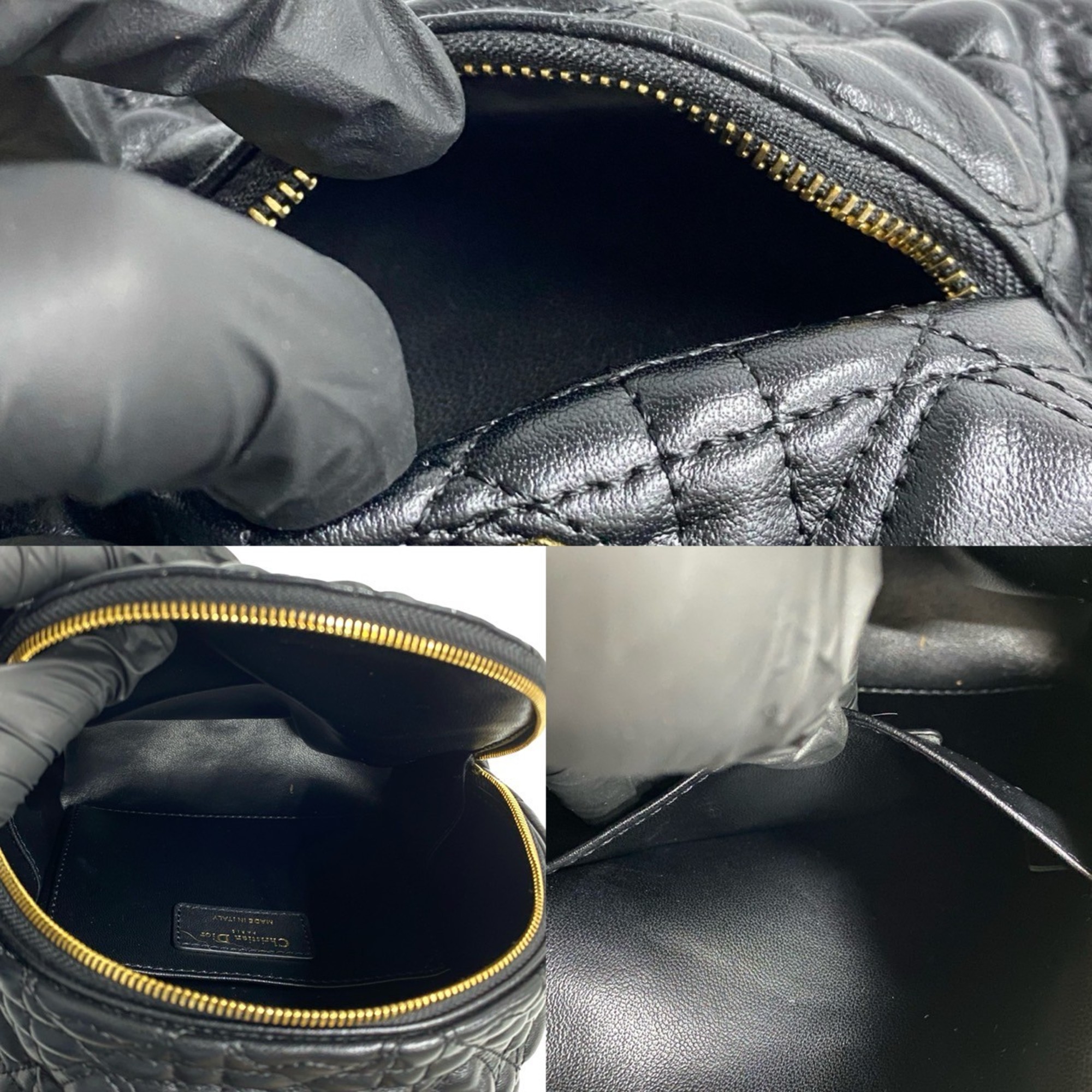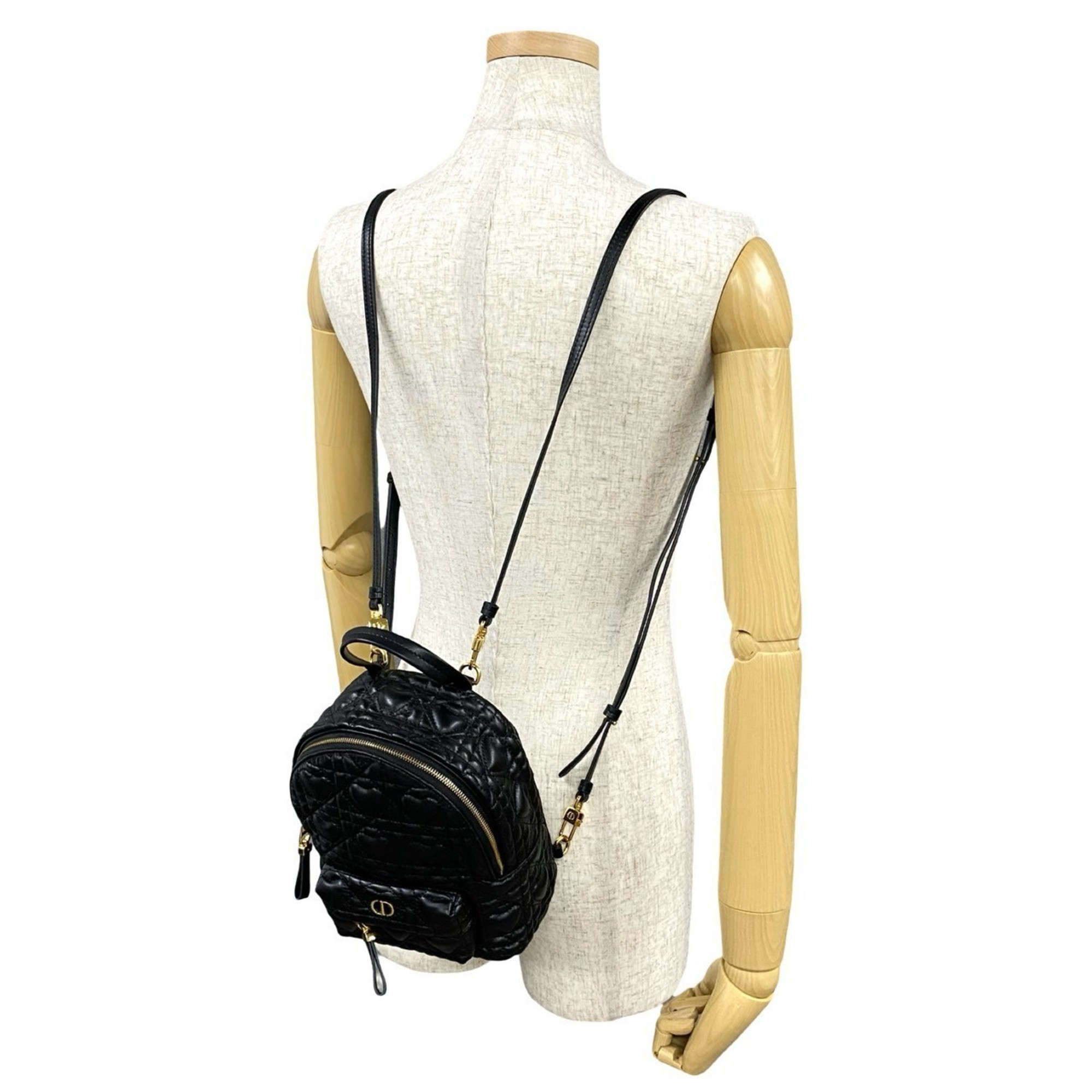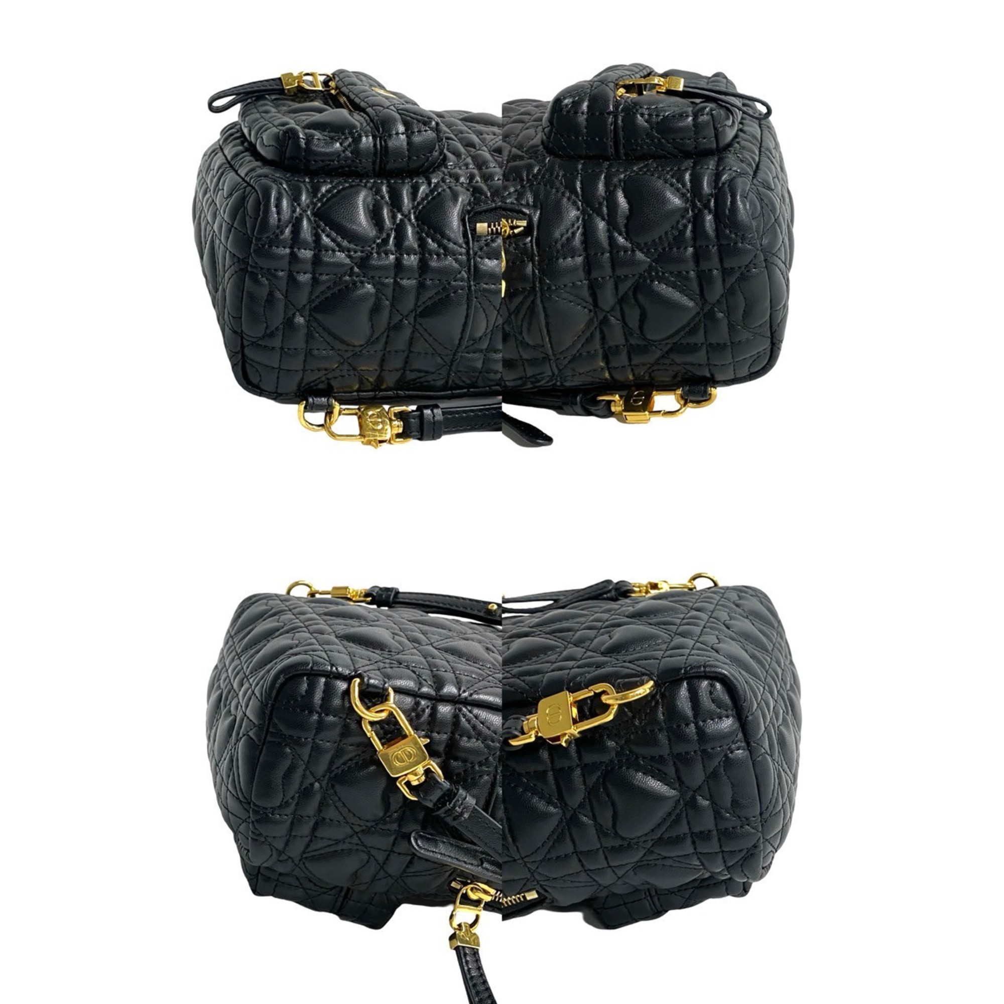 Christian Dior Heart Cannage CD Logo Metal Hardware Leather Backpack Black 03292