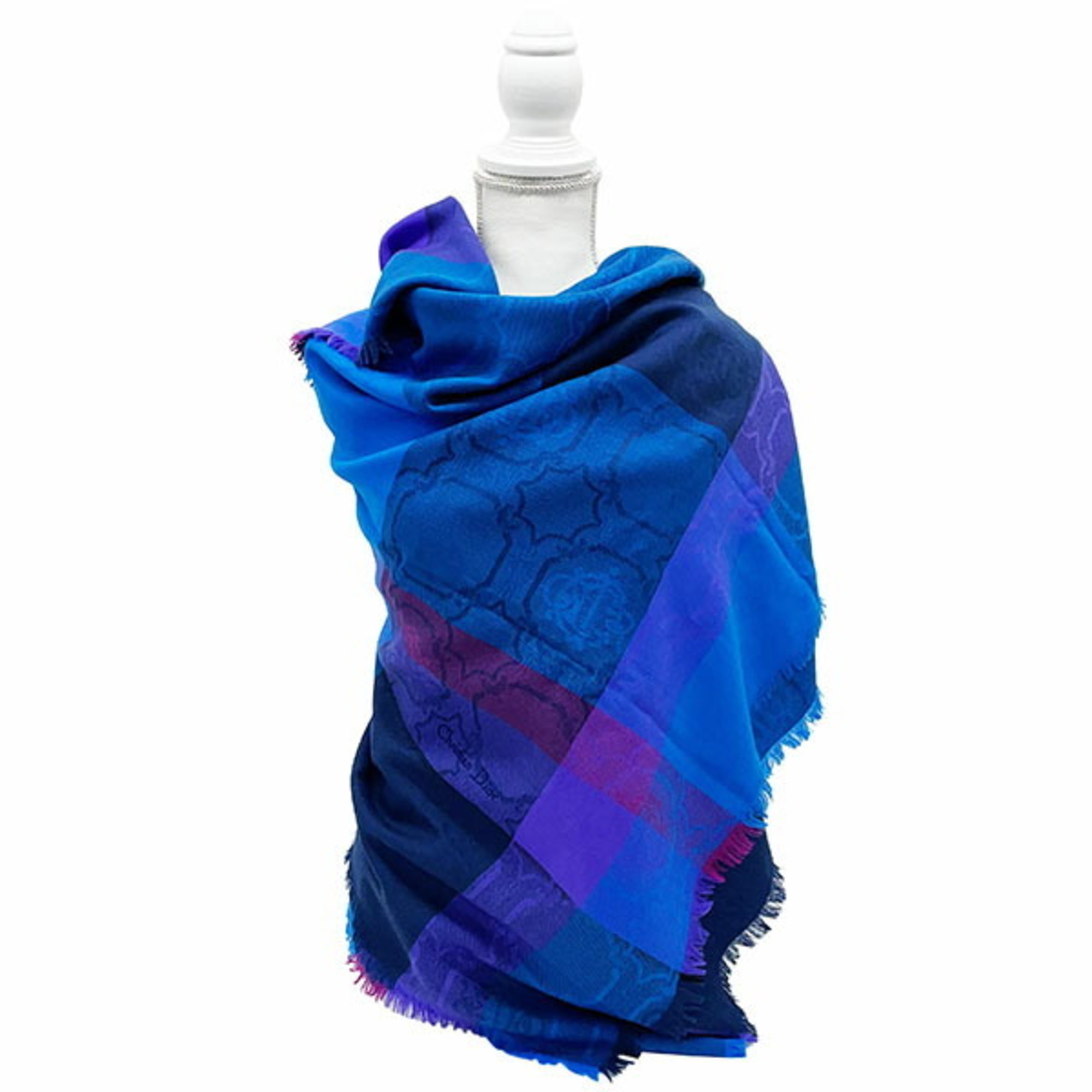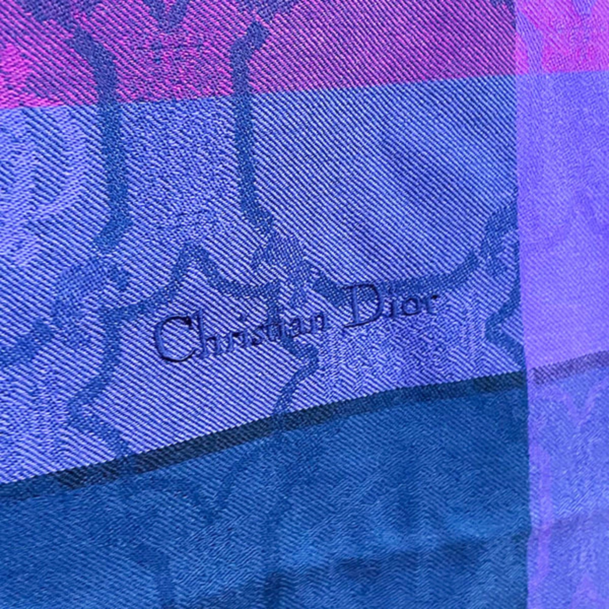 Christian Dior shawl, check, large multi-color, blue, purple, navy, Dior, stole, muffler, scarf, lap blanket, C.Dior YY-11801