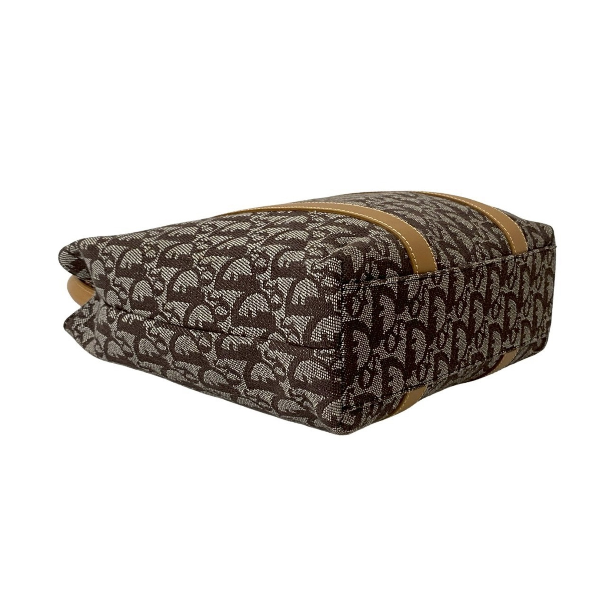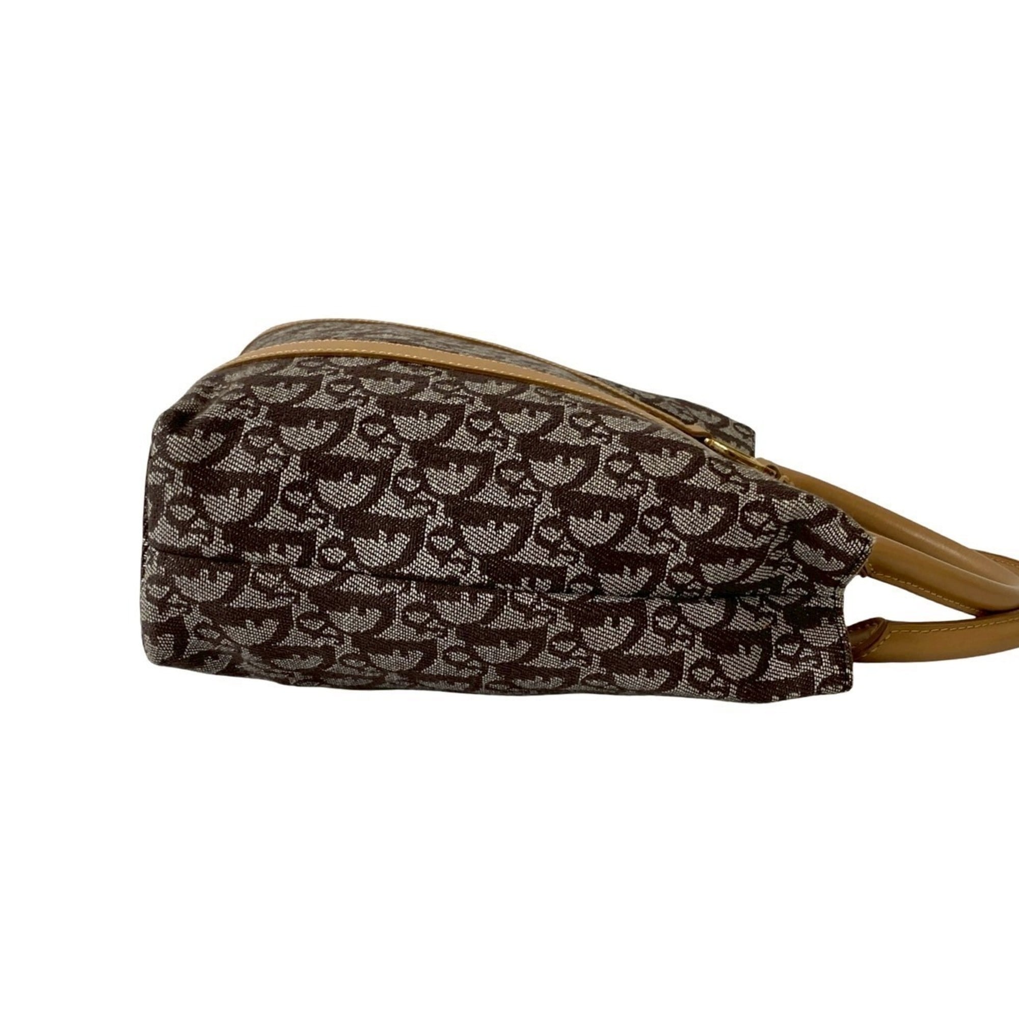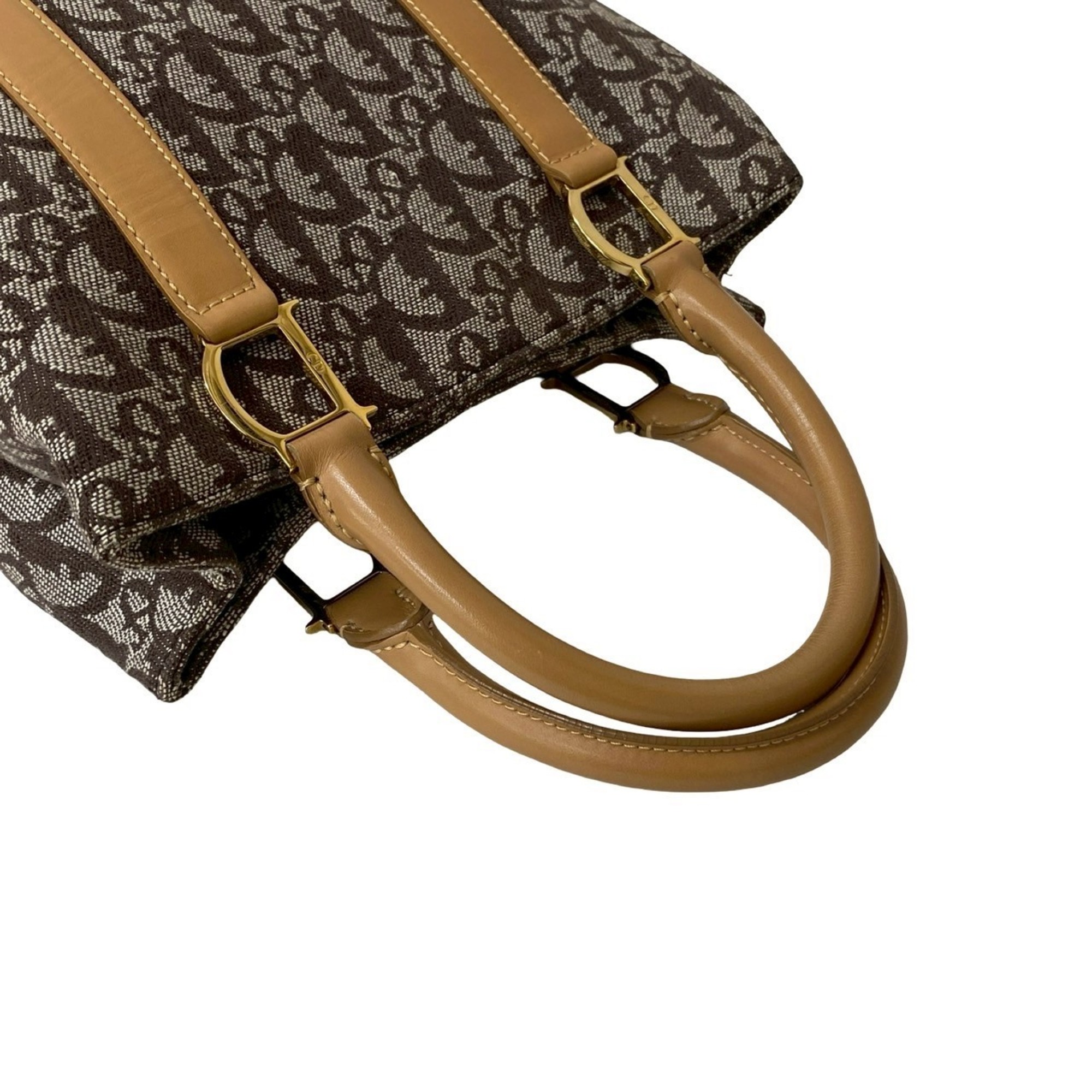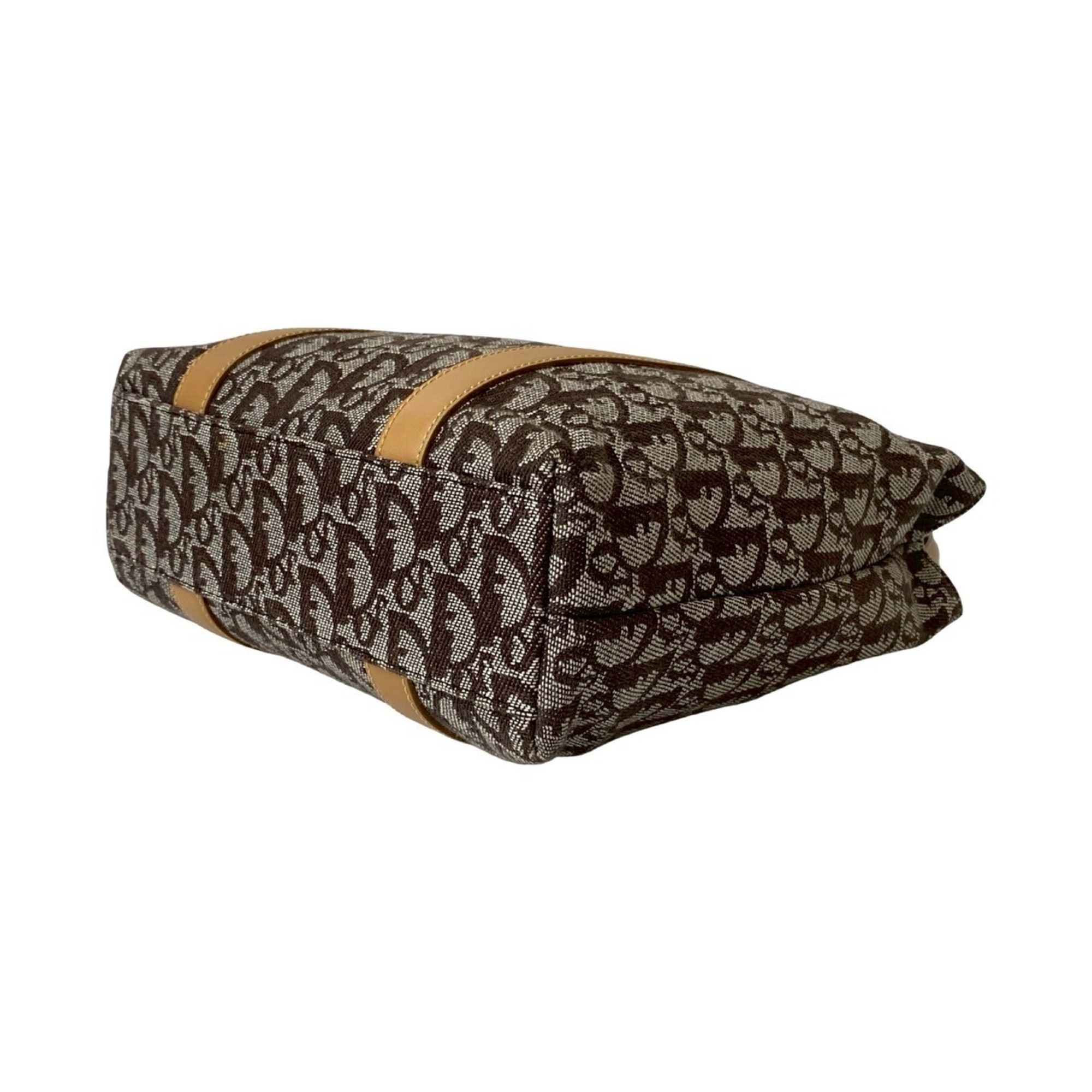 Christian Dior Trotter Pattern Leather Canvas Handbag Brown 29699