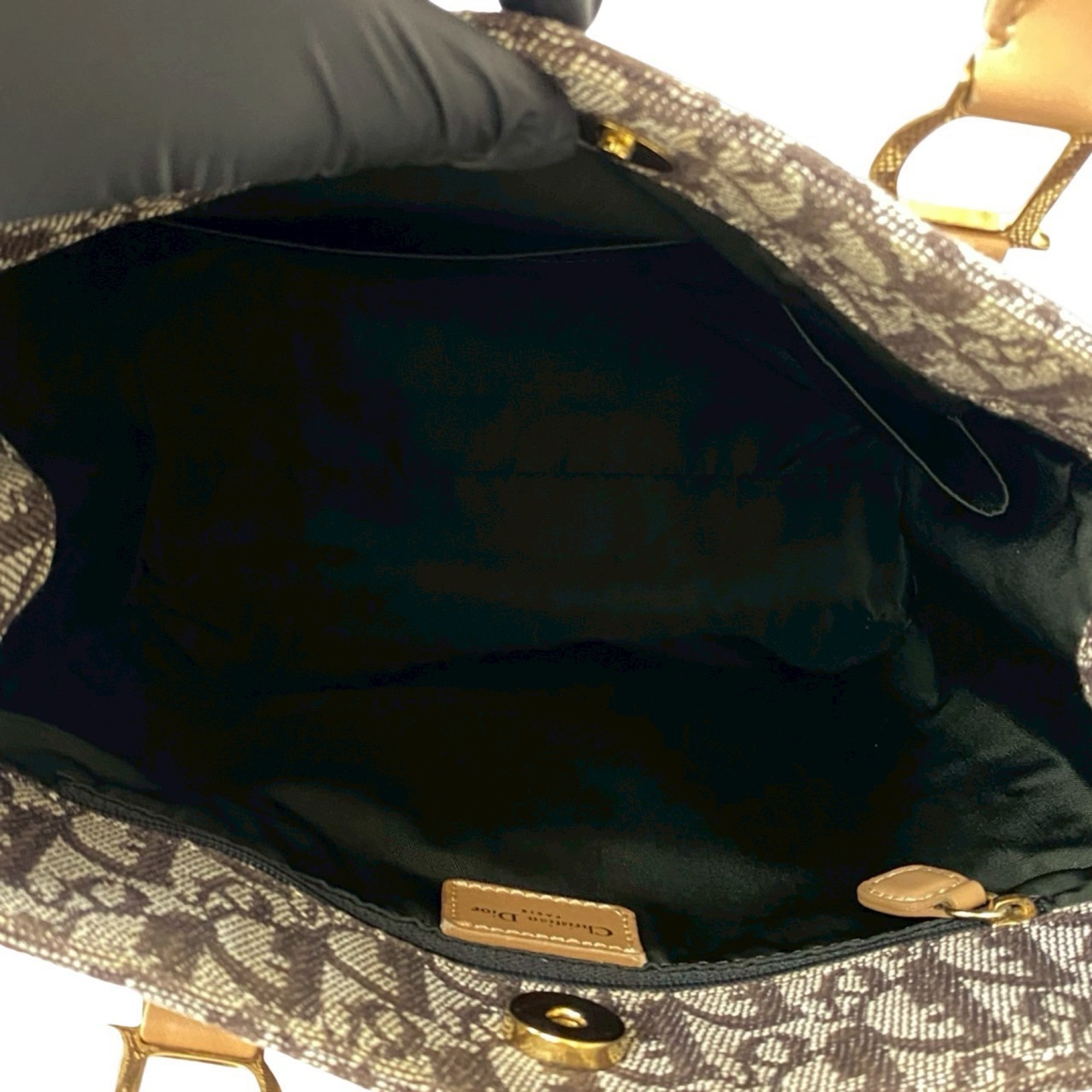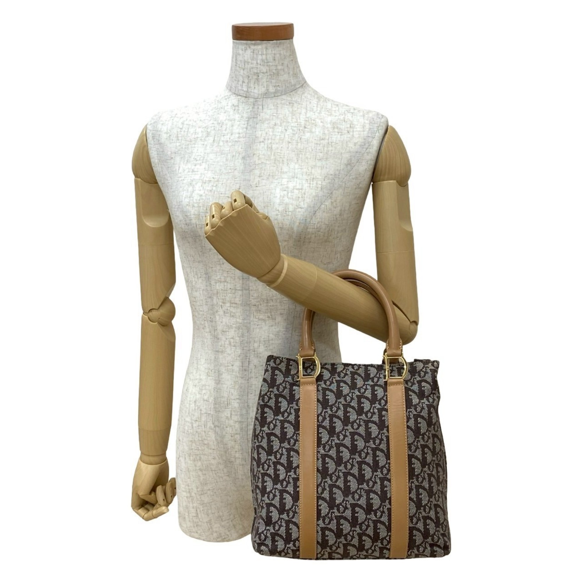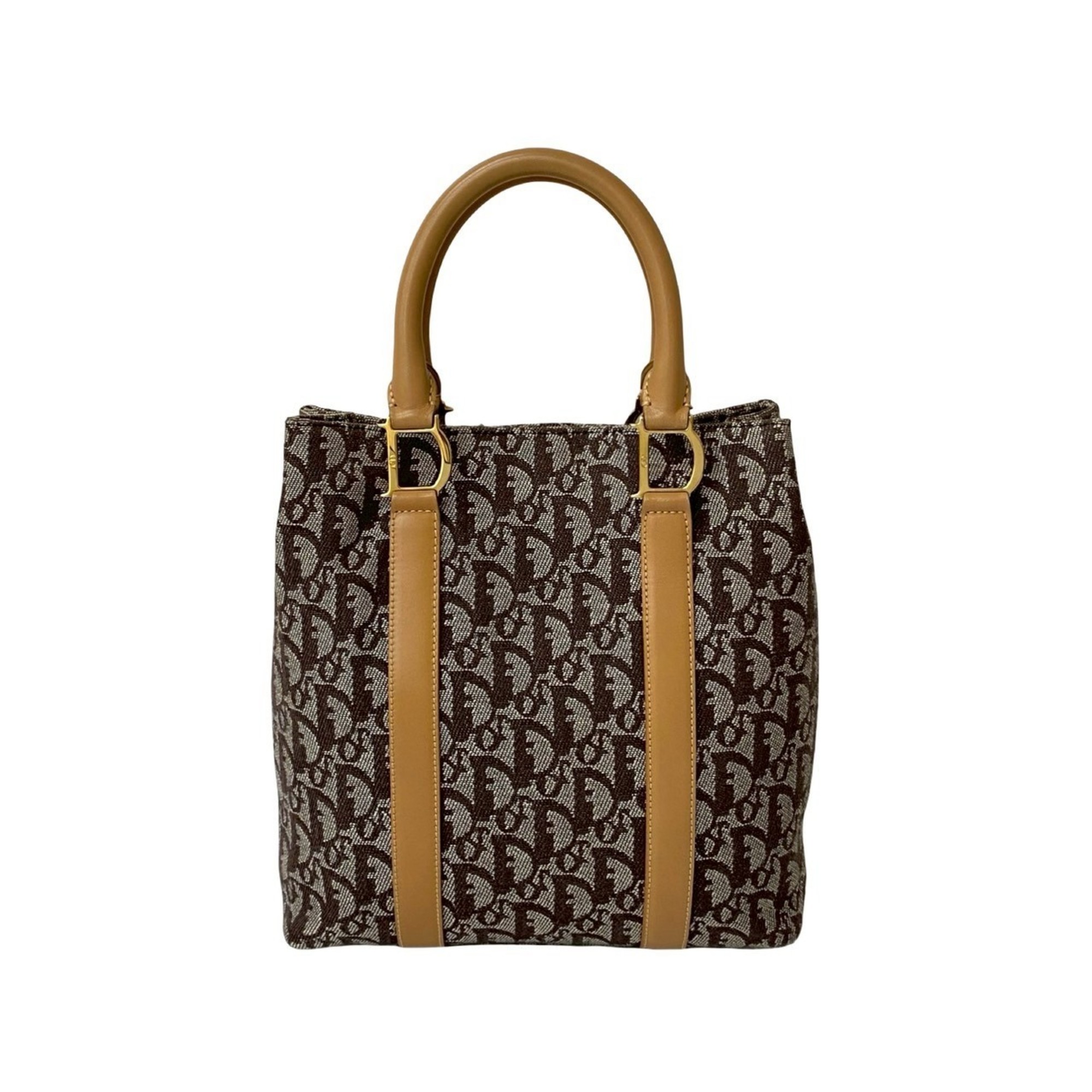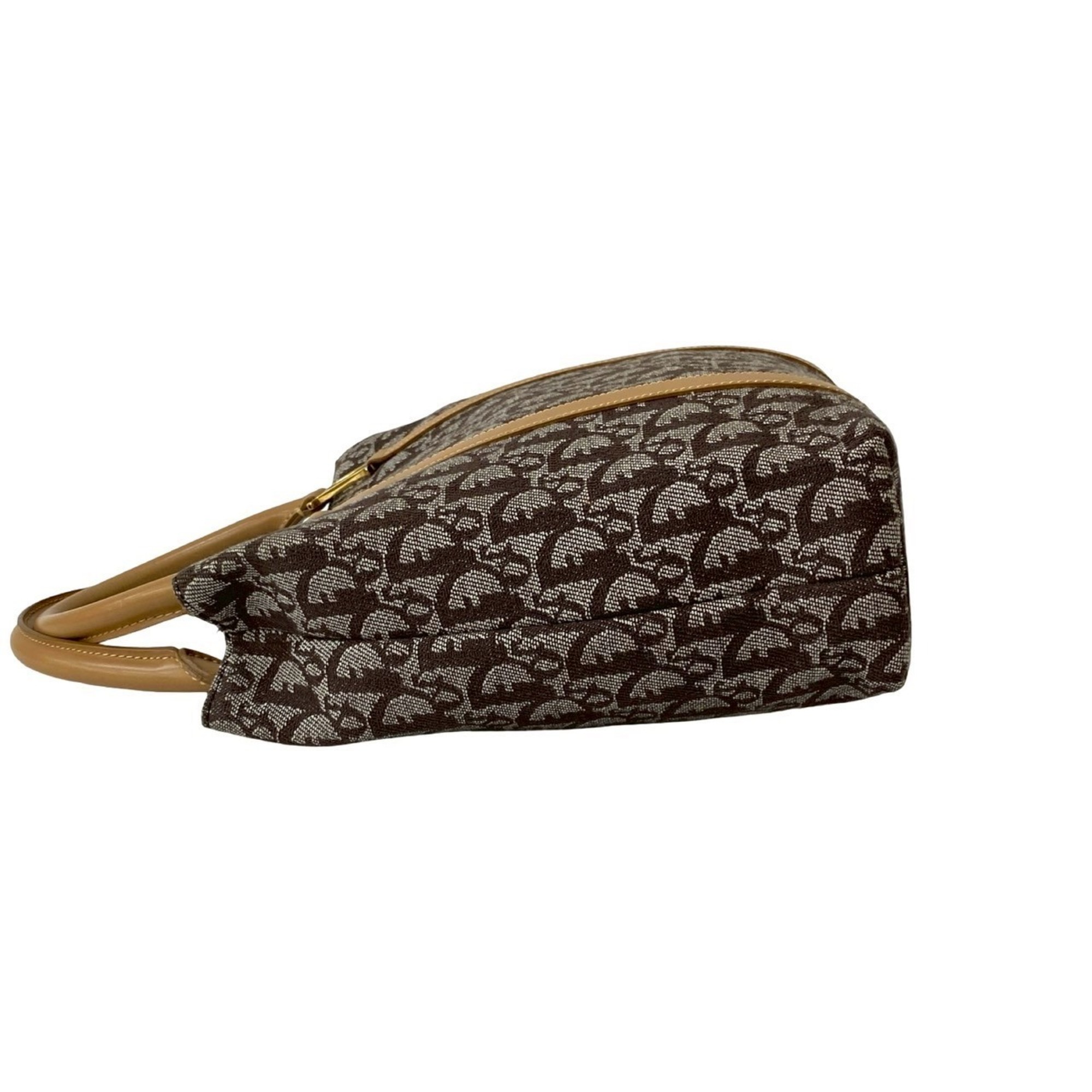 Christian Dior Trotter Pattern Leather Canvas Handbag Brown 29699