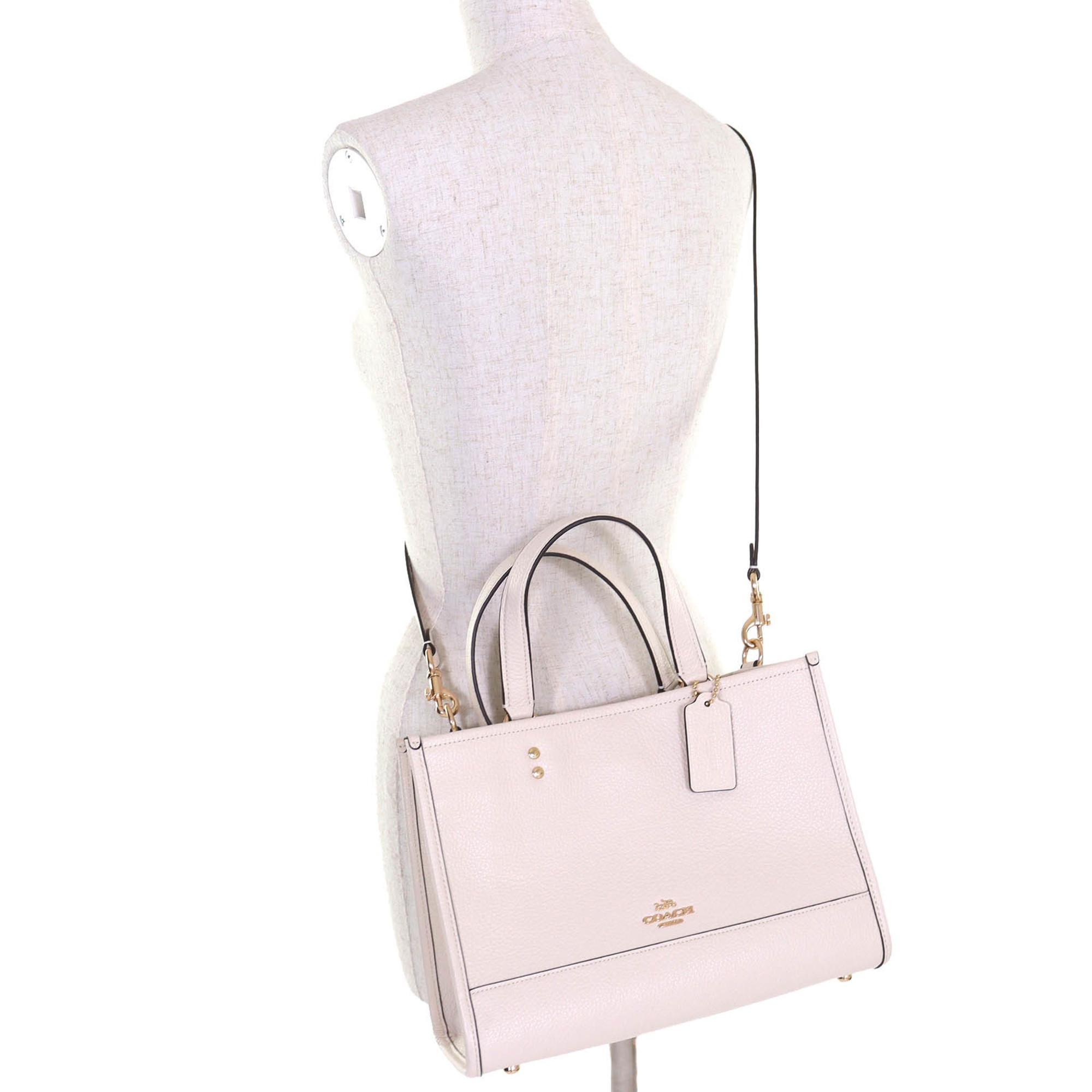 COACH 24AW CO976 Logo Dempsey 2-Way Leather Tote Bag/Shoulder Bag in Chalk Ivory