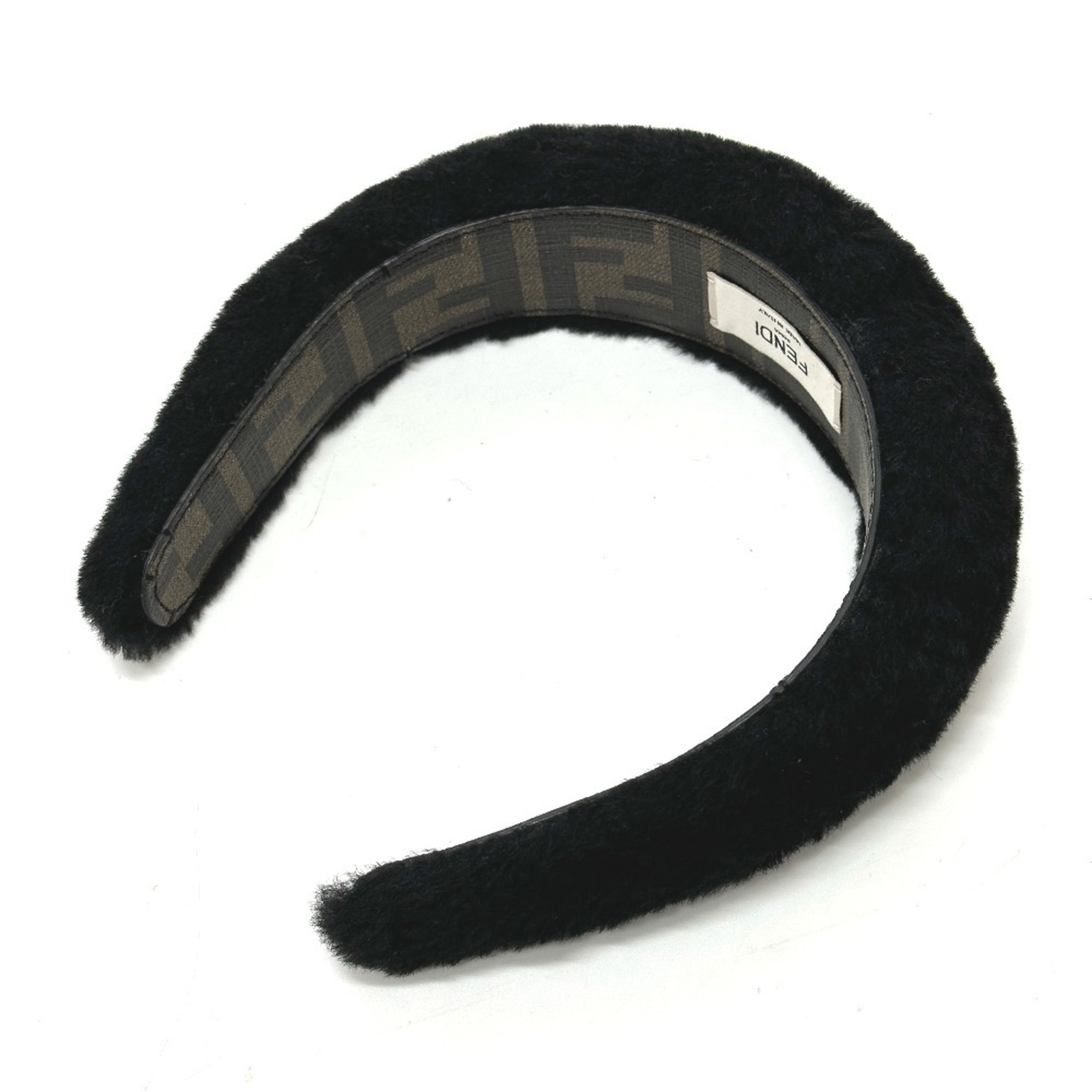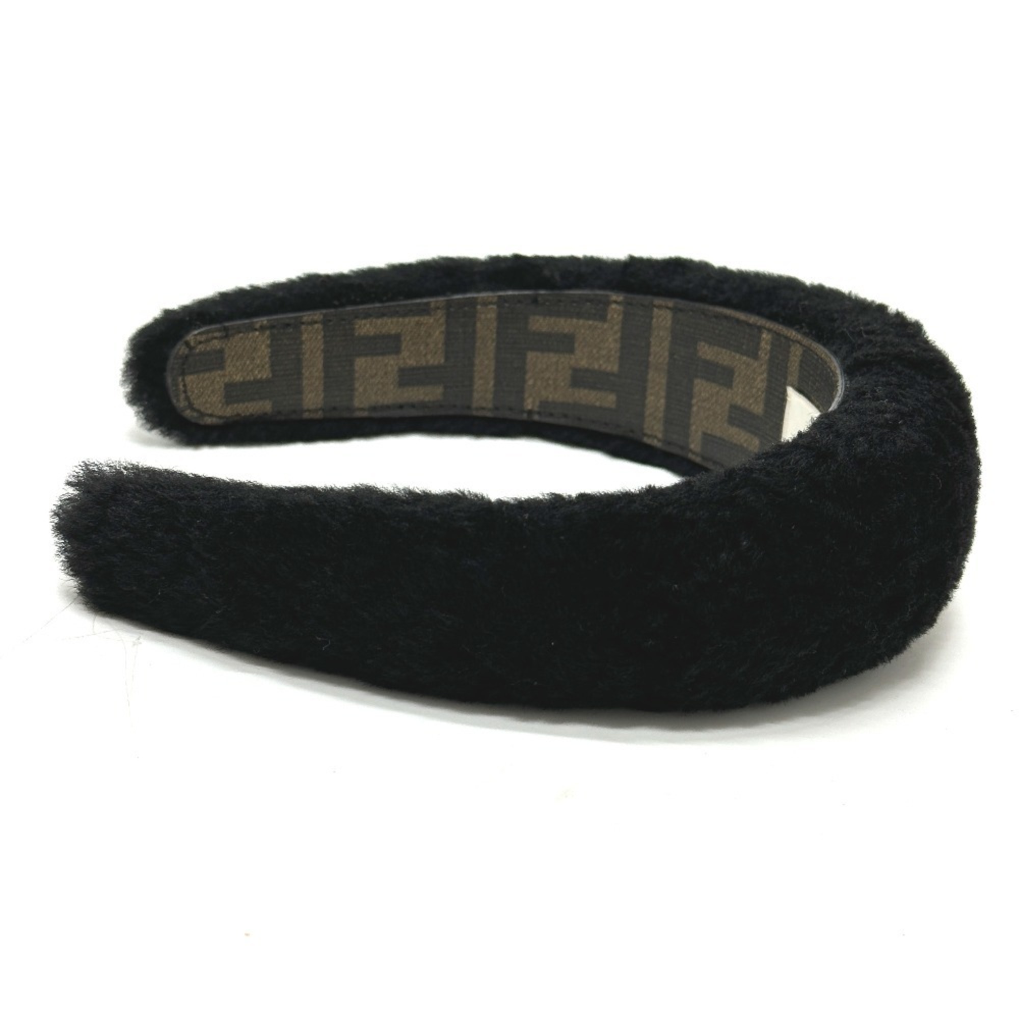 FENDI Fendi Hairband Headband Boa Zucca Hair Accessory Fur Women's Black
