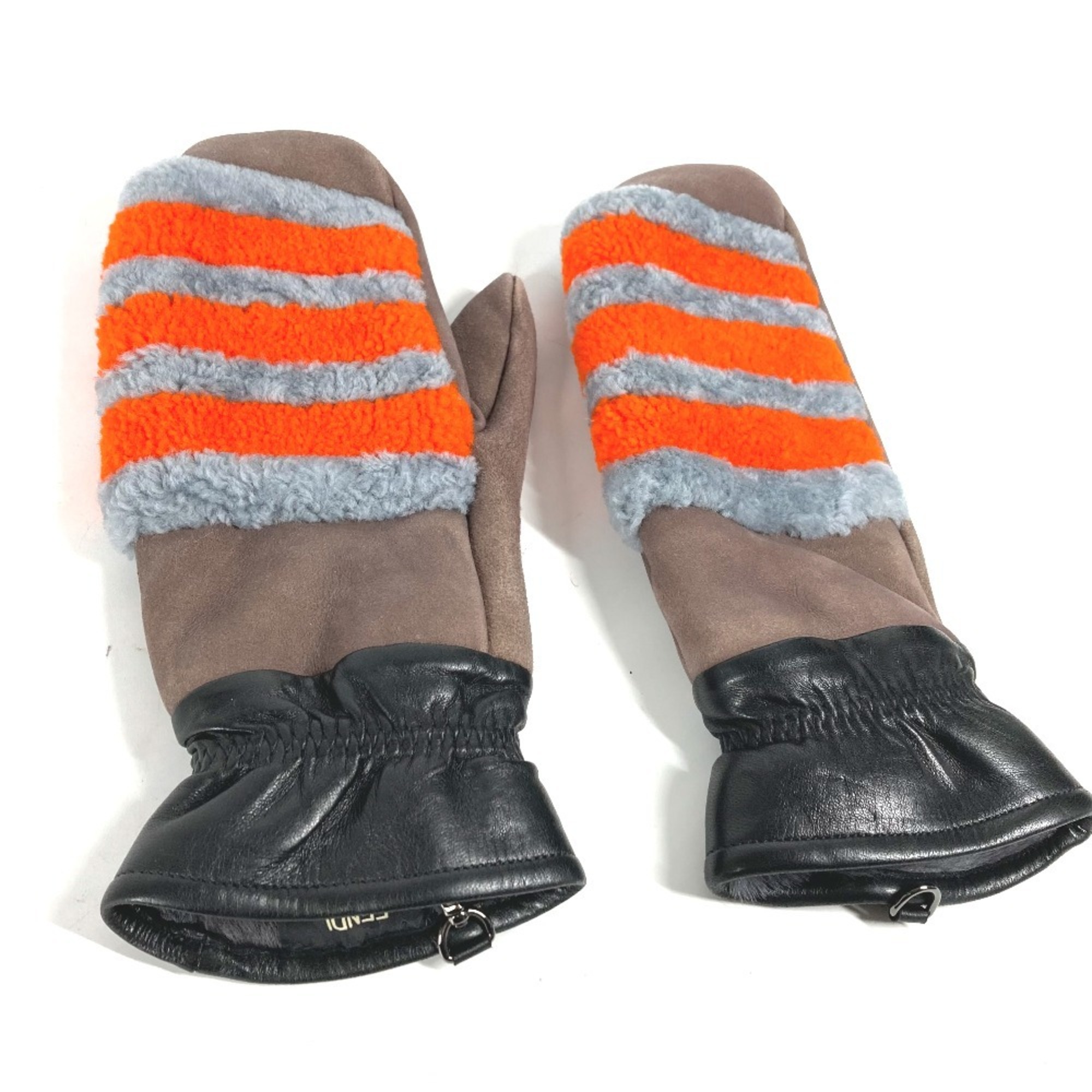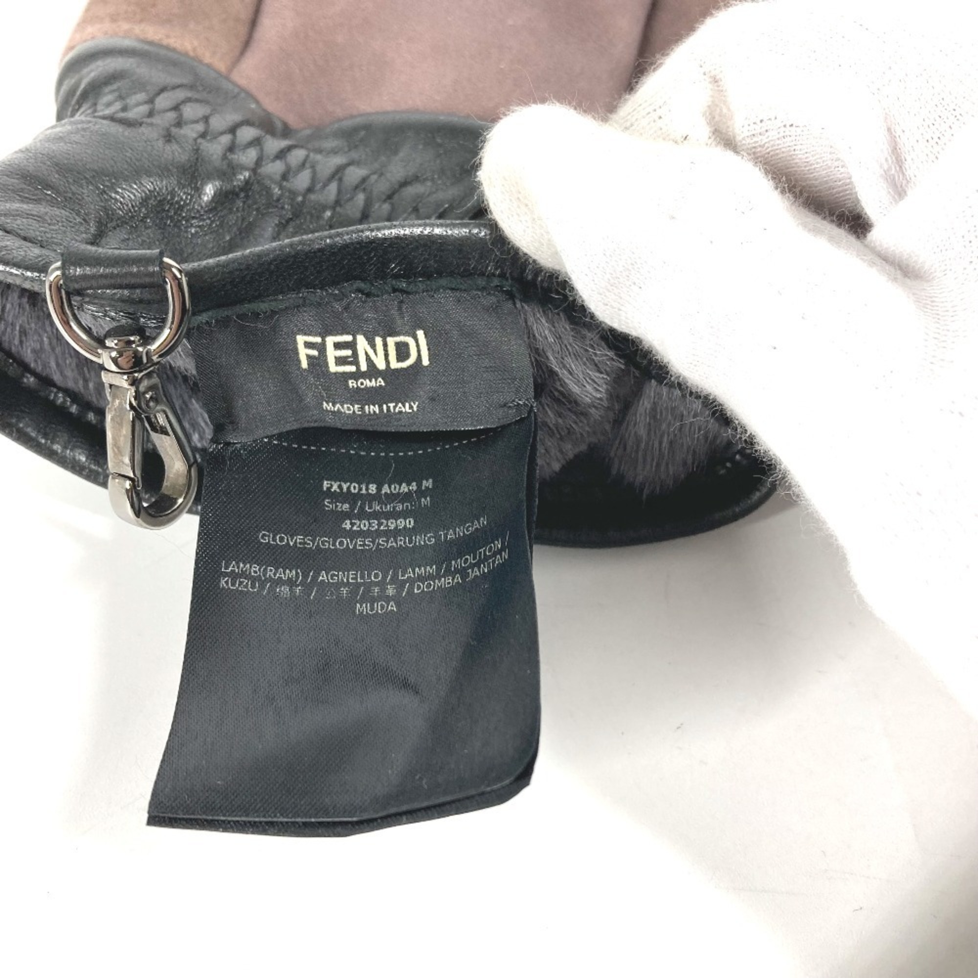 FENDI FXY018 Mouton Gloves Angora Women's Grey