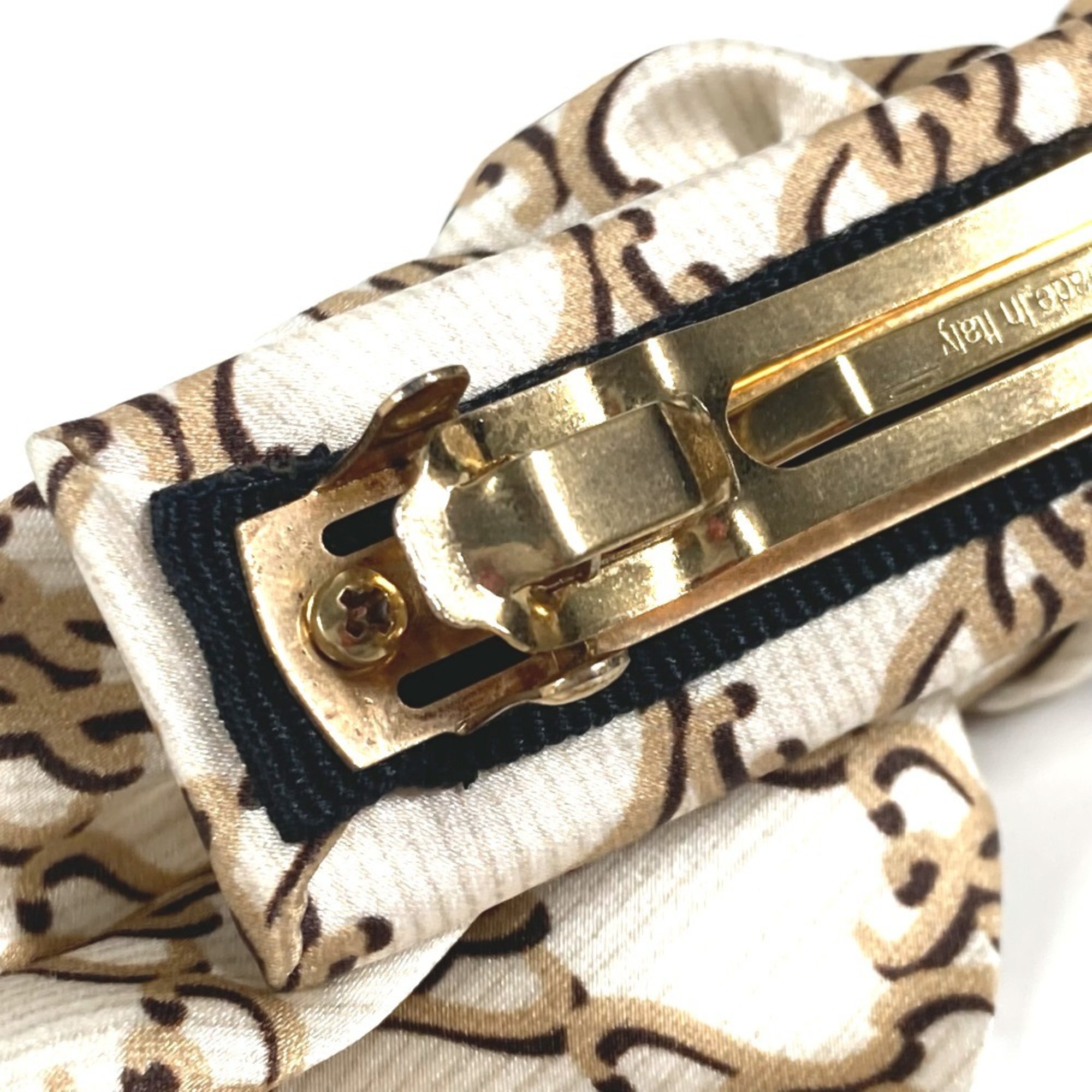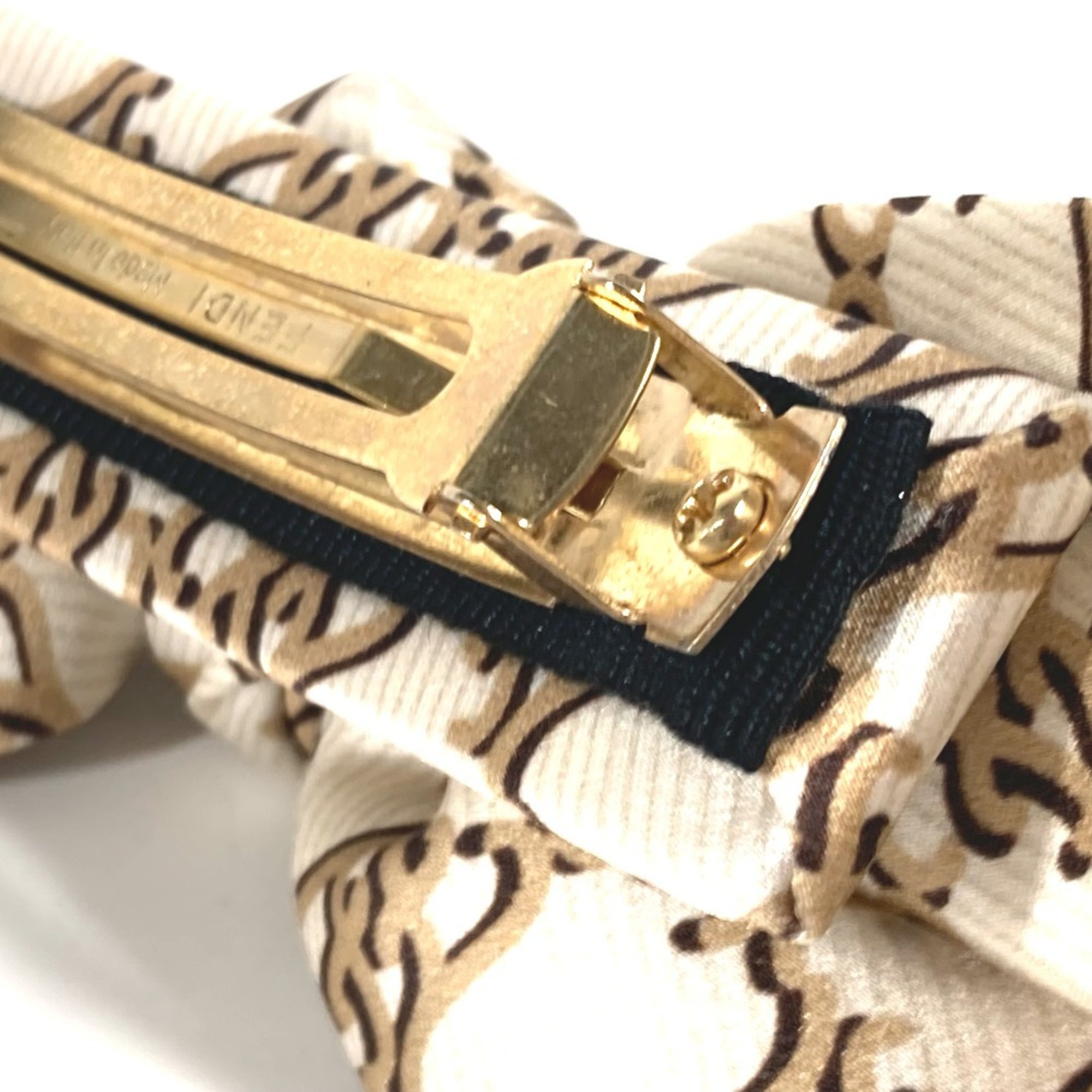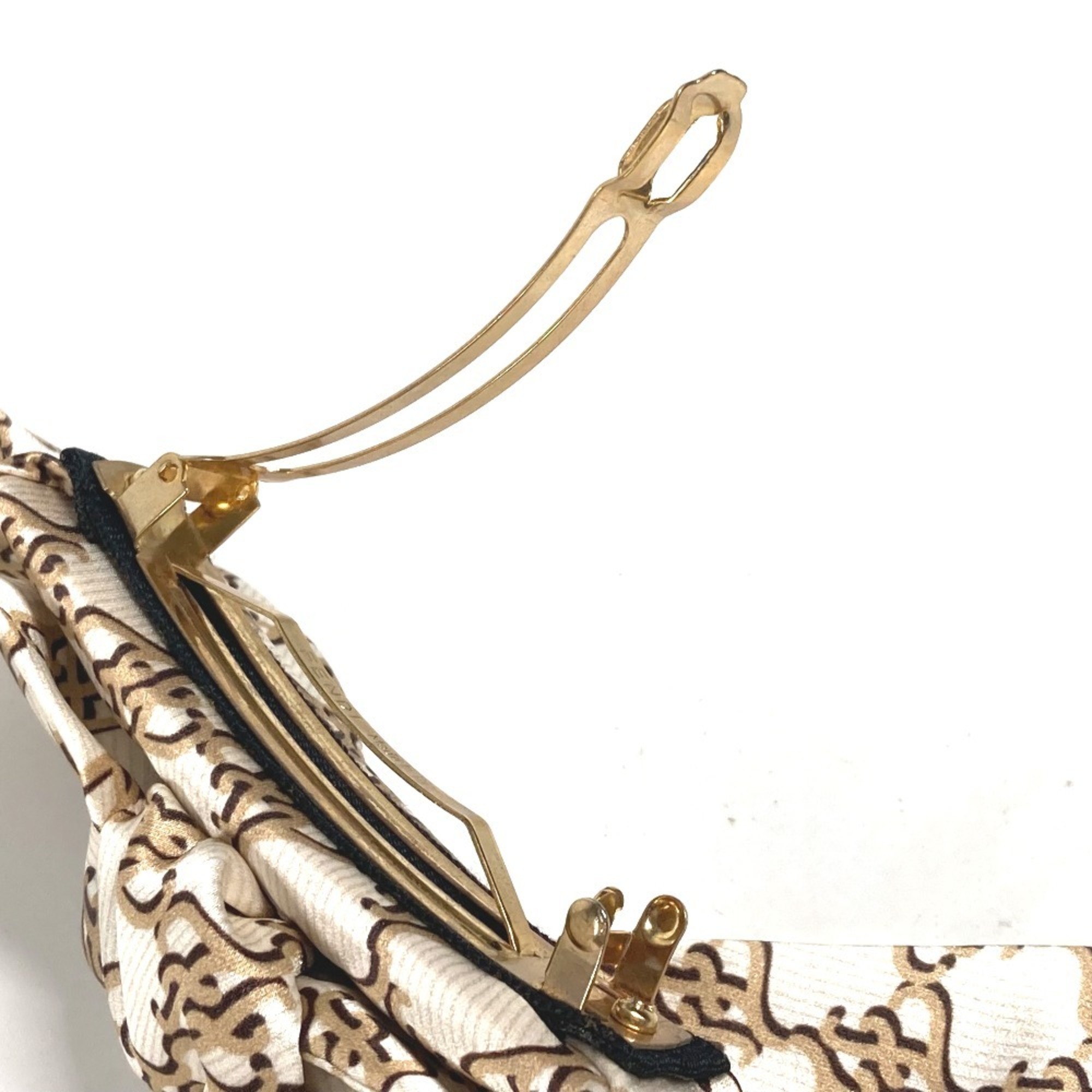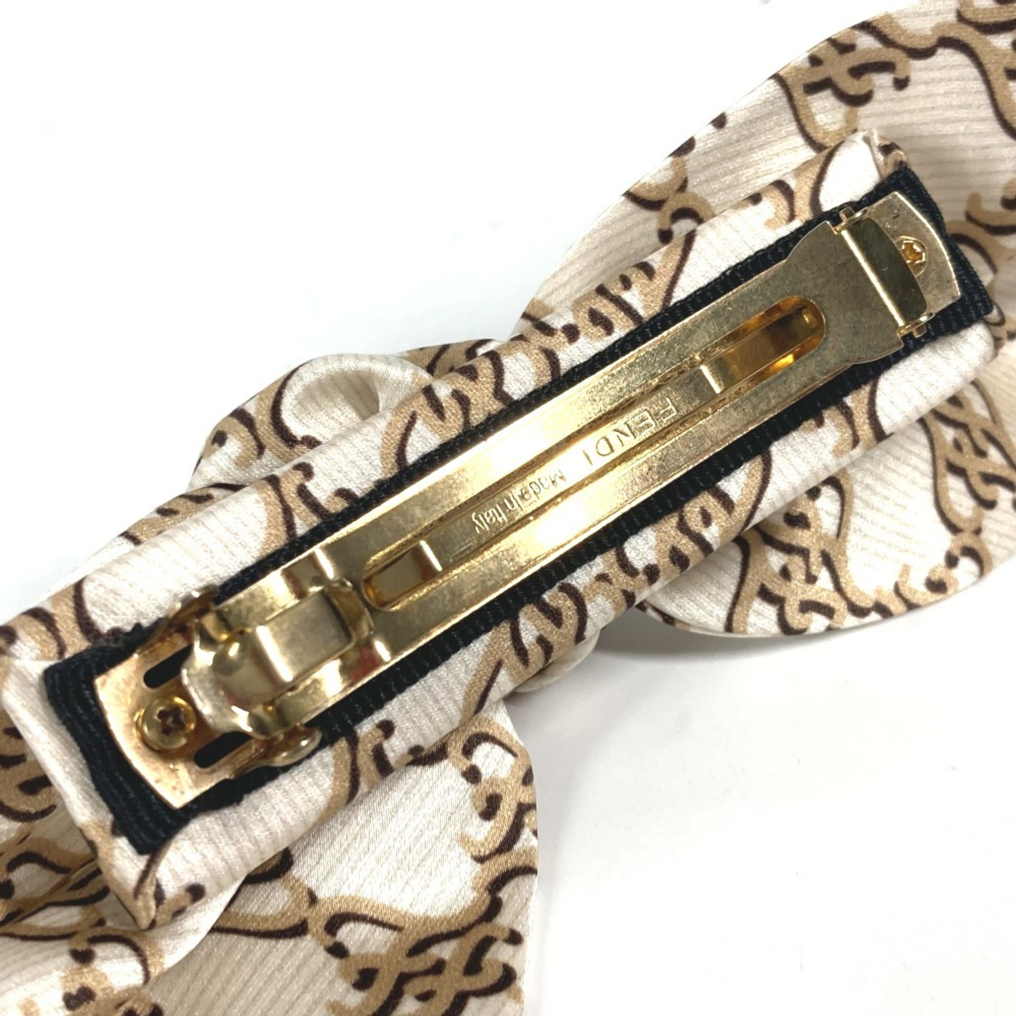 FENDI Ribbon Hair Hairpin Barrette Silk Women's Beige
