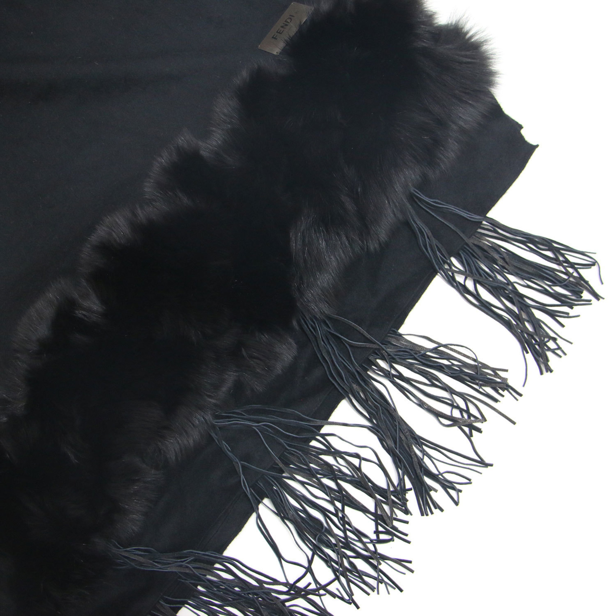 FENDI Stole Black Size:TU Fox Fur Wool Angora Scarf Women's