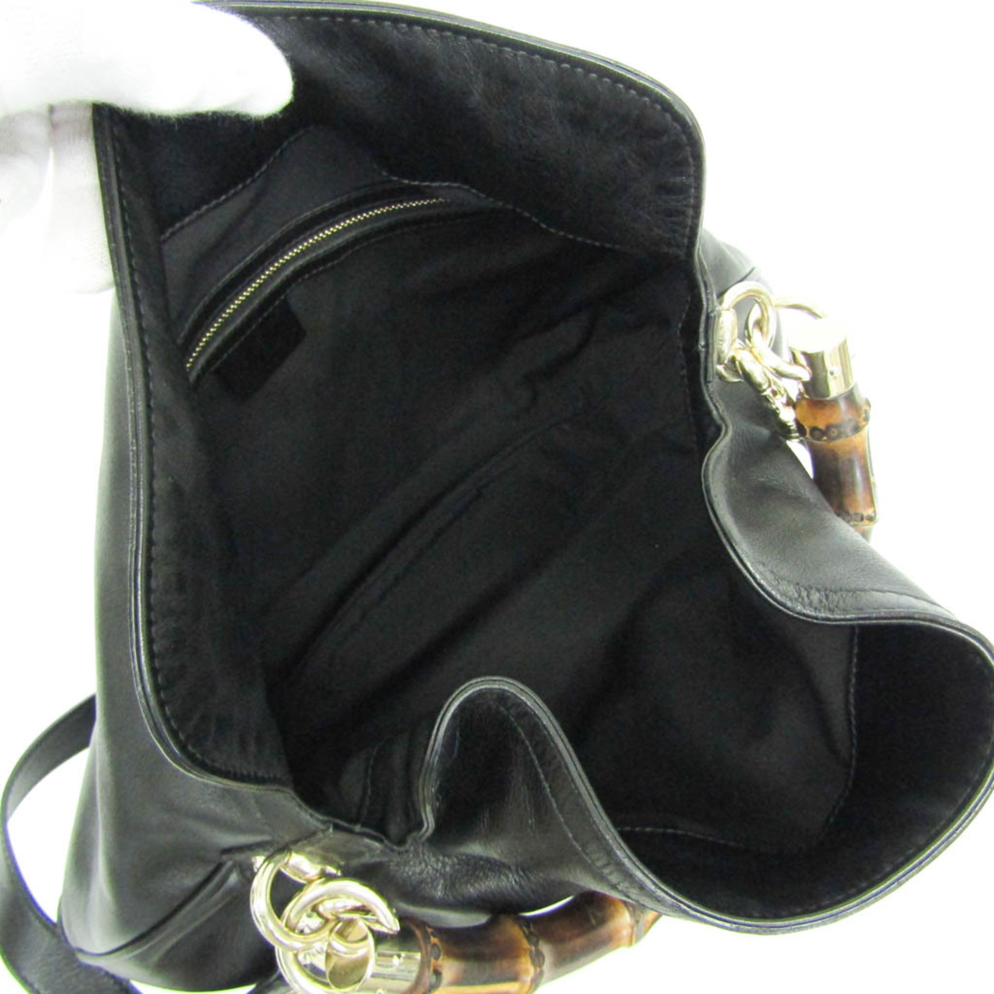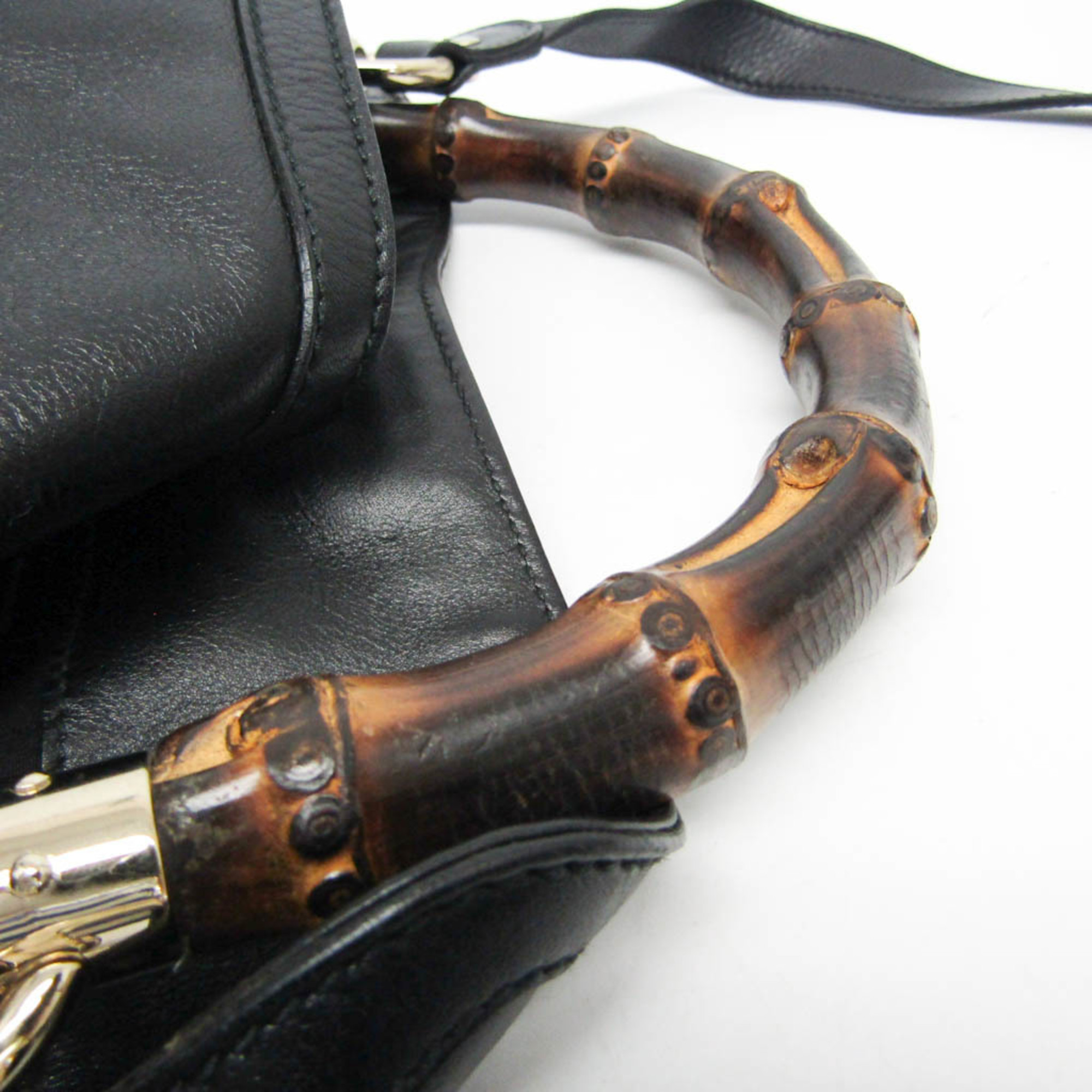 Gucci Bamboo 169961 Women's Leather,Bamboo Handbag,Shoulder Bag Black