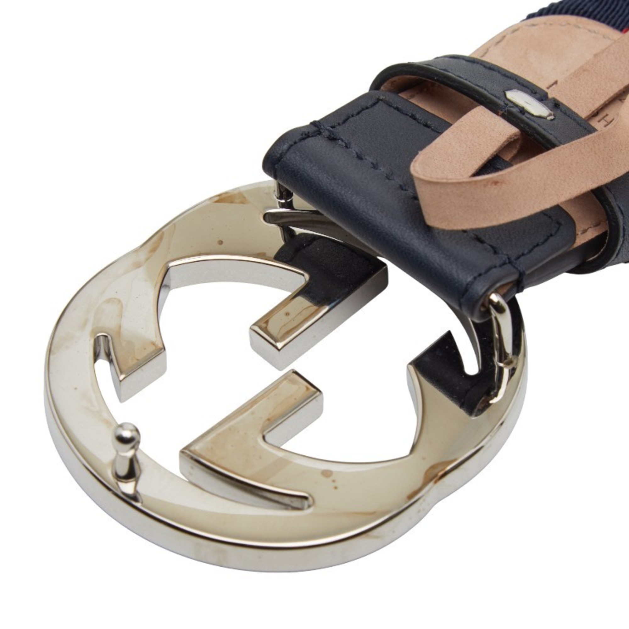Gucci Belt Size: 75 30 411924 Navy Red Canvas Leather Women's GUCCI