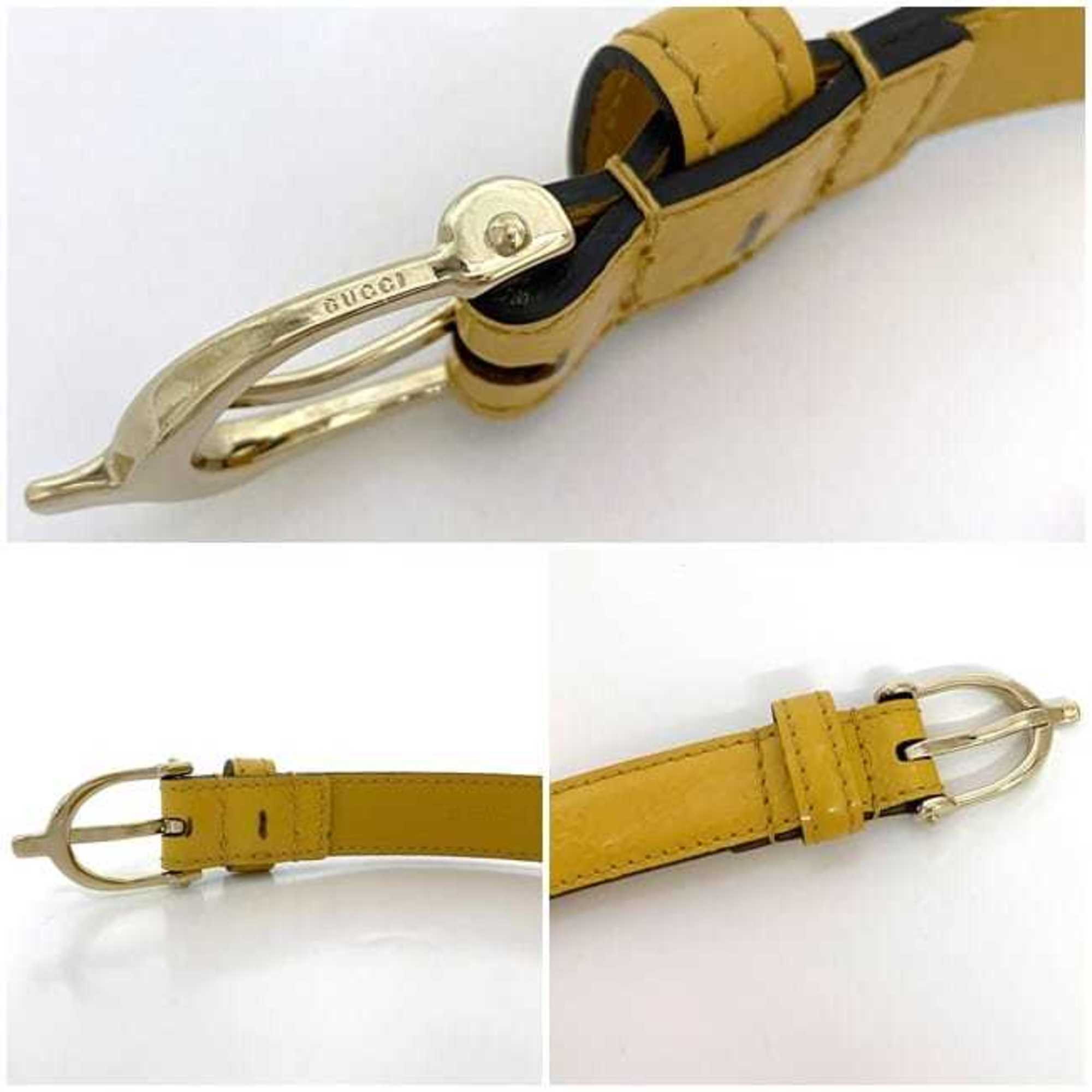Gucci Belt Yellow Striped Line 309900 ec-20326 Thin Waist Leather GUCCI 20mm GG Women's