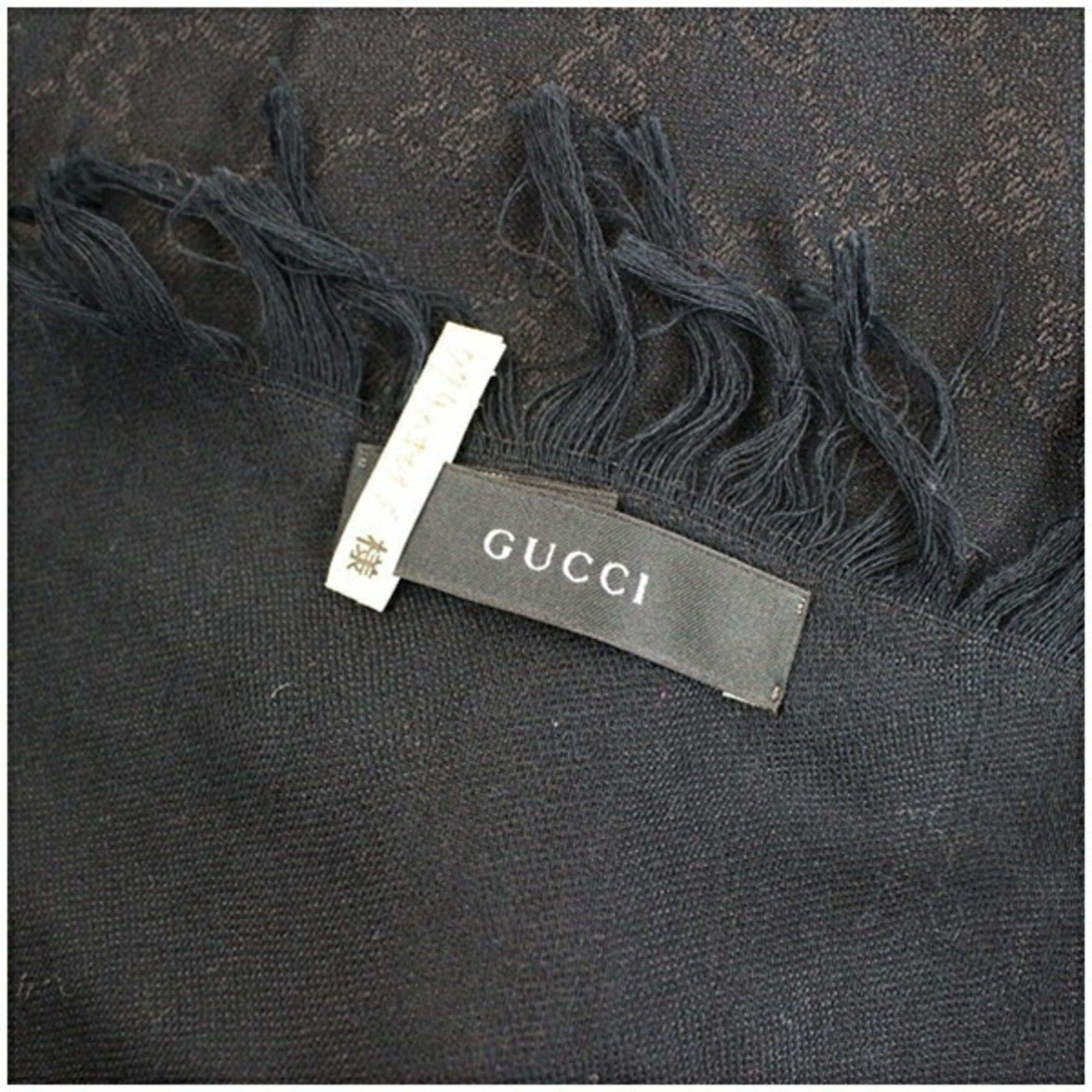 Gucci Cotton Silk Large Scarf Black GG Pattern GUCCI Women's