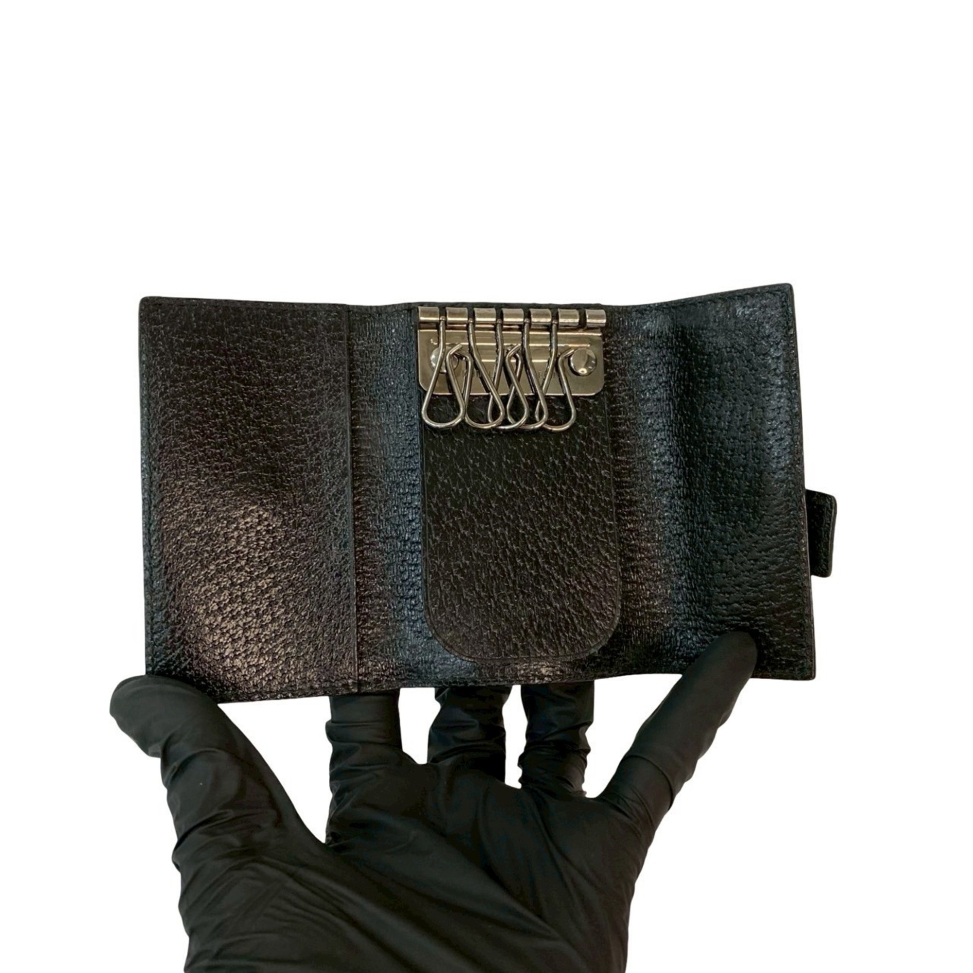 Be the first to review “GUCCI G logo engraved leather and nylon tri-fold key case with holder, black, 34966”