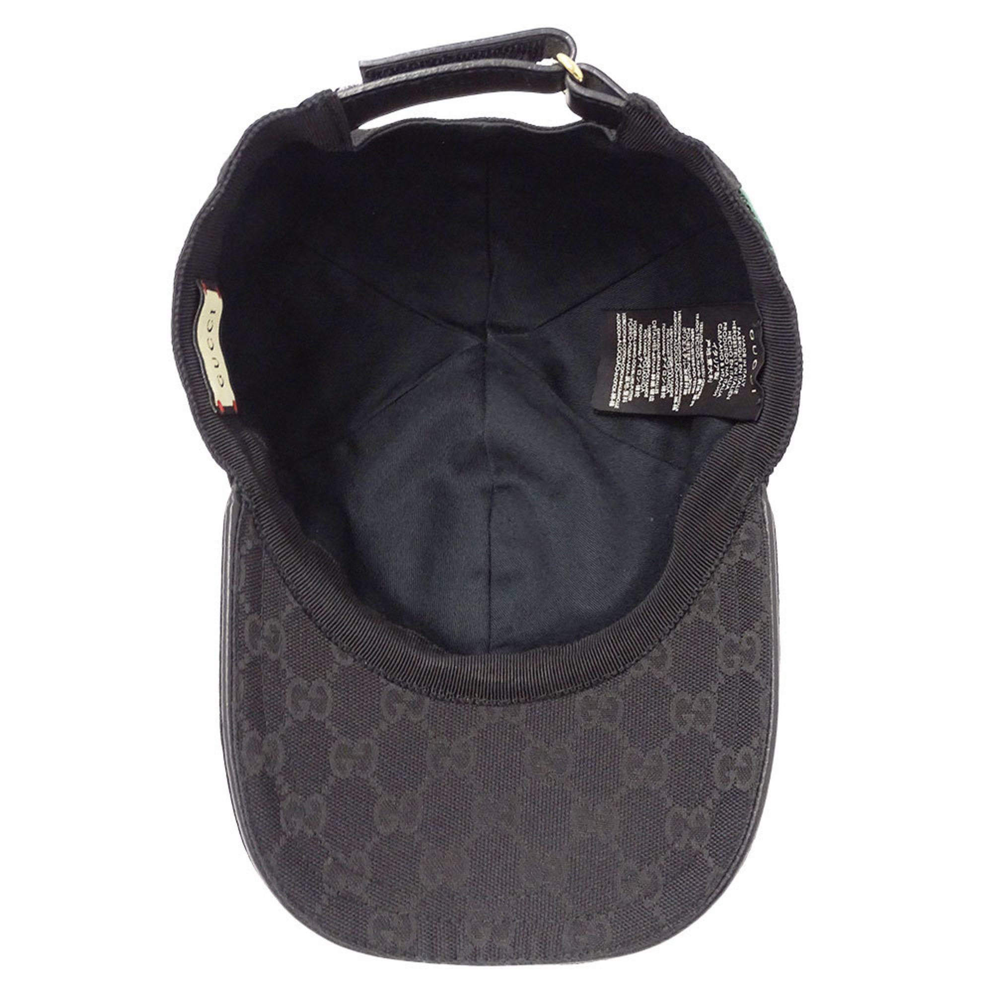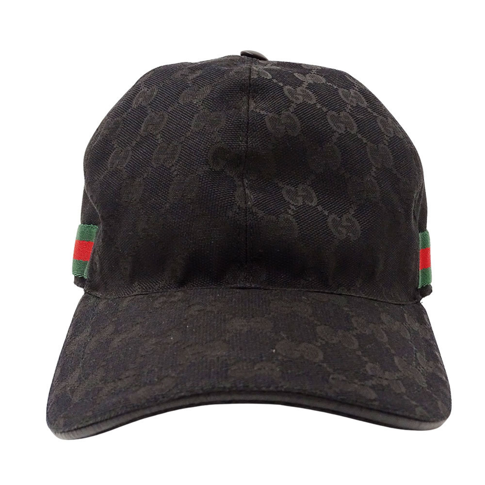 Gucci GG Canvas Baseball Cap with Web Stripe, Black, Size L (200035), 59cm, for Men and Women.