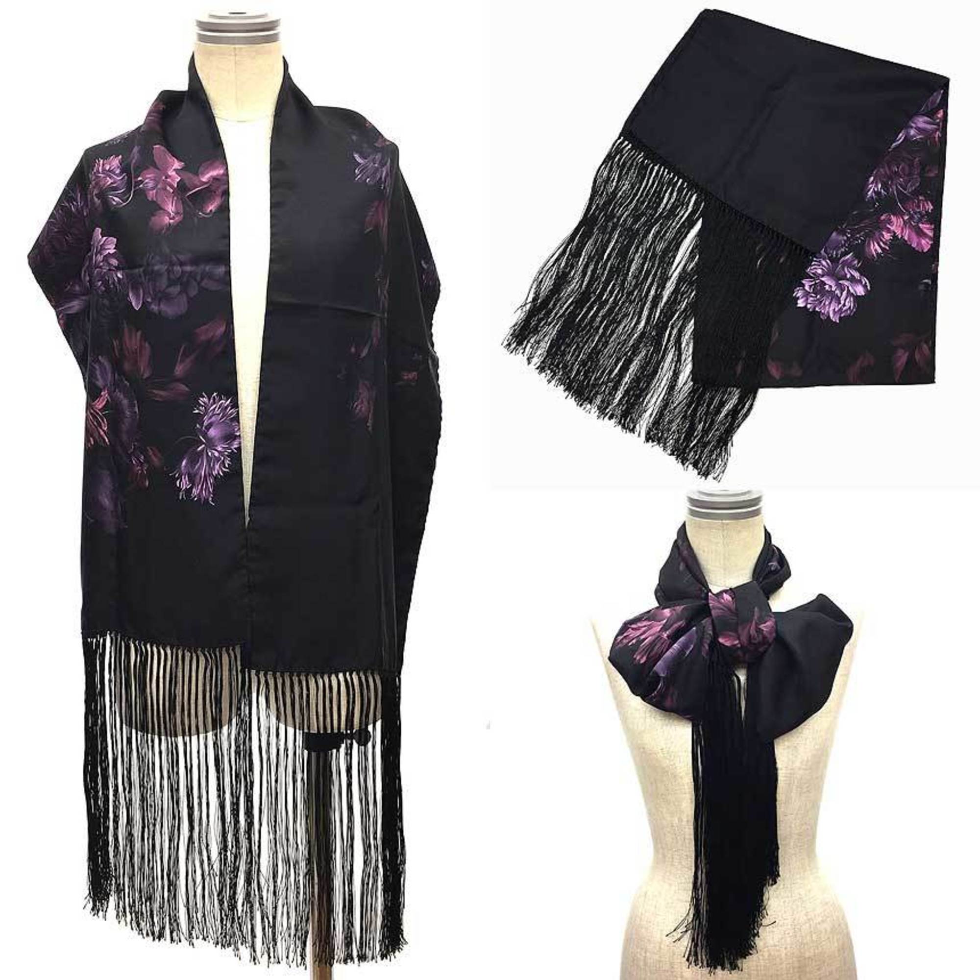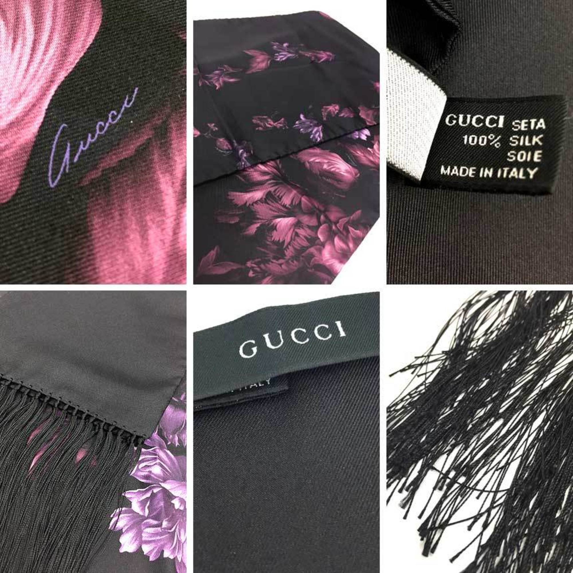 GUCCI Gucci Silk Stole Black x Purple Flower Women's Scarf Muffler