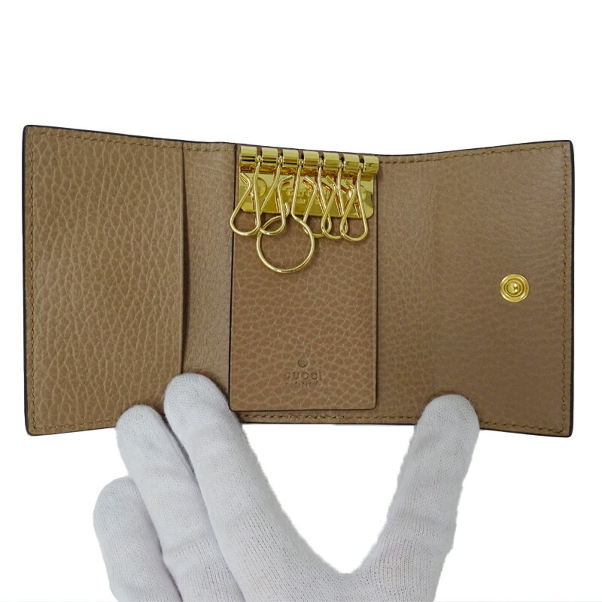 GUCCI Key Case for Women GG Marmont Leather Supreme Canvas Double G Bicolor Dusty Pink 456118 Plus Petit