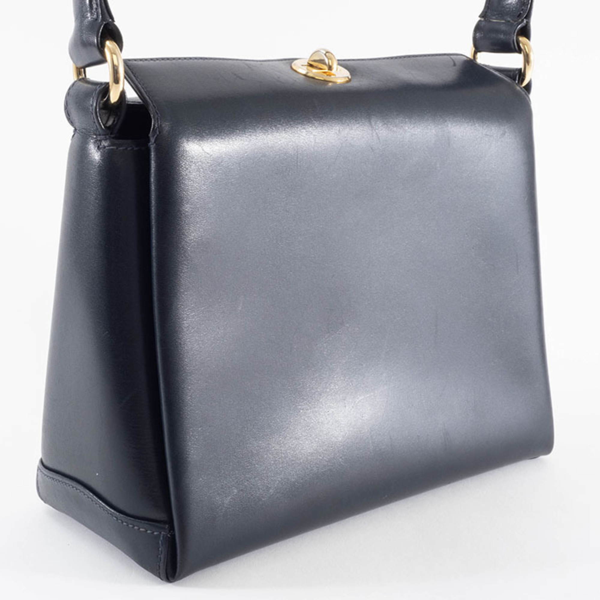 Gucci Old Turnlock Handbag Leather Black Women's 3-Compartment GUCCI