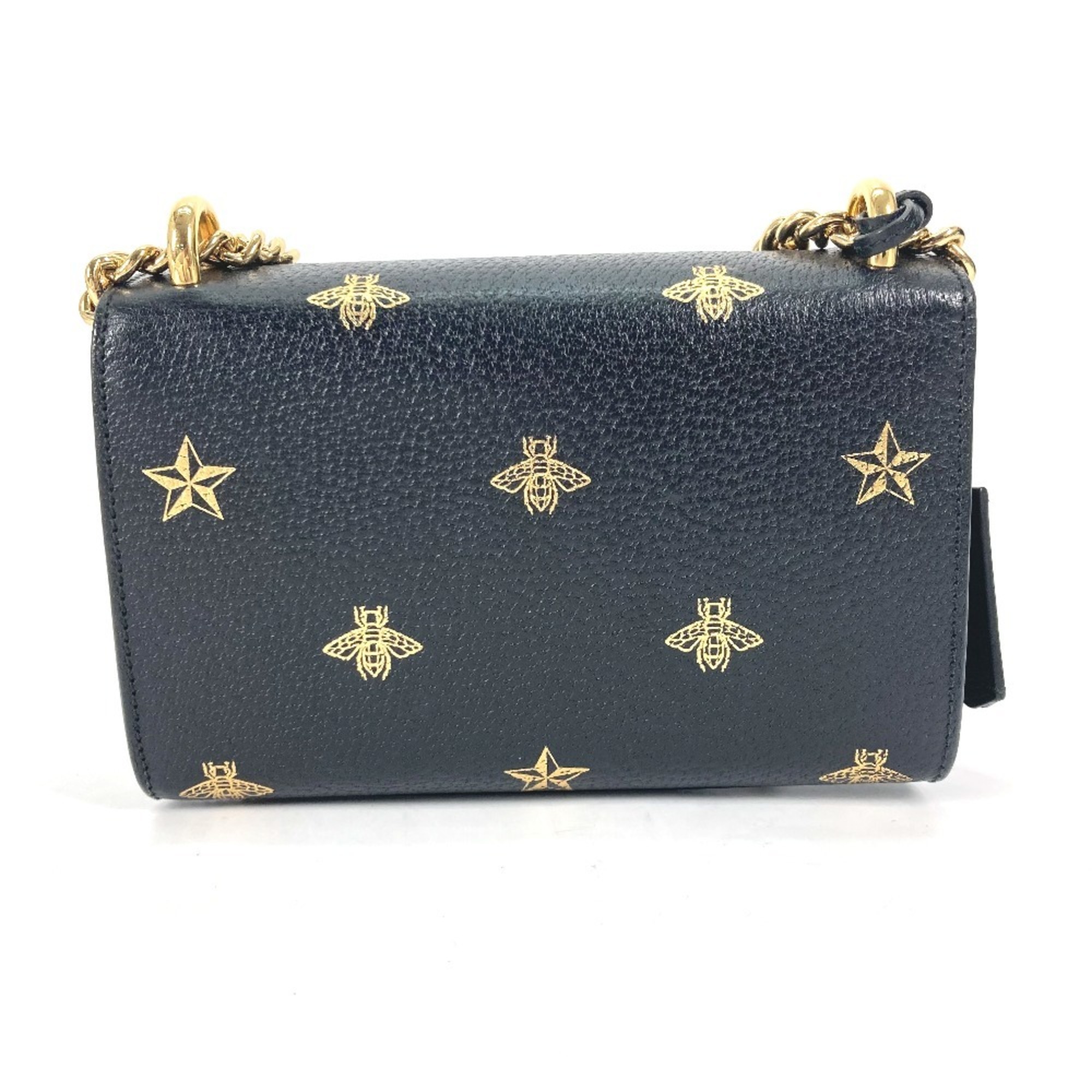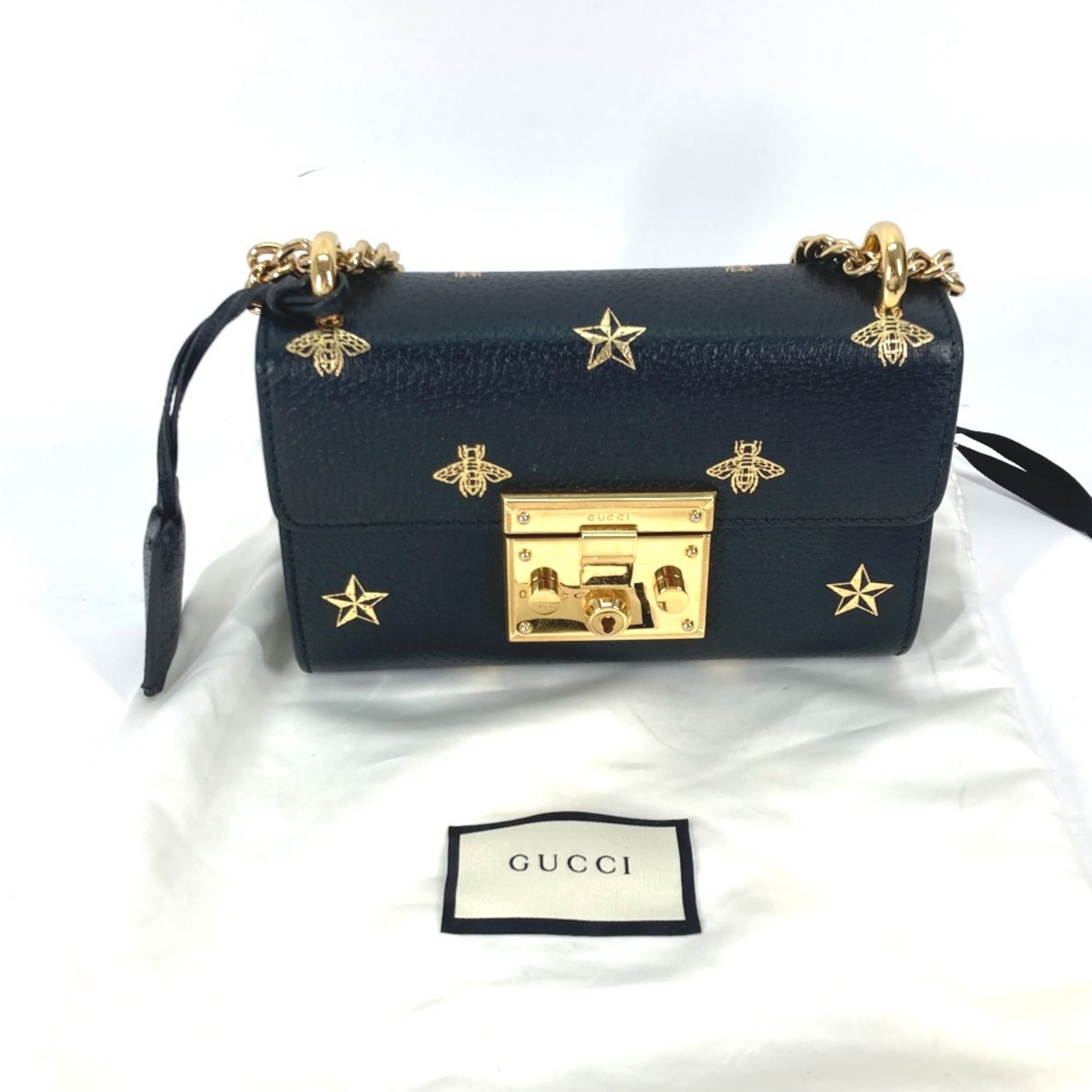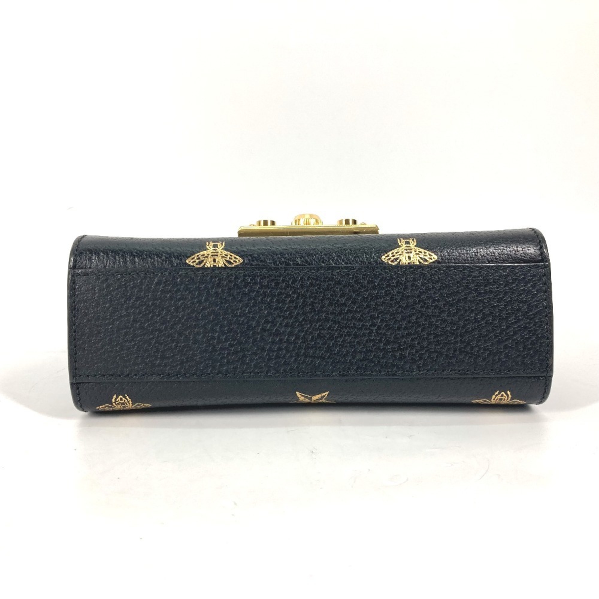 GUCCI PADLOCK BEE Pochette, Leather Shoulder Bag, Black, Women's, Black