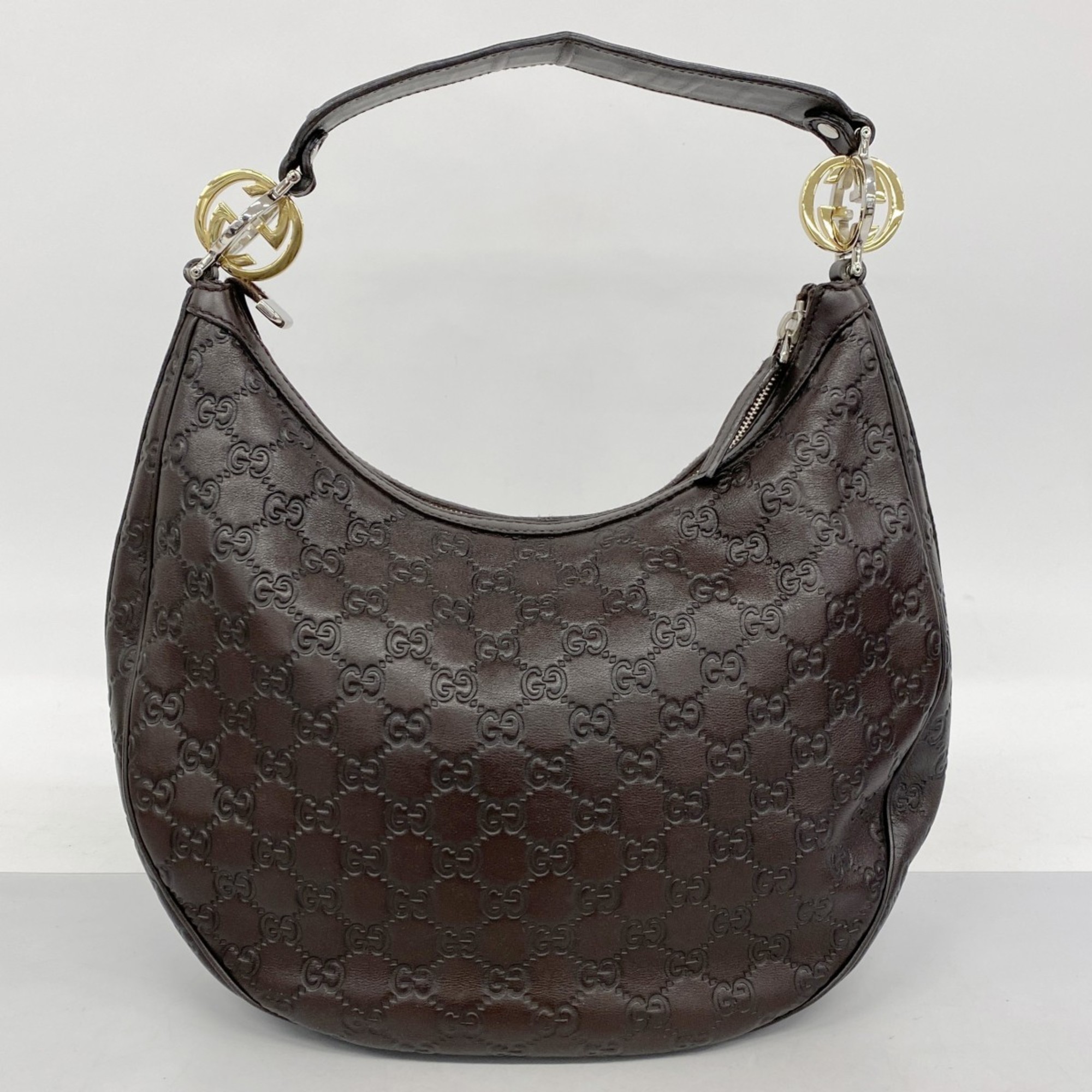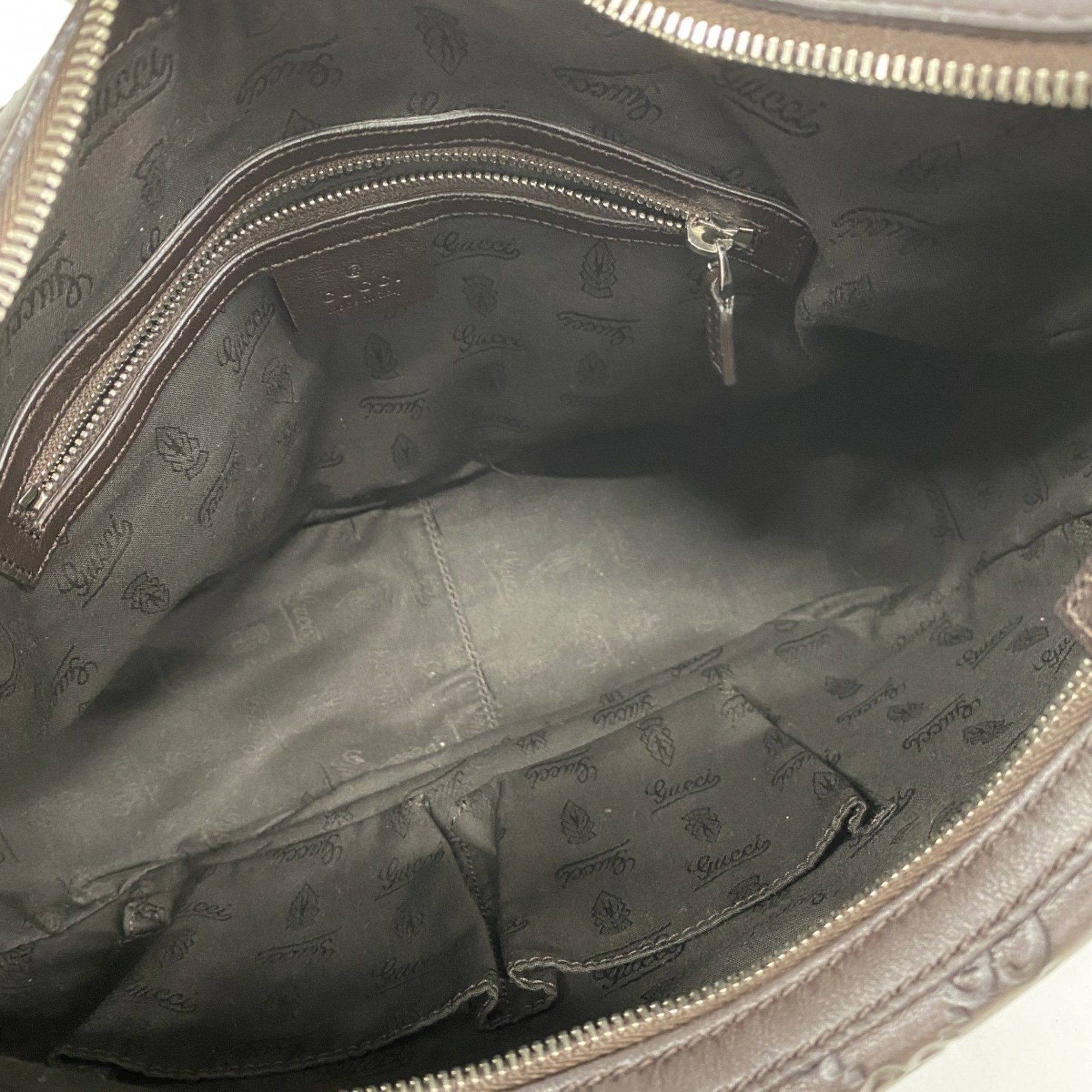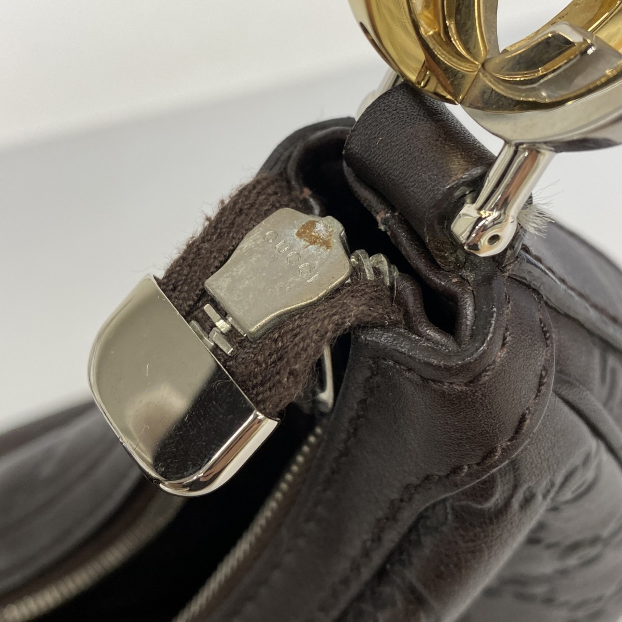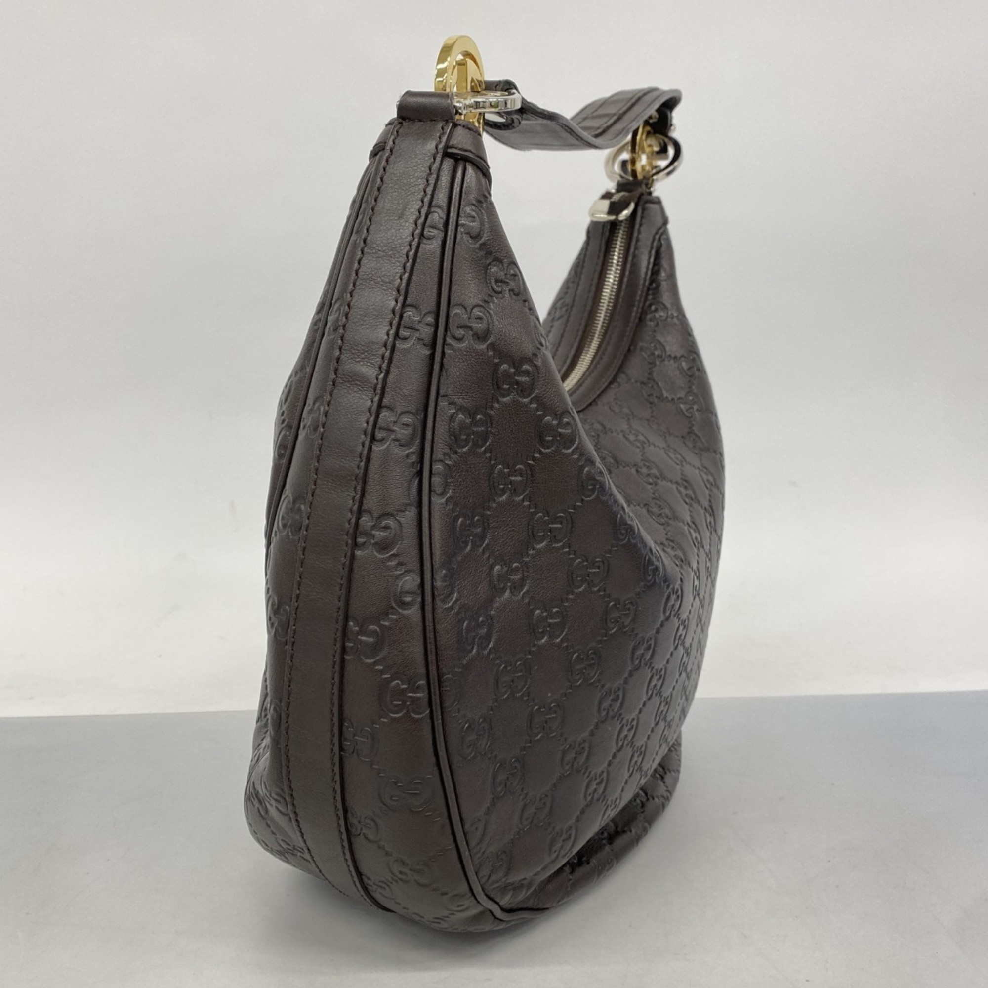Gucci Shoulder Bag Guccissima GG Twins 232962 Leather Brown Gold Women's